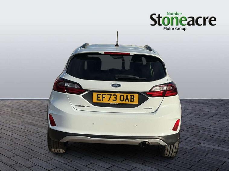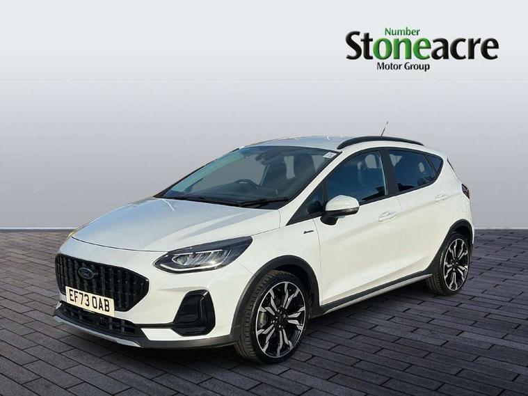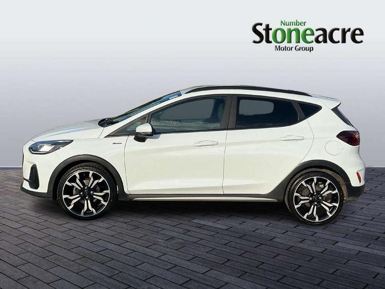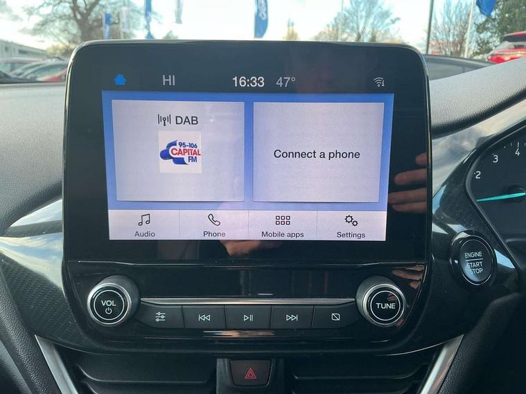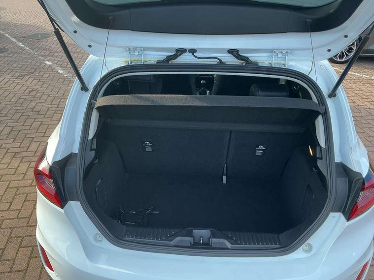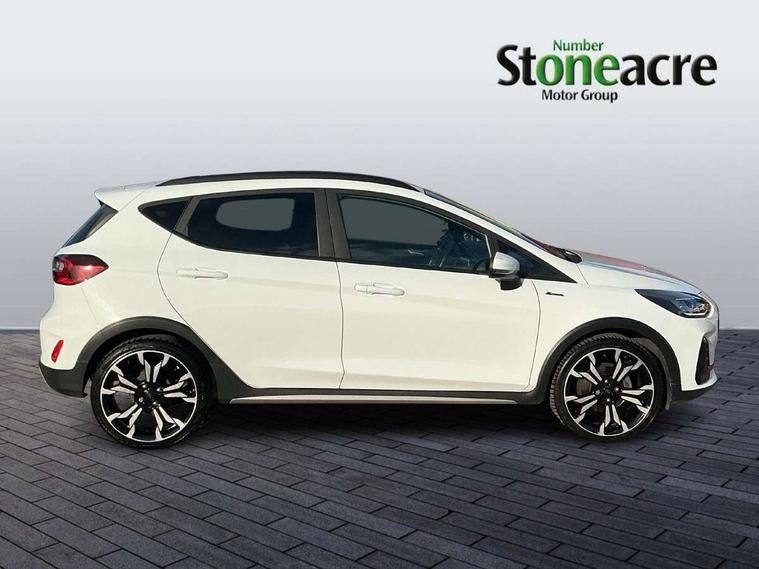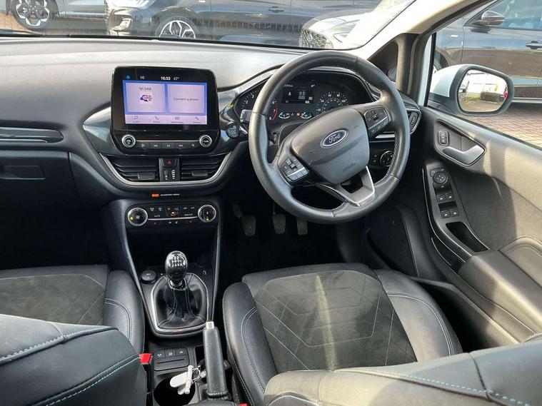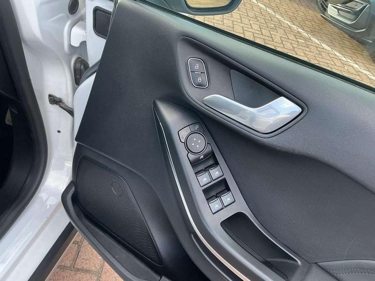 4.2" TFT instrument cluster screen, Bluetooth system, Electric power steering, Extra selectable drive modes ( Trail, Slippery), Ford easy fuel, Rear parking distance sensors, Selectable drive modes (Normal, Sport, Track), Traffic sign recognition, Trip computer, Rough road suspension with increased ride height adjust, 2 USB ports, Auxiliary input socket, B&O Premium audio system with 8" touchscreen, 10 speakers, 360 degree sound system, Ford SYNC 3 navigation system and Ford pass connect, DAB Digital radio, Steering wheel mounted controls, Auto high beam, Body colour bumpers, Body colour door handles, Body colour rear spoiler, Chrome beltline trim, Cornering front fog lights, Electric front windows/one touch facility, Electric rear windows, LED Night signature to rear lights, Mesh design front grille with chrome surround, Power foldable door mirrors with puddle lights, Quickclear heated windscreen, Rain sensing wipers and auto dimming rear view mirror, Rear privacy glass, Rear wiper, Rugged body styling kit with active front wing badges, 3 spoke leather trimmed steering wheel with audio control, 60/40 split folding rear seat, Adjustable head restraints, Boot carpet, Centre console with opening armrest, 2x cupholders, 12v and USB, Chrome inner door handles, Drivers and Passenger lumbar support, EATC - Electronic Auto Temperature control, Footwell illumination, Front floor mats in velour, Front map reading lights, Front seat and rear pockets, Height adjustable passenger seat, Illuminated glovebox, Leather gaiter, LED ambient lighting, Load area light, Manual 4-way driver seat adjust, Overhead console with sunglasses holder, Pollen filter, Rake/reach adjustable steering wheel, Sensico partial premium upholstery, Sensico wrapped steering wheel, NCAP Pack - Fiesta, 3 point seatbelts on all rear seats, ABS+EBA, Curtain airbags, Driver and passenger airbags, Drivers knee airbag, Electronic stability control with hill start assist, Front passenger airbag deactivation, Front side airbags, Seatbelt warning, Two tone horn, Tyre pressure monitoring system, Ford keyfree system with Keyless entry and keyless start, MyKey system, Remote central locking & engine immobiliser, Thatcham Cat.1 alarm, 18" 5 spoke alloy wheels with shadow black machined finish,