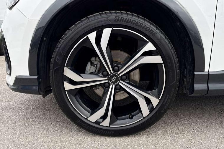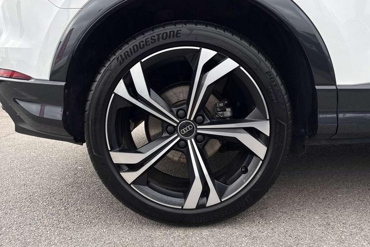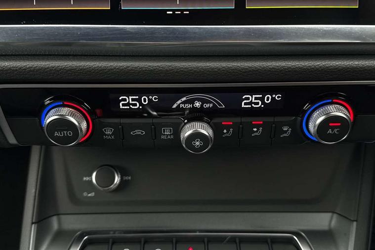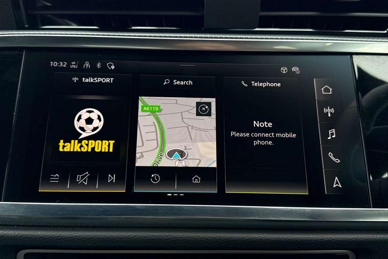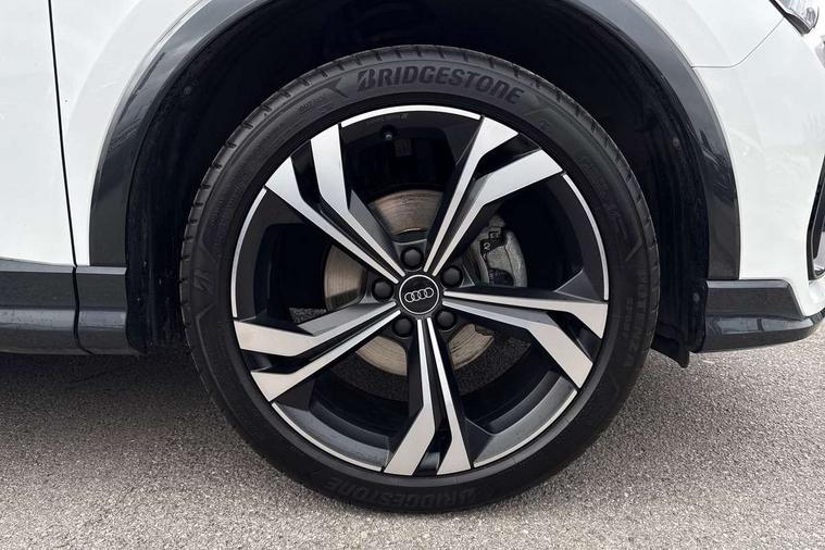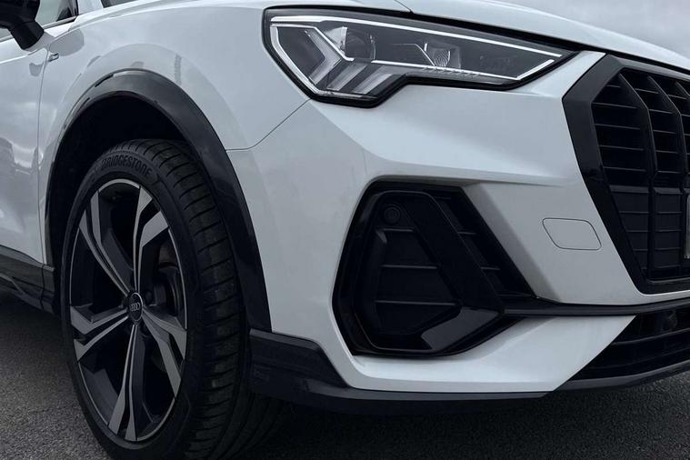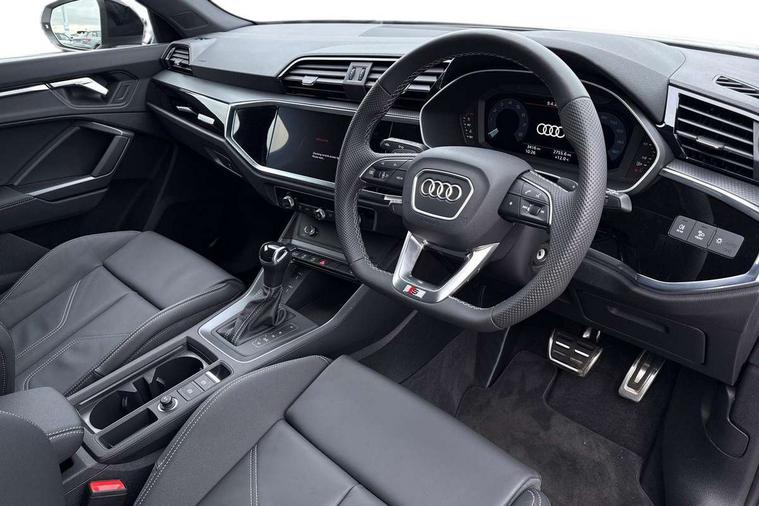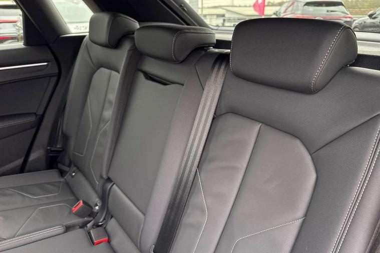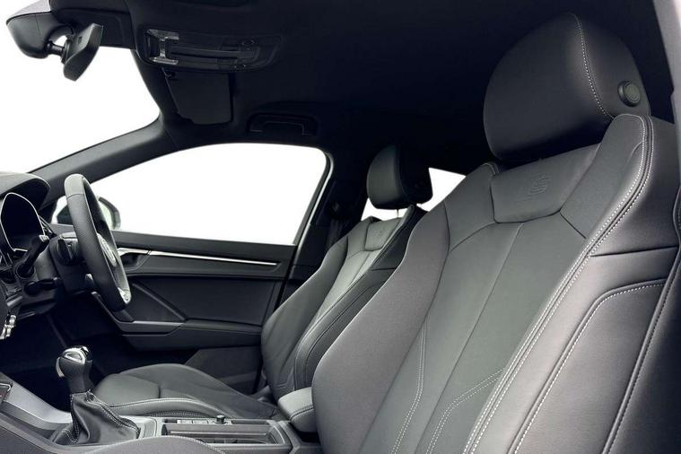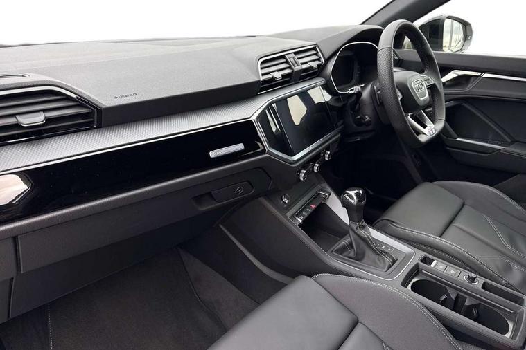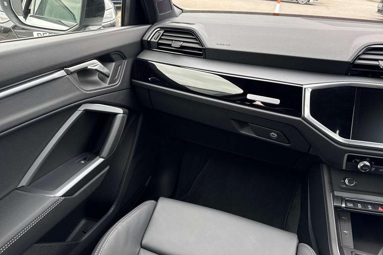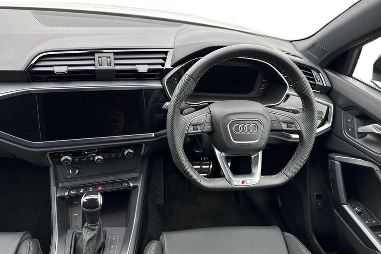 Amazon alexa Integration, Audi connect safety and service, Audi drive select, Audi lane departure warning, Audi Virtual Cockpit - 10.25" display, Bluetooth interface, Camera based traffic sign recognition, Distraction and Fatigue warning, Legal emergency call, MMI Navigation Plus with high resolution 10.1 inch touchscreen colour display, Power operated tailgate, Progressive steering, Service interval indicator, Smartphone interface includes wireless Apple carplay/Android Auto, Start stop system with recuperation, Voice control system with natural language interaction, Sports suspension, 2 USB-C ports with charge and data functions, 6 passive loudspeakers, DAB digital radio module, Acoustic windscreen, Anthracite black radiator grille, Audi Beam uses LEDs to project the Audi logo onto the ground as you exit your Q3, Auto dimming door mirrors, Auto dimming frameless rear view mirror, Black roof rails, Electrically folding, adjustable and heated door mirrors with integrated LED side indicators and kerb view function for passenger side, Front and rear electric windows, Front fog lights, Grille vertical bars in aluminium silver/Matt, High gloss black finish B and C pillars, LED Dynamic rear indicators, LED headlights with LED daytime running lights, LED rear lights, LED third brake light, Privacy glass dark tinted rear and rear-side windows (from B-pillar backwards), Rain and light sensors, Rear diffuser grille in grained matt black, Rear diffuser strip in matt anthracite black, Rear side wing doors, Rear wiper, S line bumpers in contrasting Manhattan grey, Variable front intermittent wipers, 12V socket in rear centre console, 3 seat bench in 2nd row, 40:20:40 folding with manual adjustment for 60:40 forwards/backwards position and backrest angle, Adjustable rear seat bench/backrest with centre armrest and cupholder, Black carpet mats, Black cloth headlining, Dual zone electronic climate control, Electric lumbar support, Front and rear black floor mats with contrast stitching in rock grey, Front and rear headrests, Front centre armrest, Height and reach adjustable steering wheel, Illuminated door sill trims with S logo, ISOFIX child seat mounting for front passenger with airbag deactivation and outer rear seat including top tether attachment point for outer rear seats, Luggage compartment sill protection in stainless steel, Manual front seats with height adjustment, Perforated leather gearknob, Single front passenger seat, Stainless steel pedals, Twin leather upholstery with front sport seats + S embossing, Black styling pack - Q3, Non smoking pack - Q3, 3x3 point rear seatbelts, 6 airbags - Driver, front passenger, curtain and side windows, Audi pre-sense front with pedestrain and cyclist recognition, Electrically operated child locks on rear doors, Electromechanical parking brake, Electronic stabilisation control including ABS, ASR and EDL, Front seatbelt reminder, Hill descent control, Hill hold assist, Pre sense basic, Seatbelt monitoring, Tyre pressure warning, Warning triangle and first aid kit, Anti theft wheel bolts, Immobiliser, Remote central locking, Thatcham approved category 1 anti theft alarm, Aluminium look interior elements, Detail dashboard around MMI touch colour display in glass look, black with surround in aluminium look, Leatherette door armrest, Piano black inlay,