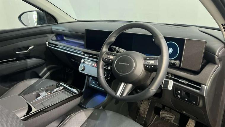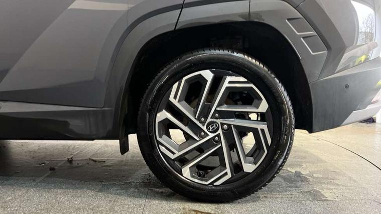 12.3" LCD display with driver's supervision instrument cluster, 12.3" widescreen navigation with bluelink and mapcare, Blind spot view monitor, Bluetooth system, Cruise control - smart adaptive speed control with stop and go function, Digital clock, Drive mode selector, Driver attention warning, E-call, Emergency stop signalling system, Forward Collision Avoidance Assist (FCA) - Car, Pedestrian and Cycle, Forward Collision Avoidance Assist Junction Turning (FCAJX), Front and rear parking sensors, Front, rear and side parking distance warning, Highway Driving Assist (HDA), Hyundai road side assistance, Intelligent speed limit assist, Lane follow assist, Lane keep assist, Over the air updates(OTA), Parking collision avoidance assist (PCA), PAS, Rear camera and guidance parking system, Rev counter, Smart power tailgate, Surround view monitor, Tailgate open warning light, Trip computer, Trip odometer, Voice recognition, Water temperature gauge, Windscreen washer fluid sensor and warning indicator, Wireless Apple CarPlay/Android Auto, Wireless phone charging pad, 2 front and 2 rear USB-C ports, DAB Digital radio, Krell premium audio system with 8 speakers and subwoofer, Steering wheel mounted audio/phone controls, Adjustable intermittent front windscreen wipers with aero wiper blade, Auto dimming rear view mirror, Automatic defog system, Automatic headlights with dusk sensor, Automatic windscreen wipers with rain sensor, Black wheel arches, Body colour bumpers, Body colour door mirrors with integrated indicators, Body colour exterior door handles, Electric tilt/slide panoramic sunroof, Electrically adjustable, heated and power folding door mirrors, Follow me home headlights, Front and rear electric windows with anti-trap mechanism and one touch control, Front fog lights, LED 3rd brake light, LED daytime running lights, LED rear lights, Matrix LED headlights, Positioning Lights - LED, Privacy glass - Rear windows and tailgate, Rear side wing doors, Rear wash/wipe with intermittent wipe setting, Roof rails, Tinted glass with windscreen shade band, Trailer stability assist, 12V power outlets in front console and luggage compartment, 3 seat bench in 2nd row, 40/20/40 split folding rear seat, 64 colours interior ambient lighting, Adjustable head restraints (Up and down), Cupholders in rear armrest, Door courtesy lights, Driver and passenger sunvisors with illuminated LED vanity mirrors, Driver's seat electric adjustments, Driver's seat memory, Front and rear door pockets, Front armrest with storage box, Front centre console and door bottle holders, Front passenger's seat electric adjustments, Heated front seats, Heated rear seats, Heated steering wheel, Height/reach adjustable steering column, Illuminated/air conditioned glove compartment, ISOFIX child seat anchorage points attached on outer rear seats, Leather upholstery, Leather wrapped steering wheel and gear knob, Luggage compartment lighting, Luggage cover, Luggage hooks, Luggage net, Map and reading lights, Rear seat remote folding function, Rear side window sunblind, Reclining rear seats, Retractable load cover, Single front passenger seat, Sunglasses holder, Three zone climate control, Touch sensitive climate controls with temperature dials, TUCSON branded metal door scuff plate, Underfloor boot compartment, Ventilated front seats, Trailer wiring package - Tucson, 3x3 point rear seatbelts, Active bonnet, Airbag - Front, front side, curtain and centre front airbags, Anti-lock brake system (ABS), Brake assist function, Childproof rear door locks, Curtain airbag roll over sensor, Downhill brake control, Electric parking brake, Electronic stability control, Front and rear seatbelt reminder, Front passenger airbag deactivation switch, Front seatbelt pretensioners, Hill start assist control (HAC), Multi-Collision braking, Outer rear seatbelt height adjustment, Seatbelt height adjustment for front seats, Traction control, Tyre pressure monitoring system with individual tyre pressure display - TPMS, Vehicle stability management, Deadlocks, Immobiliser, Locking wheel nuts, Remote control central locking, Smart key with keyless entry and engine start/stop button, Speed sensitive auto door locking, Thatcham category 1 alarm, 19" Alloy wheels, Tyre repair kit,
