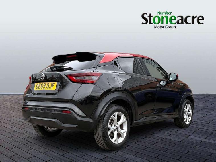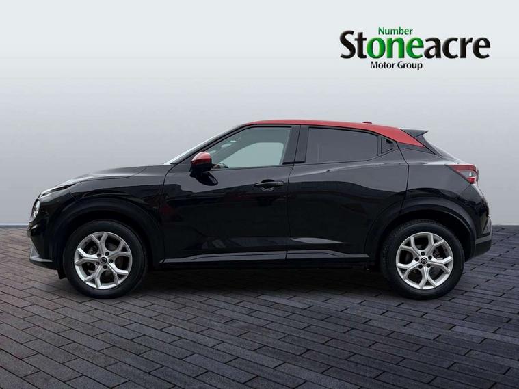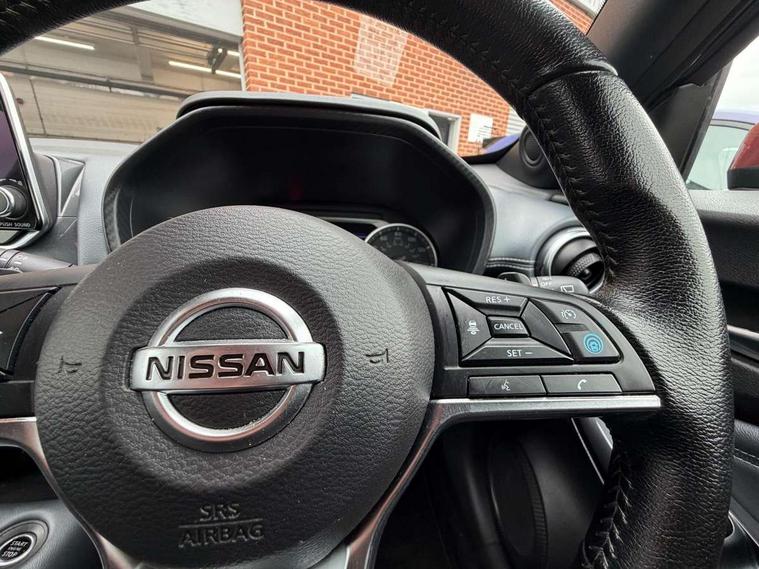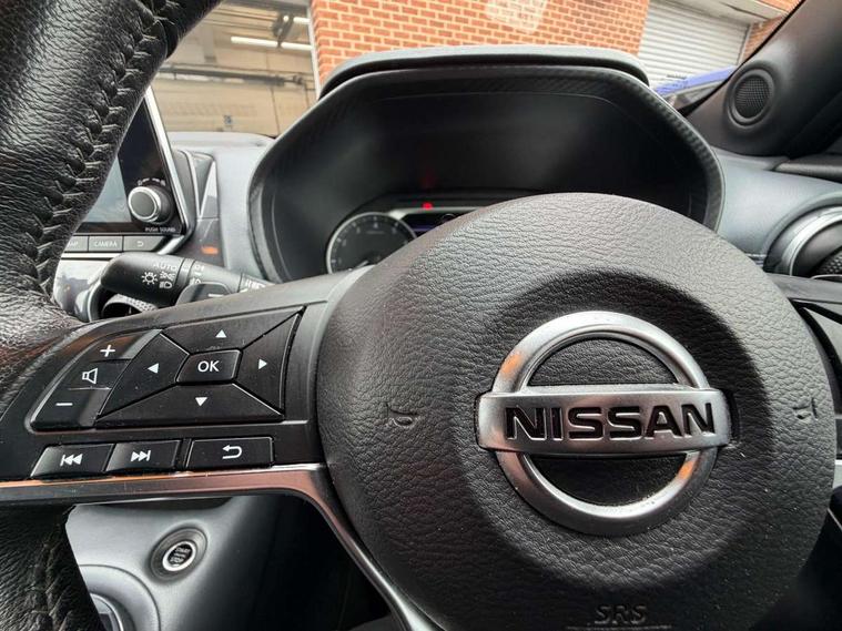 7" full colour TFT screen combimeter, 8" infotainment colour display with touch screen, Apple CarPlay and Google Android auto, Drive modes select (Eco, normal and sport), Emergency and breakdown call, Front parking sensor, Idle start/stop system, Intelligent lane intervention, Lane departure warning system, Nissan connect nav with TomTom traffic, Nissan connect services and Wifi connection, Outside temperature sensor, Power Steering, Rear parking sensor, Traffic sign recognition, Trip computer, Gasoline particulate filter, 6 speakers, Bluetooth system, USB, Aux-in and 12V socket, DAB Digital radio, Rear console USB port, Auto dimming interior rear view mirror, Automatic hazard signal with emergency stop signal, Body colour bumpers, Body colour door handles, Electrically adjustable door mirrors with integrated indicators, Follow me home headlights, Front and rear electric window with one touch driver and passenger window, Heated and auto folding door mirrors, High beam assist, LED daytime running lights, LED front fog lights, LED headlamps, LED rear fog lamp, LED rear lamps, Rain sensor windscreen wipers, Rear privacy glass, Rear spoiler, Rear wiper, Three blink turn signal, 3 height adjustable rear headrests, 60/40 split folding rear seat, Automatic climate control, Card holder on driver sunvisor, Cloth upholstery, Door ambient lighting, Driver and passenger sliding and reclining seats, Driver seat back pocket, Driver side rear coat hanger, Driver/passenger sunvisors and illuminated vanity mirrors, Front and rear cabin lights, Front armrest, Front door pockets with bottle holders, Front head restraints, Front/rear passenger grab handles, Gear console ambient circle lighting, Grey synthetic leather kneepad, Height adjustable driver's seat, Internal chrome door handles, Leather gearshift knob, Leather steering wheel, Luggage board, Luggage space lighting, Monoform sporty seats, Multifunction steering wheel, Passenger seat back pocket, Rear door bottle holders, Steering wheel mounted gearshift paddles, Telescopic steering wheel adjustment, Two cupholders in front centre console, Two rear isofix child seat anchorage points with top tether, Voice recognition switch on steering wheel, Welcome light and console tray ambient lighting, ABS with EBD and brake assist, Active ride control, Active Trace Control, Driver and passenger airbags, Driver and passenger side airbags, Electric handbrake with auto hold function, Electronic Stability Programme (ESP), Front and rear curtain airbags, Height adjustable seatbelts, Hill start assist, Intelligent emergency braking with pedestrian and cyclist recognition, Seatbelt reminder for driver/front passenger and rear seats, Single tone horn, Three 3 point rear seatbelts, Traction control, Tyre pressure monitoring system, VDC Dynamic Vehicle Control, Ventilated rear brake discs, Alarm, Immobiliser, Intelligent Key with push button starter, Remote central locking,