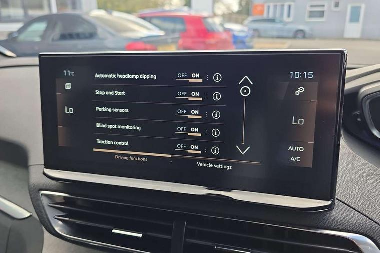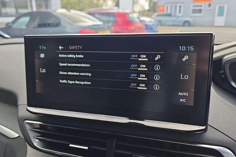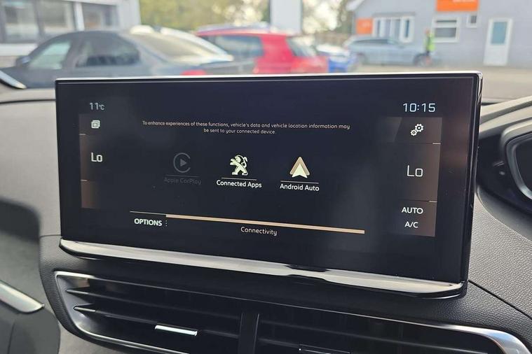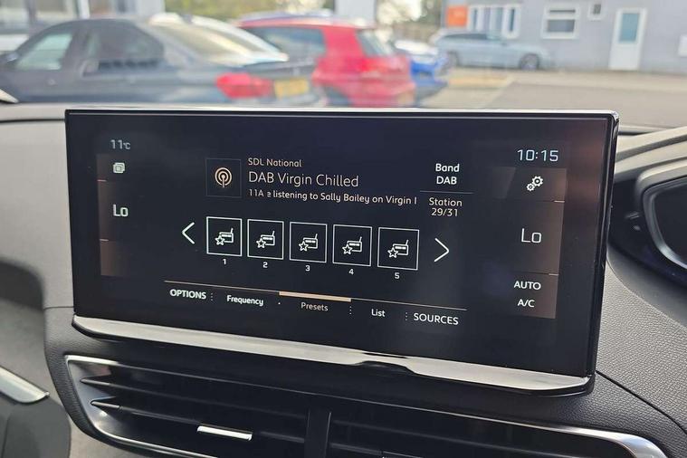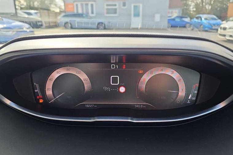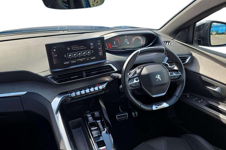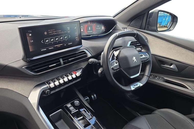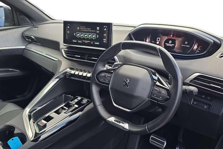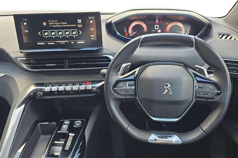 3D connected navigation with 10" HD touchscreen + voice recognition system, Apple car play and Android auto, Bluetooth telephone connection, Drive mode selector (Eco, Normal and Power), Driving timer alert system, Emergency services call system, Extended traffic sign recognition, Exterior temperature indicator with ice warning, Front and rear parking sensors, Lane departure warning system, Multi function trip computer, Peugeot i-cockpit with configurable 12.3" headup digital instrumental panel and compact sports steering wheel, Rear passenger USB charging sockets (x2) (type A), Speed limit recognition and recommendation, Dynamic stability control and electronic anti-skid system, Bi Tuner radio including DAB, USB socket, Aluminium front door sills, Auto self levelling headlights, Automatic activation of hazard warning lights, Black diamond door mirror covers, Black diamond roof, Body colour door handles, Body protectors in black, Dark tinted rear side and tailgate windows, Dynamic frameless design in front radiator grille, Electric adjustable heated door mirrors, Front windscreen wiper with magic wash cleaning system, Full LED headlights with fog mode, Gloss black B and C pillar and aerodynamic deflector trim, Gloss black rear cluster connecting strip, Gloss black windscreen trim, GT emblem (front wings and tailgate), Headlights left on audible warning, Heated rear windscreen with integrated antenna, LED daytime running lights in fang style, LED front indicator, LED rear number plate lighting, LED side indicator lights integrated into door mirrors, LED third brake light, One touch electric front/rear windows with pinch protection, Power folding door mirrors, Rear LED PEUGEOT signature Claw Effect lights (with daylight function) with clear lens and scrolling LED direction indicators, Rear side wing doors, Rear windscreen wiper with auto activation when reversing, Stainless steel door sill scuff plates, Twin exhaust effect trim, 2 cupholders in front centre console, 2 rear reading spotlights, 2 separate seats in 3rd row, 2nd row window blinds, 3 bench rear seats in 2nd row, 3 x 12V power sockets, 4 Grab handles retractable and damped, Aikinite stitching in armrest, gear lever and dashboard facia, Aluminium pedals, Automatic dual zone climate control, Aviation tables on seat back of first row, Blue ambient lighting for connecting zone, Blue ambient lighting for front cupholders, Blue ambient lighting to front door panels, Blue ambient lighting to head up instrument panel, Brumeo fabric trimmed door armrests, Central front armrest with butterfly wing opening and illuminated storage compartment, Electric power steering with reach and rake adjustable steering column, Flocked front door pocket interior with blue ambient lighting, Flocked glovebox interior, Fold flat front passenger seat with picnic table, Footwell lighting, Front interior light with 2 reading spotlights and rear interior light with timer, Front passenger seat manual adjustment (longitudinal and back rest angle), Height adjustable passenger seat, Illuminated glove box, central storage area and load area, Illuminated vanity mirror, Isofix child seat fittings x 3 in the second row, LED interior lighting, Map pocket on front seat backs, Mistral floor mats with Aikinite contrast stitching, Mistral full grain perforated leather steering wheel with aikinite stitch detail and satin chrome 'GT' emblem, Rear ventilation system, Retractable parcel shelf, Roof lining and windscreen pillars in Mistral black, Satin chrome digital instrument panel and touchscreen trim, Satin chrome front door panel recess trim, Satin chrome interior door handles, Satin chrome scorpion's tail and toggle switch trim, Seatbelt not fastened audible and visual alert for front seats, Seatbelt unfastened on the move audible and visual alert for front and rear seats, Second row underfloor storage, Single front passenger seat, Third row seats (can be stored under bootfloor or removed completely), Twin rear coat hooks, Drive assist plus package - 5008, Visibility pack - 5008 GT, ABS + EBD + EBA, Adaptive driver and front passenger airbags including passenger airbag deactivation function, Electric child locking functionality on rear windows and doors, Electronic parking brake + Hill assist, ESP and ASR traction control with deactivation switch, Five 3 point rear safety belts, Front and rear curtain airbags, Front optimised safety headrests and rear retractable headrests (x3), height adjustable, Front side airbags, Front three point retractable seatbelts height adjustable with pre tensioners and force limiters, Front ventilated disc brakes, Rear disc brakes, Rear three-point retractable seatbelts (x3) with pre-tensioners and force limiters in the outer rear seats, Single tone horn, Automatic door locking when moving off, Electronic code immobiliser, Perimetric and volumetric alarm with lift and tilt sensor, Peugeot Open and Go System, Remote control central locking with two plip keys,