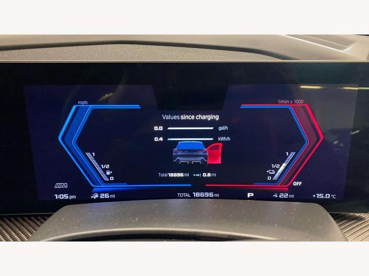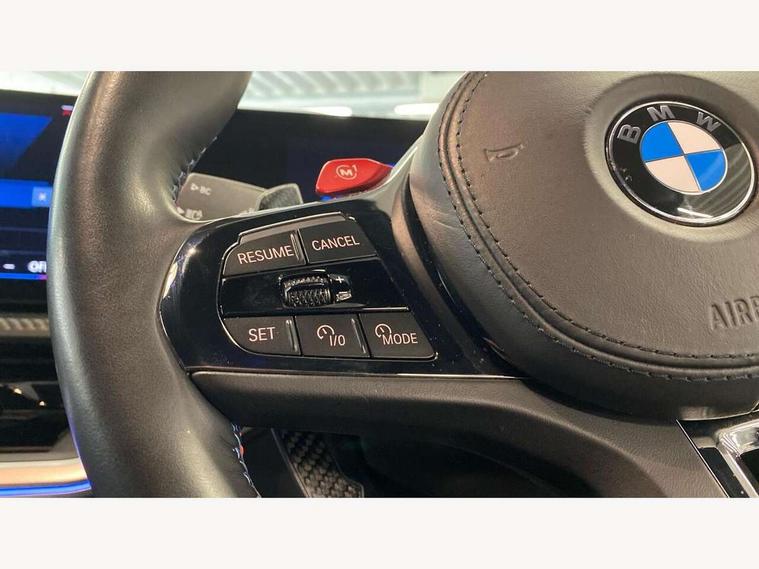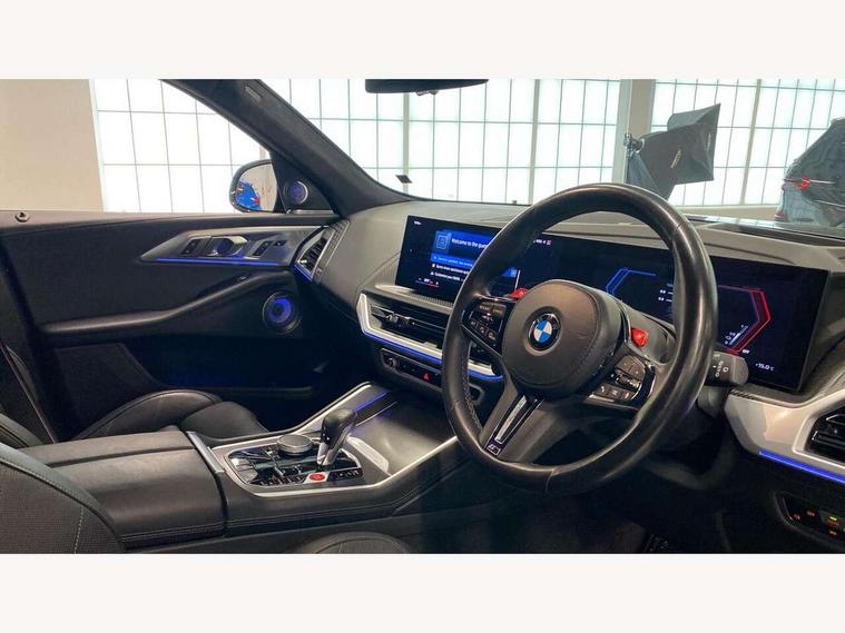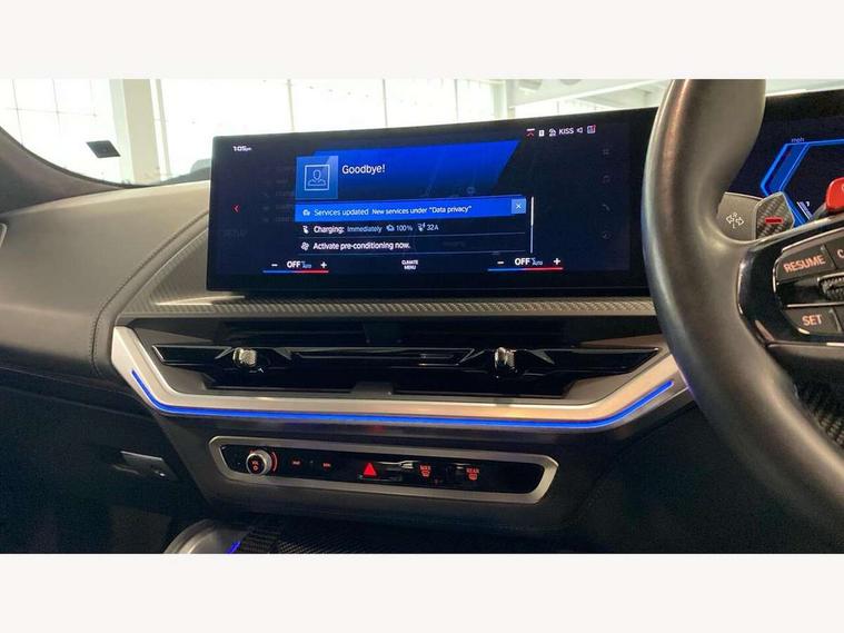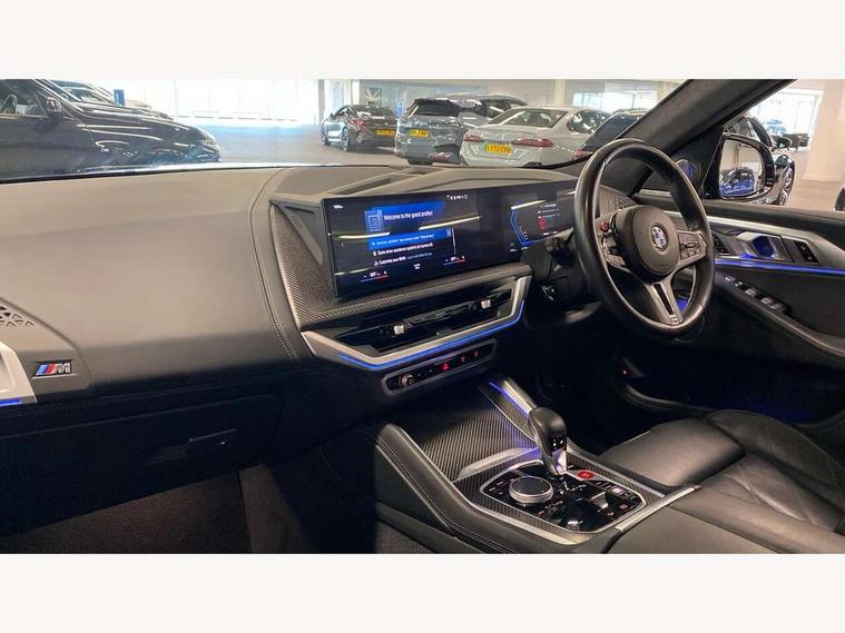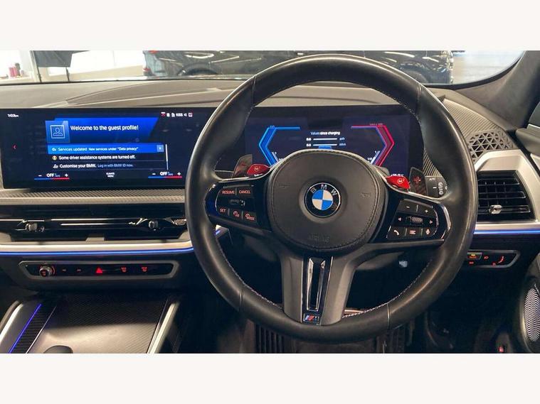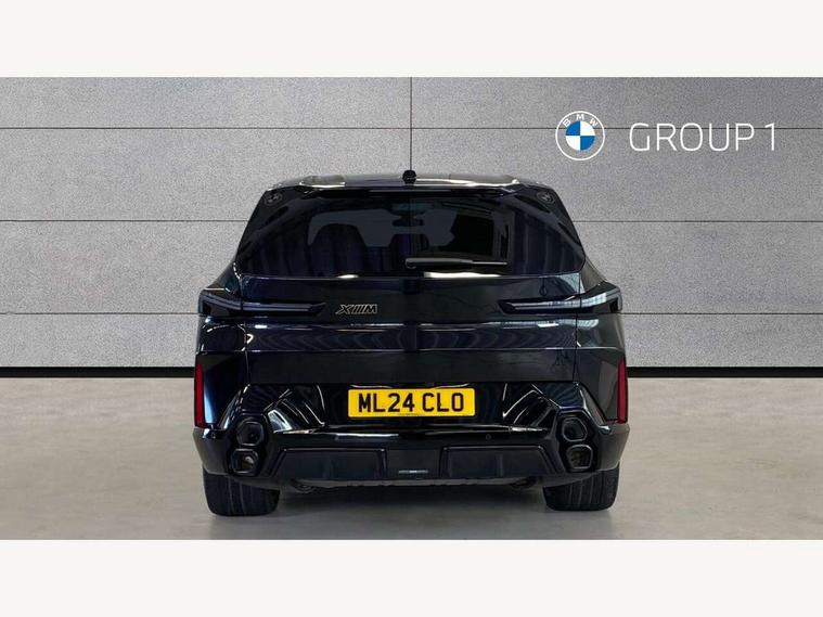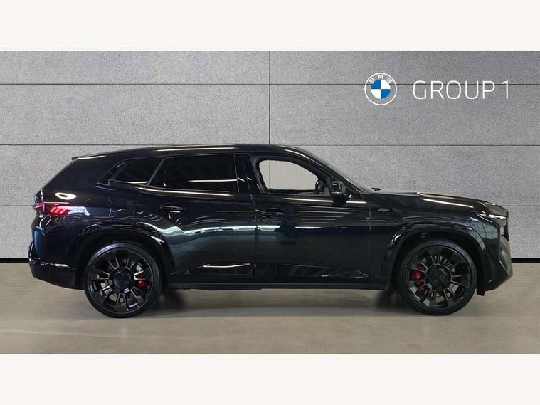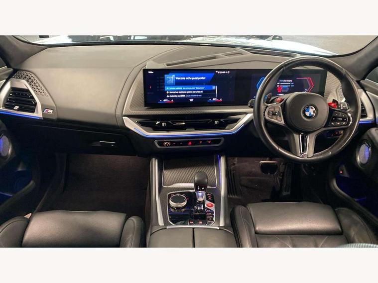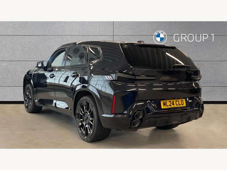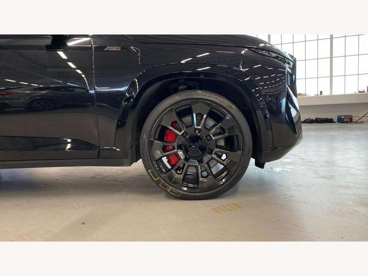 Attentiveness assist, Automatic tailgate operation, BMW gesture control, BMW legal emergency call, BMW Live Cockpit Pro with headup display, Navi, voice control, 12.3" instrument cluster, 14.9" control display, 3rd party app, bluetooth, Wi-Fi, BMW Teleservices, Brake pad wear indicator, Concealed underneath bonnet, Condition based service, Connected eDrive Services, Front/rear Parking distance control, Integrated owners handbook, Parking assistant plus with 360 degree surround view camera, remote 3D view, driver recorder and remote theft recorder, PAS, Speed dependent regulation with variable steering gear ratio, Stop/start button, 7.4 kW onboard charger, AC/DC charging, Adaptive M suspension professional, Electric drive unit, Fast charging cable professional mode 3 for public charging, High voltage battery, M Sport differential, M xDrive system, Sport exhaust system, Steptronic transmission with gearshift paddles on steering wheel, BMW iconic sound electric, DAB Digital radio, Personal eSim, Adaptive LED Headlights with Low beam and high beam headlight function, Auto dimming driver's door mirror, Automatic cornering lights, Automatic windscreen wipers and automatic headlight, BMW kidney Iconic Glow, Charging flap, Door locking - after driving off to secure vehicle, Electric windows - front and rear, with open/close fingertip control and trap release, Exterior centre air inlets in front bumper in black high gloss, Exterior mirror housings in black, Exterior mirrors with automatic parking function, Frameless interior mirror, Green tinted windows, Headlight range control, Heated windscreen washer jets, High beam assistant, High gloss black rear diffuser, LED daytime running lights, LED side lights, LED third brake light in rear spoiler, Light staging (welcome and goodbye), M specific electrically adjustable/foldable/heated exterior mirrors with integrated direction indicators, Mirror triangle with mirror base in black, Prism optics door handle insert in black high gloss, Radiator grille struts in black high gloss, Rain sensor, Rear reflector (left and right) integrated into bumper, Rear side wing doors, Rear window single layer safety glass, Rear wiper, Roof trim strips in black high gloss, Side window graphic including black band in night gold with XM badge, Sun protection glazing, Tailgate without BMW logo, Trailer stabilisation logic, Two lasered BMW logos in upper left and right of rear window, Two part led rear light with brake light and turn indicator in both parts, Two part radiator grille frame in night gold, Two rear design trim element in night gold, Wheel well cover and cladding in black high gloss, Windscreen and side window laminated safety glass, XM badge in left side radiator grille, 12V power socket in front centre console, 12V power socket in luggage compartment on right, 12V power socket in rear centre console, 1x USB Type A port in area of cupholder (charging with 1.5 A and data transfer), 1x USB Type C port for charging in armrest storage compartment, 2 x USB Type C ports for charging in rear centre console, 3 bench rear seats in 2nd row, 3 rear headrests, 3 spoke M leather steering wheel, 4 lashing eyes in luggage compartment, 40/20/40 split folding rear seats with backrest, 6 pre-defined selectable light designs in various colours with contour and ambient lighting, Adjustable front head restraints, Ambient centre stack lighting, Ambient door panel lighting and unlocking, Ambient door pocket lighting, Ambient headliner lighting, Ambient instrument panel lighting, Anthracite Velour front and rear floormats, Armrest - front and rear integrated door trim, centre console includes storage compartment, rear centre includes 2 cupholders, Backrest rear panel with folding pockets, BMW ID, BMW XM exclusive charging cable pocket in luggage compartment, Brushed/polished aluminium inserts in entry sills, Child seat ISOFIX attachment for the outer seats incl upper retaining strap, Contour instrument panel lighting, front centre console, door panel front and rear, Courtesy lights in tailgate, Cup holders (2 front and 2 rear), Door pockets with bottle holder, Driver and front passenger alcantara sun visors with illuminated vanity mirror and ticket holder, Driver and front passenger illuminated vanity mirrors, Driver/front passenger reading lights, Dynamic function of contour lighting, Four zone automatic air conditioning, Front and rear ambient footwell lighting, Front and rear door exit lighting (left / right), Front and rear Illuminated M logo in entry sills, Glove compartment lighting, Grab handle in front and rear outer seats integrated in roof lining at rear with coat hooks, Heated and cooled cupholders, Illuminated armrest handle, Illuminated M logo on headrestraints, LED ambient lighting for centre console, Lockable glove compartment, Luggage compartment lighting strips, M electric front sport seats includes electrical seat adjustment with memory, lumbar support and M embossing on headrests, Multifunction steering wheel, Nano filter, Non foldable rear headrests, Outer rear headrests height adjustable, Rear centre head restraint not adjustable, Rear reading lights, Side marker reflector in lamella look integrated into tail light, Single front passenger seat, Soft close function for doors, Stationary cooling, Storage tray and compartment with lid in centre console, Two outer side adjustable head restraints in 2nd row, Two part parcel shelf in luggage compartment, Wireless charging tray, Comfort pack - XM, Connected package professional - XM, M Aerodynamic package - XM, Travel and comfort system pack - XM, 3 point seatbelts on all 3 rear seats, Acoustic protection for pedestrians, Active protection, Airbag - Front driver and passenger, side airbags and Head airbags, Airbags activation controlled with intensity and scope, Anti-lock braking system (ABS), Cornering brake control (CBC), Crash sensor activating central locking release, hazard warning lights, fuel cut off and interior l