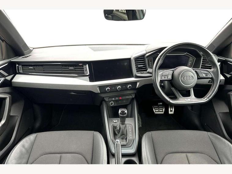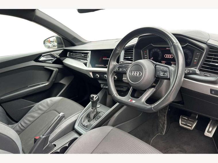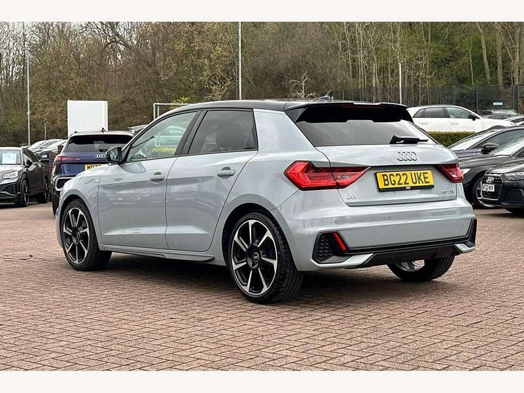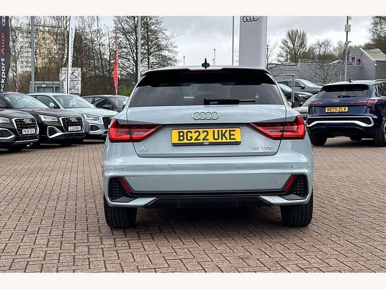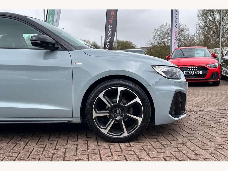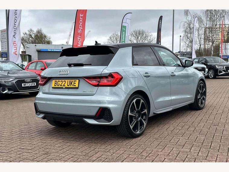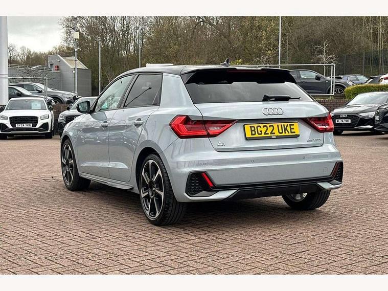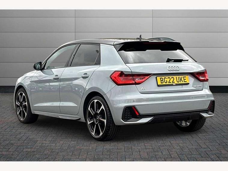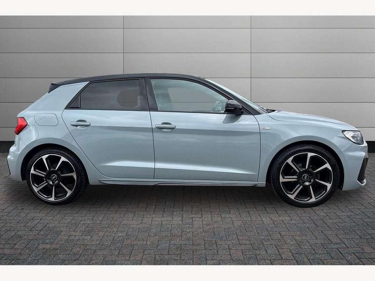 10.25" Digital instrument cluster display classis style instrument dials + speed, odometer, time, outside temperature, telephone menu + fuel level warning, Audi connect safety emergency and service including E-call, Audi smartphone interface with connect compatible smartphone via USB directly MMI display + Nav, music, third party apps controlled via MMI controller, Automatic start/stop system, Bluetooth interface, Cruise control, Driver's information system, Electromechanical power steering, Emergency services call system, Lane departure warning system, Service interval indicator, Speed limiter, Voice control system, Washer fluid level indicator, Sports suspension, 1 x SDXC card reader, 2 x USB type C connection points, DAB Digital radio, MMI radio plus with 8.8" colour MMI display screen and MMI touch, Auto dimming rear view mirror, Black door mirrors, Black side skirts, Body coloured bumpers, Contrast roof - Mythos black, Door sill trims with aluminium inlays and logo, Electric front and rear windows, Electrically adjustable, heated, folding door mirrors with integrated LED side indicator, Front side air inlets in grained matt black and C frame in titanium black, Front wing badges, Heat insulating glass windscreen and side windows, Heated rear windscreen, High level LED brake light, LED headlights with LED rear lights + dynamic rear indicators + headlight adjustment and high beam, turning light + LED daytime running lights, Radiator protective grille frame in matt aluminium silver, Rain and light sensors, Rear diffuser strip in matt titanium black, Rear fog lights, Rear side wing doors, Rear wing door, Rear wiper, Side front spoiler lips in grained matt black, 12V socket in centre console with two cup holders, 3 rear seats with headrests, 3 seat bench in 2nd row, 3 spoke flat bottomed multi-function plus leather steering wheel with S badging, grips in preforated leather, contrast stitching and paddle shift, 40:60 Split folding rear seat or folded fully, Black cloth headlining, Driver and passenger seat with manual height adjust with forward and backwards adjustment, Front and rear black floor mats with contrast stitching in fine silver, Front head restraints, Front passenger seat, Height and reach adjustable steering wheel, ISOFIX child seat mounting for front passenger and outer rear seats including top tether attachment point of outer rear seats, Leather gear knob with aluminium trim, Luggage compartment light with front and rear reading lights, Manually adjustable lumbar support in front seats, Stainless steel pedals, Black styling pack - A1 Sportback Black Edition, LED interior lighting pack - A1, Luggage compartment pack - A1, 3x3 point rear seatbelts, Audi pre-sense front with pedestrain and cyclist recognition, Brake assist function, Driver and front passenger airbag with front side and head airbags, Electronic Stability Control including ABS, EBD, ASR and EDL, Front passenger airbag deactivation switch, Hill hold assist, Manual rear child locks, Seatbelt height adjustment for front seats, Seatbelt monitoring, Tyre pressure warning light, Warning triangle and first aid kit, Anti theft alarm, Anti theft wheel bolts and loose wheel warning, Immobiliser, Remote central locking with 2 foldaway keys, Aluminium trim for control switches, air vents and digital instrument cluster, Silver grey inlays polygon structure in diamond paint finish, Structured grey accent areas including air vents, door handle recesses and centre console in quartz paint finish, 18" 7 spoke rotor design alloy wheels in gloss anthracite black, diamond cut finish,