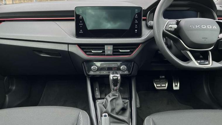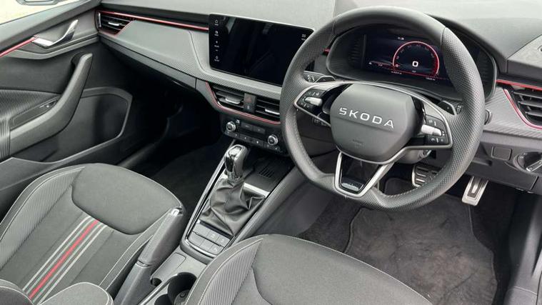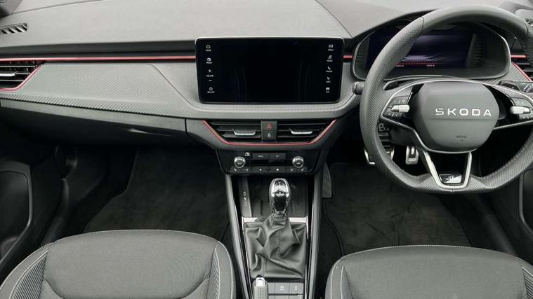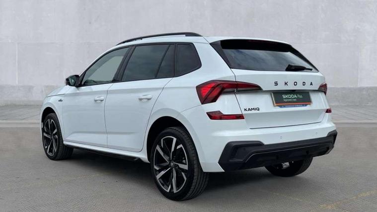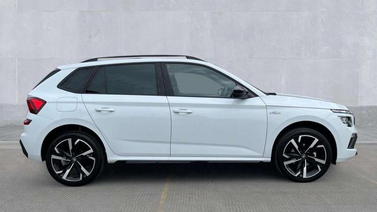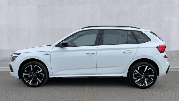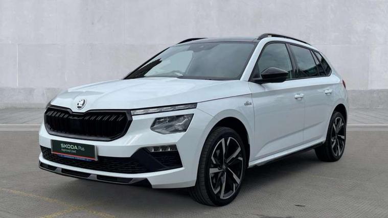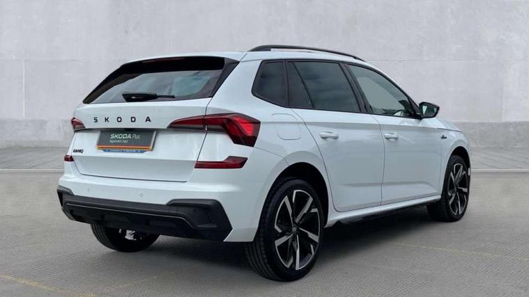 Advanced driver attention and drowsiness monitor, Bluetooth system, E-call, Front assist system, PAS, Rear parking sensors, Rear view camera, Service indicator, Speed limiter, Traffic sign recognition, Virtual cockpit with 10.25" display, Voice control system, Wireless smartlink, 4 USB C ports, 8 Speakers, 9.2" Skoda navigation display, DAB Digital radio, Auto dimming rear view mirror, Automatic headlight control with coming home and leaving home feature, Black door mirrors, Black radiator grille, Black rear diffuser, Black roof spoiler, Body colour bumpers, Body colour door handles, Boot lettering in black, Extended tailgate glass, Fixed panoramic sunroof with black roof rails, Front and rear electric windows, Heated rear window, LED daytime running lights, LED high beam, LED low beam, LED third brake light, Light sensors, Monte carlo plaque, Privacy glass, Rear side wing doors, Rear wiper, Ticket holder inside windscreen, 12V socket in luggage compartment, 3 seat bench in 2nd row, Aluminium pedals, Ambient lighting in white/red, Art leather carbon decor inserts, Art leather carbon door inserts, Black roof lining, Cargo elements, Chrome inner door handles, Driver and passenger sun visors with vanity mirror, Dual zone climate control, Front and rear roof lights, Front centre armrest, Front head restraints, Glove compartment with illumination, Height adjustable driver seat, Height adjustable front passenger seat, Ice scraper, Inner circulation control with pollen filter, ISOFIX on front passenger seat, Isofix preparation for back seats, Leather gearknob and handbrake lever, Manual lumbar support for front seats, Monte Carlo cloth upholstery, Net package and top tether hooks in boot space, Net under rear shelf, Pocket on the back of both front seats include mobile phone pockets, Rake/reach adjustable steering wheel, Reading lights, Rear centre armrests, Red hotstamping, Single front passenger seat, Sports seats, Textile floor mats, Third rear headrest, Top tether for front passenger seat, Umbrella in driver's door, Light and view plus package - Kamiq, 3x3 point rear seatbelts, Airbags - driver and front passenger, Disc brakes, ESP, Extended and predictive pedestrian/cyclist protection, Front passenger airbag deactivation switch, Front side airbags with curtain airbags, Hill hold control, Manual leather parking brake, Manual rear child locks, One tone horn, Seatbelt reminder for driver an co-driver, Traction control, Tyre pressure monitor, Anti-theft alarm system with interior monitoring, backup horn, towing protection and remote central locking with SAFE system, Anti-theft wheel bolts, Electronic engine immobilizer, 18" Ursa black diamond cut alloy wheels,