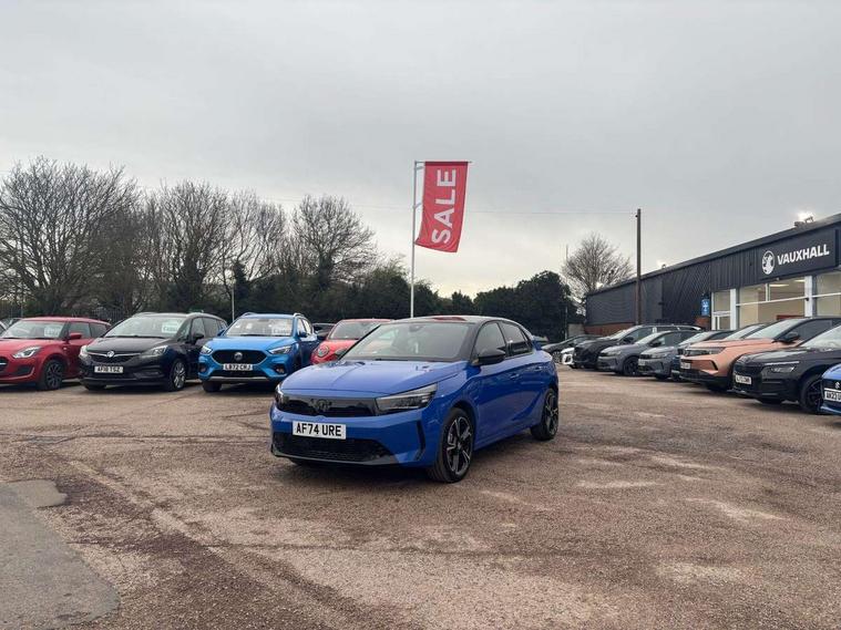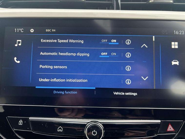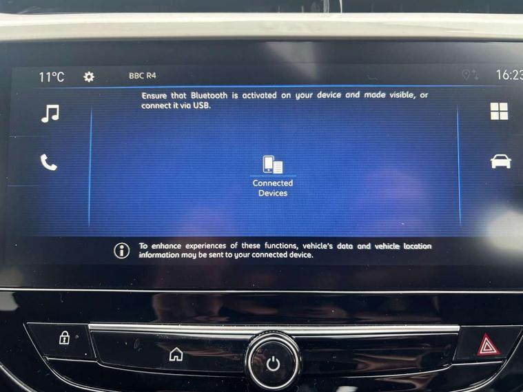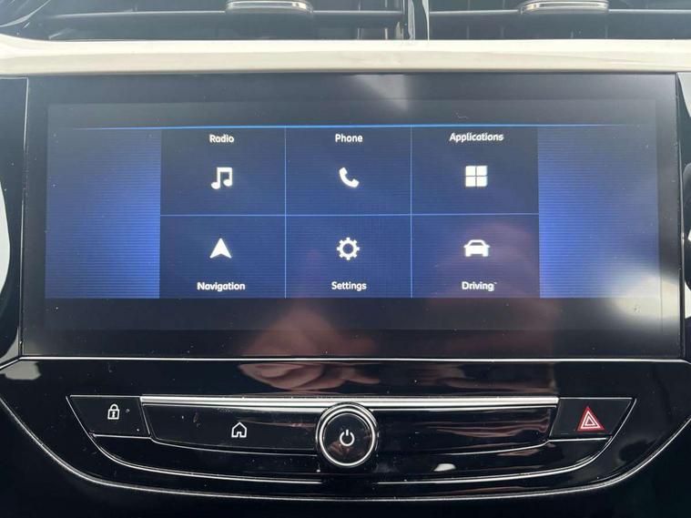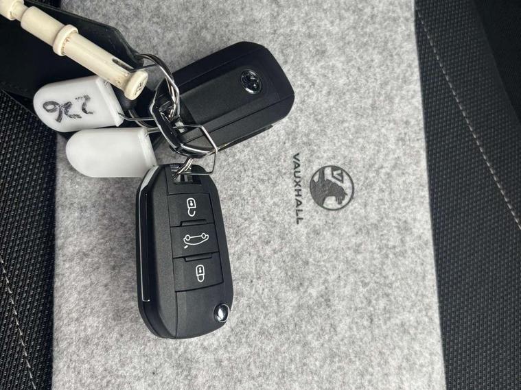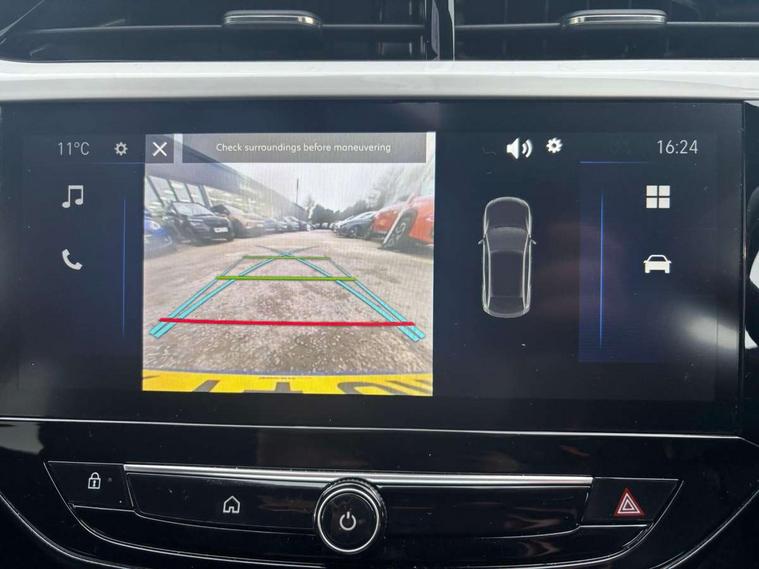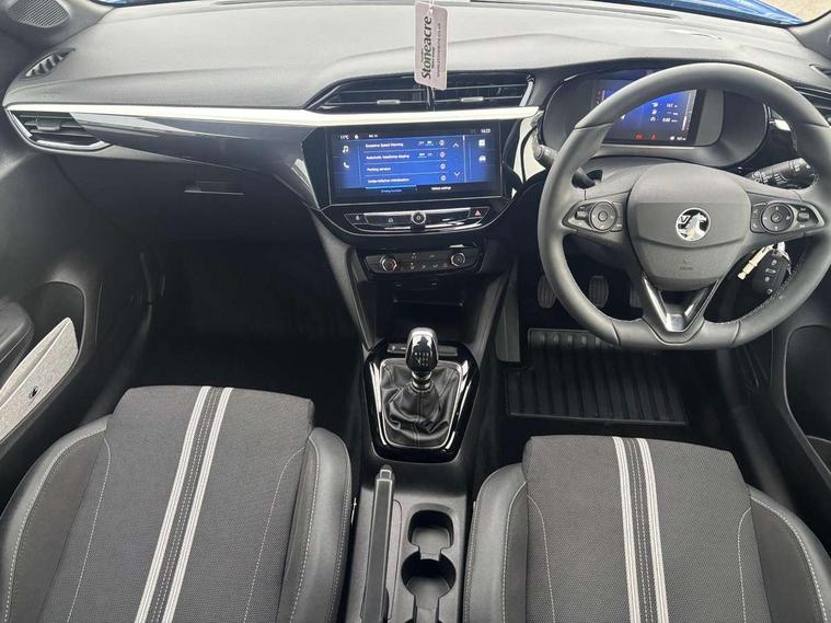 130 degree rear view camera, 7 inch digital instrument cluster display, Auto tele unit 3S vehicle communication system, Breakdown call (b-call), Central facia display with digital clock, outside air temperature and audio information, Cruise control with intelligent speed limiter, Driver drowsiness alert system, E-call, Engine oil life indicator, Front and rear parking sensors, Front camera system, Instrumentation - Speedometer, rev counter, low fuel gauge warning light + water temperature gauge warning light, Lane departure warning, Lane keep assist, Lights on audible warning, Multi function trip computer, RDS with traffic programme, Service indicator, Side blind spot alert, Smartphone projection, Speed sensitive power steering, Speed sign recognition, Sport drive mode selector, Start/stop system, Vauxhall connect box, Wireless Apple CarPlay/Android Auto, Electronic returnless fuel system, Petrol Particulate Filter, Under body shield for aero, AM/FM stereo radio, Bluetooth connectivity with A2DP audio streaming function (Advanced audio distribuition profile), DAB Digital radio, Multimedia with 10-inch touchscreen, Six speakers, Steering wheel audio, phone and cruise controls, USB type C port, 3rd brake light, Automatic headlight control system, Black DLO, Black door mirror housings, Black Griffin logo and vizor frame, Black lower side window mouldings, Body colour door handles, Body colour front and rear bumpers, Bonnet/headlight/wiper structure, Corsa lettering in tailgate, Dark tinted rear side windows + tailgate window, Electrically adjustable and heated door mirrors, Electrically folding door mirrors, Electrically operated front and rear windows with safety auto reverse and one touch up/down facility, Electrochromic automatic anti-dazzle rear view mirror, Flexible roof mounted aerial, Glazed tailgate and heated rear window with wash/wipe facility, Hazard warning lights, Headlamps for left side traffic, High beam assist, High gloss black finish B pillar, Intelli-LED headlights, LED daytime running lights, LED tail lamp, Rain sensitive windscreen wipers, Rear fog lamp, Rear reversing lights, Rear side wing doors, Rear wiper, Solar heat absorbing windscreen and windows, Sports front and rear body styling for upper and lower bumper design, Two speed windscreen wipers with variable intermittent wipe, Windscreen and side window demist vents, 12V power sockets, 3 bench rear seats in 2nd row, 3 spoke flat bottomed steering wheel with satin chrome effect bezel, 4 speed fan with illuminated controls, 4 way manual co-driver seat reach fore/aft, backrest upright/recline, 6 way manual adjustable driver seat height up/down, reach fore/aft, backrest upright/recline, 60/40 split folding rear seat, Air conditioning with air recirculation facility, Banda cloth upholstery, Black headliner, Cabin particulate filter - removes dust, airborne particles and pollen, Driver/passenger sunvisors with vanity mirrors + covers, Four adjustable facia vents, Front centre armrest with storage, Front cupholder, Front headrests, Height adjustable head restraints, Illuminated glovebox with lid, Interior courtesy light, Internal chrome door handles, LED boot light, Polyurethane gear knob/lever, Reach and rake adjustable steering column, Rear cupholder, Rear headrests, Right hand drive (RHD), Rubber pedals, Single dome lamp with dual front reading lamps, Single front passenger seat, Sports style front seats, Two litre open door pockets, 3 rear 3 point seatbelts, Anti-lock braking system (ABS), Automatic emergency braking with pedestrian detection, Cornering brake control, Deactivation switch for front passenger's airbag, Drag torque control, Driver and front passenger airbags, front seat side impact airbags, full size curtain airbags, EBD - Electronic brakeforce distribution, Electrical child lock system in rear door latch, Electronic Stability Programme (ESP), Emergency brake assist, Forward collision alert, Front seatbelt unfastened audible warning and warning light, Hill hold and start system, ISOFIX child seat mountings incorporating top tether anchor points located on second row rear seats, Manual handbrake, Seatbelt pretensioners, Single tone horn, Straight line stability control, Traction control, Tyre deflation detection system, Tyre pressure monitoring system, 2 keys one folding with integral remote, Electronically protected audio equipment, Engine deadlock and immobiliser, Freewheeling door locks, Locking wheel nuts, Remote control central locking, Remote control security alarm system, Remote locking fuel filler flap, Steering column lock, Visible vehicle identification number, Silent white fascia with blanc banquise insert, 17" Diamond-cut hi-gloss black alloy wheels,