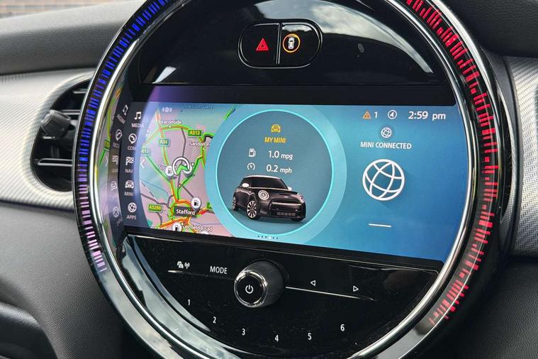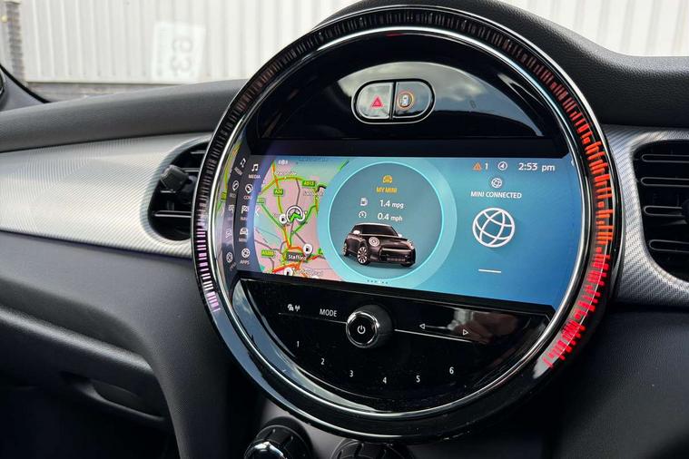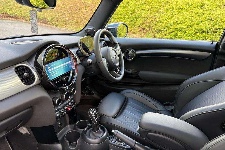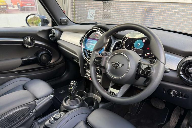 Apple CarPlay, Automatic start/stop function with brake energy recuperation, Compatible mobile phone bluetooth with audio streaming, Cruise control with brake assist, Electro-mechanical speed dependant steering assistance, Flexible car sharing preparation, Instrument cluster, MINI Driving Modes - centre toggle switch to control driving setting (sport, mid and green), Mini E-call, MINI TeleServices, On board computer, Rear park distance control, Service interval indicator, Double Vanos system, Fully variable valve control, High precision injection, Performance Control, Steptronic sport transmission with double clutch and steering wheel paddles, 8.8" touchscreen with LED ring, FM tuner and DAB digital radio, 3rd brake light, Automatic headlight activation switch, Bonnet scoop, Chrome line exterior - radiator grille bars, tailgate handle, lower front grille grating and rear central fog-light, Dynamic brake lights, Electric front windows, Heated rear window, Heated windscreen washer jets, LED headlight with closed ring and daytime driving lights, Metal door sill strips with Cooper S, Model logo Cooper S on right of tailgate, Rain sensor window wipers, Rear fog lights, Rear LED lights with union jack design, Rear window wiper, Side scuttle panel with integrated indicator, Sun/heat protection glass, White indicator lenses, 12V Accessory socket in centre console, 2 seat bench in 2nd row, 4 lashing eyes in luggage compartment, 60/40 split folding rear seat, Carbon black colour line - Knee roll and door armrest, Chrome interior highlights, Chrome line interior - air vents, gear lever base, door handles and speakers in doors, Cupholders, Front and rear head restraints, Front and rear isofix with front passenger airbag deactivation, Front floor mats in velour, Glove compartment, Height and length steering column adjustment, Interior lighting with 12 different colours across the dashboard, underneath door bezel with illuminated laser-engraved design on central display, Leatherette gearshift lever and handbrake gaiters, LED reading lights, vanity mirror lights, front foot well light and spotlight on front seats, Manual air conditioning, Mechanical seat adjustment - forward/back & backrest for front seats and driver seat height adjust, MINI yours badge on exterior pillar, Multifunction steering wheel, Passenger seat height adjuster, Satellite grey headlining including grab handles and clothes hooks, Single front passenger seat, Storage compartments in doors, Storage pocket on back of front seats, Sunvisors with vanity mirrors, Walknappa leather steering wheel with grey seam and MINI Yours badge on Piano Black lower steering wheel spoke, 3 point seatbelts on all four seats, 6 Airbags - front, side, head and seat belt tensioners, Anti-lock braking system (ABS), DSC - Dynamic Stability Control, Front and rear disc brakes, Two tone horn, Tyre pressure monitoring system, Alarm system with tilt sensor, monitoring doors, bonnet interior and tailgate, Electronic vehicle immobiliser, Start/stop toggle with keyless go, Tool kit,