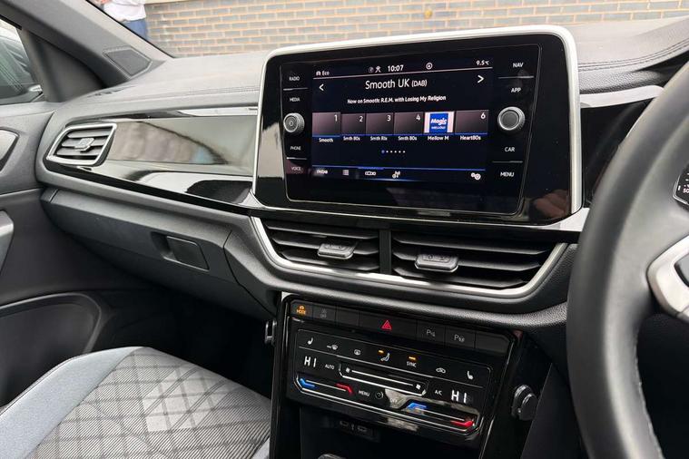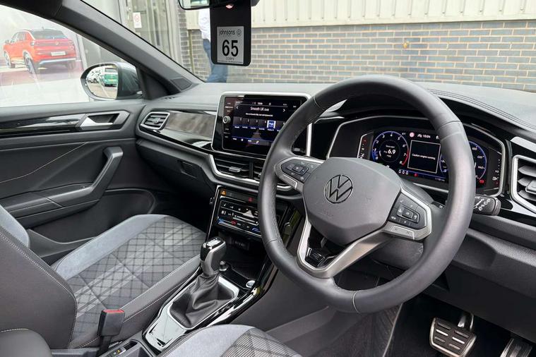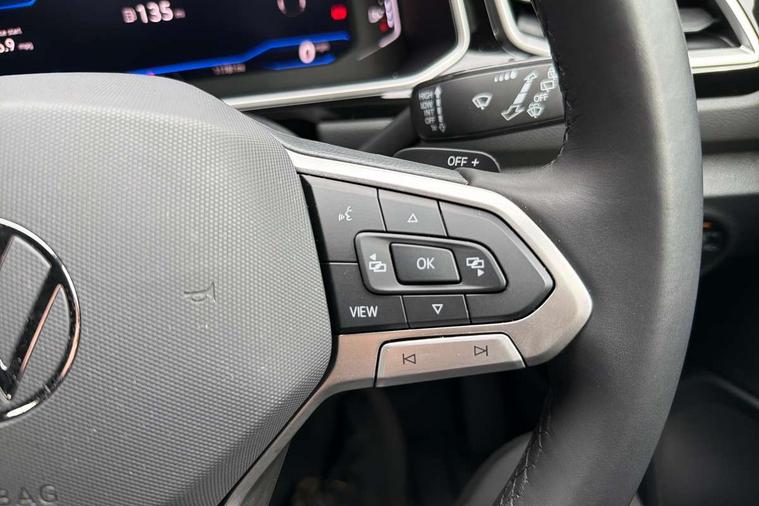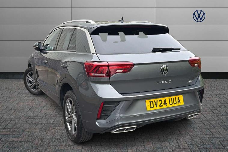 10.25" Digital cockpit pro, Advanced driver attention and drowsiness monitor, Bluetooth mobile phone interface, Emergency call service, Lane keeping system Lane Assist, Modified key software - reduce switch off time for key status change to Long no motion, Online services, Park assist including front and rear parking sensors, Service interval indicator, Tailgate/trunk lid release from outside, Think blue trainer driver tips and journey analysis, Warning sound and light for front seatbelts unfastened, Wireless app connect, Battery regeneration during braking, Start/stop function with battery regeneration, Diversity antenna for FM reception, Music playback - MP3, WMA and AAC files, Premium USB cable in choice of either Apple or Android smartphone compatibility, SD card slot, Simultaneous pairing of 2 compatible mobile devices, Title and cover art display, We Connect and We Connect Plus functionality, 3rd brake light, Auto dimming interior rear view mirror, Automatic hazard lights activation under emergency braking, Automatic headlight control with LED separate daytime running lights with coming/leaving home function, Electrically adjustable and heated door mirrors, Extended roof spoiler, Exterior mirrors aspherical on driver side, convex on front passenger side, External USB type C socket and charging sockets, Front windscreen wiper with intermittent wipe and 4 position delay, Heated rear window, LED rear combination lamps, LED rear number plate lights, Power windows with comfort operation and circuit breaker, R-Line design body coloured bumpers, Rain sensor, Rear exhaust tailpipe, Rear fog light on one side and reversing lights on both sides, Rear side wing doors, Rear wash/wipe with intermittent wipe setting, Remote electrically foldable door mirrors, puddle lights and reverse activated passenger's door mirror, 12V power socket in centre console, 3 rear head restraints, 3 seat bench in 2nd row, 4 load lashing points in luggage compartment, Air care climatronic air conditoning system with active combination filter and 2-zone temperature control, Black roof lining, Chrome plated radiator grille inserts, air vent surrounds and light switch surrounds, Door and side trim panel with leatherette insert, Front + rear carpet mats, Front centre armrest, Front cupholders x 2, Front footwell illumination, Front reading light, Front scuff plates with R Line logo, Front seat back storage pockets, Glove compartment door with light, Instrument lighting, white adjustable panel illumination, Interior ambient lighting and surround lighting, Interior light delay, Isofix child seat preparation, Leather gearshift handle, Load-through provision with cup holder when folded down ('Unsplit rear seat bench, split folding backrest, with centre armrest), Luggage compartment lighting, Single front passenger seat, Stainless steel pedals, Storage compartment in left and right luggage area, Storage compartment in rear doors, Storage compartments in driver and front passenger doors, Sunvisors with illuminated vanity mirrors, Variable boot floor, height adjustable and removable, Driver assistance pack without proactive passenger protection - T-Roc, 3 point height adj front seatbelts + pretensioners, 3 point seatbelts in outer rear with ECE label, ABS, Child locks on rear doors, City emergency braking and pedestrian monitoring, Driver and front passenger airbag with front passenger airbag deactivation, Driver and front passenger safety-optimised head restraints, Drivers seatbelt reminder, Electronic parking brake, Electronic Stability Control (ESC) inc EDL (Electronic Differential Lock) and ASR (Traction Control), Front and rear passengers curtain airbag system including front side airbags, Hill start assist, Predictive pedestrian protection, Rear disc brakes, Two tone horn, Tyre pressure loss indicator, Volkswagen roadside assistance, Anti-theft alarm system with interior monitoring, backup horn, and towing protection, Remote central locking with SAFELOCK, radio remote control with 2 remote control folding keys, Trims for alloy wheels,