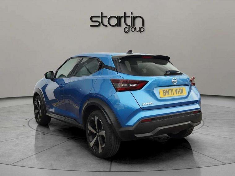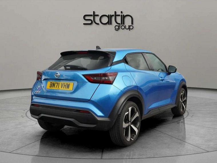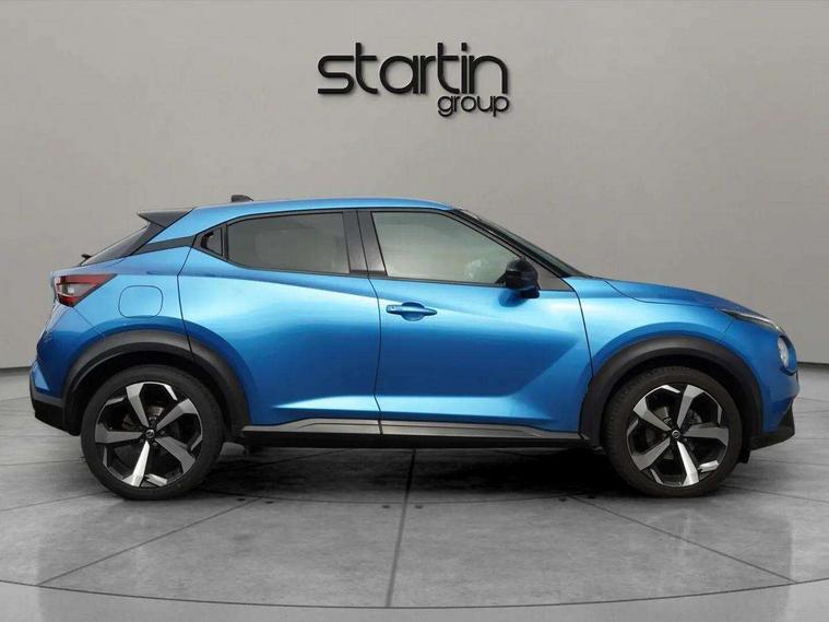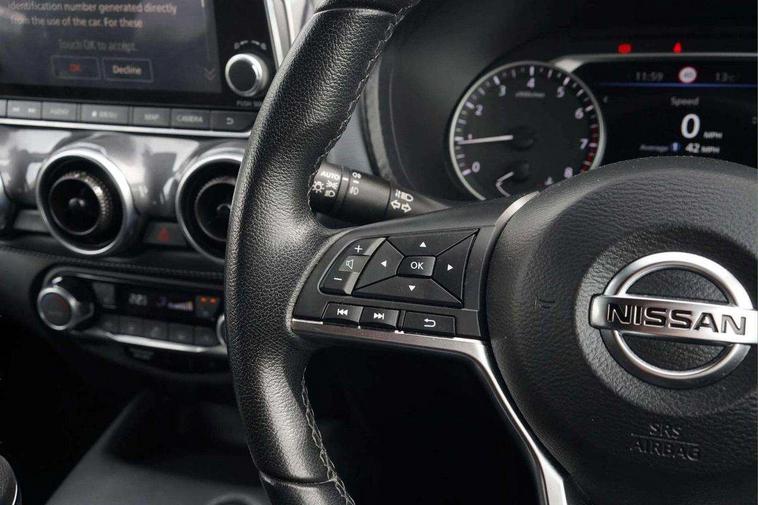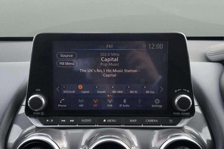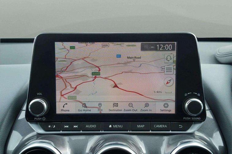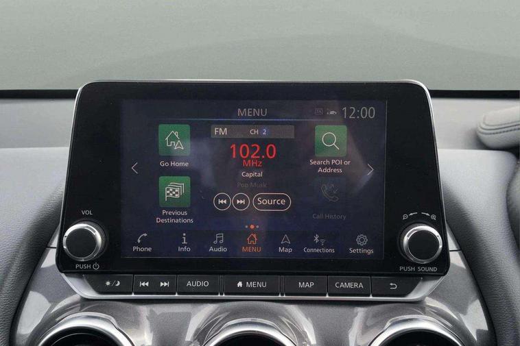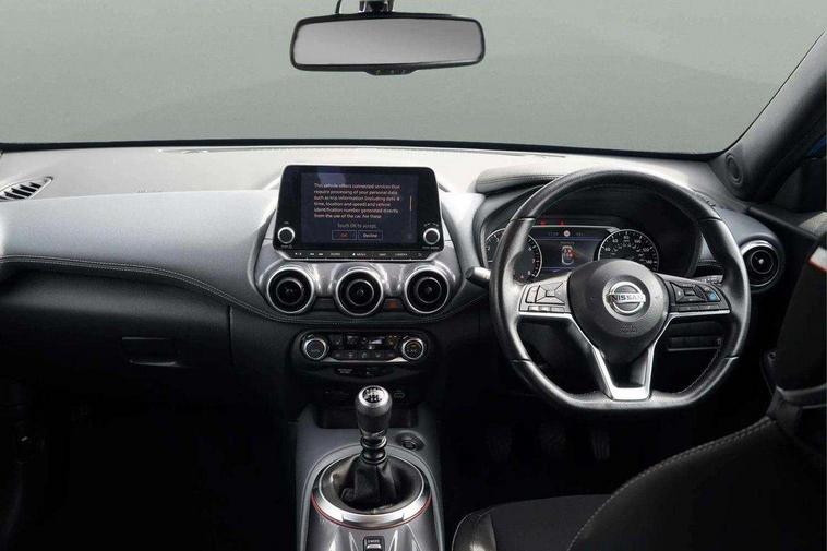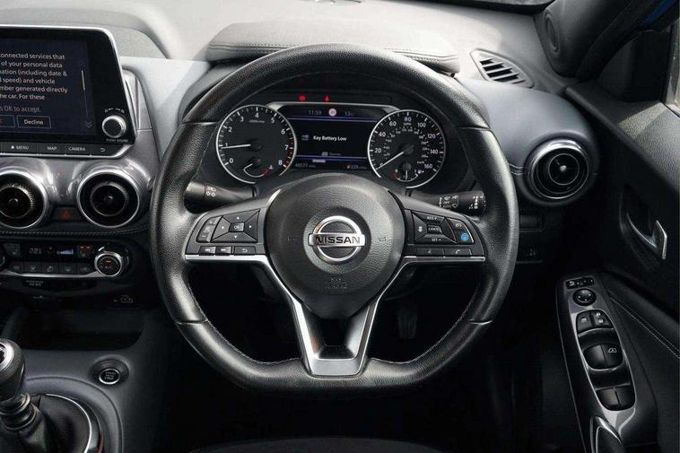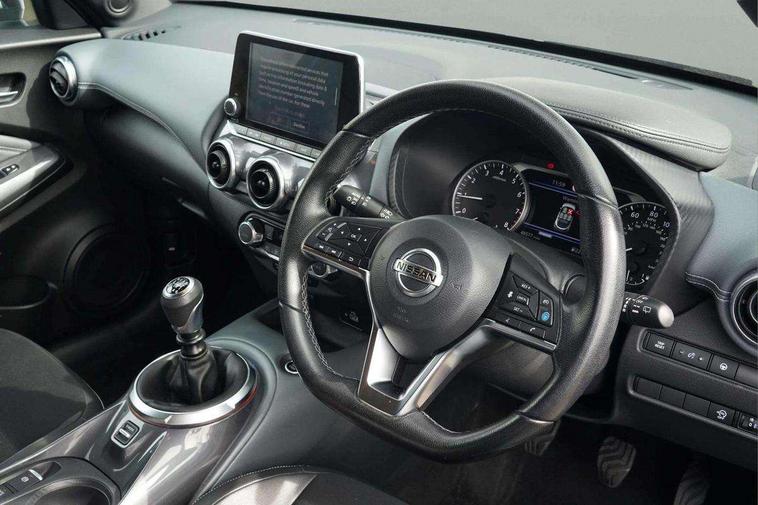 7" full colour TFT screen combimeter, 8" infotainment colour display with touch screen, Apple CarPlay and Google Android auto, Drive modes select (Eco, normal and sport), Emergency and breakdown call, Front parking sensor, Idle start/stop system, Intelligent lane intervention, Lane departure warning system, Nissan connect nav with TomTom traffic, Nissan connect services and Wifi connection, Outside temperature sensor, Power Steering, Rear parking sensor, Traffic sign recognition, Trip computer, Gasoline particulate filter, Bluetooth system, USB, Aux-in and 12V socket, Bose personal plus audio system with 8 speakers(4 speakers and 2 headrest speaker for driver and passenger seats), Bose personal sound stage control, DAB Digital radio, Rear console USB port, Auto dimming interior rear view mirror, Automatic hazard signal with emergency stop signal, Body colour bumpers, Body colour door handles, Electrically adjustable door mirrors with integrated indicators, Follow me home headlights, Front and rear electric window with one touch driver window, Heated and auto folding door mirrors, High beam assist, LED daytime running lights, LED front fog lights, LED headlamps, LED rear fog lamp, LED rear lamps, Rain sensor windscreen wipers, Rear privacy glass, Rear wiper, Thermaclear heated windscreen, Three blink turn signal, 3 height adjustable rear headrests, 60/40 split folding rear seat, Automatic climate control, Card holder on driver sunvisor, Cloth/Synthetic leather upholstery, Door ambient lighting, Driver and passenger sliding and reclining seats, Driver seat back pocket, Driver side rear coat hanger, Driver/passenger sunvisors and vanity mirrors, Front and rear cabin lighting, Front armrest, Front door pockets with bottle holders, Front head restraints, Front passenger isofix child seat anchorage point, Front/rear passenger grab handles, Gear console ambient circle lighting, Grey synthetic leather kneepad, Heated front seats, Height adjustable driver's seat, Height adjustable passenger seat, Internal chrome door handles, Leather gearshift knob, Leather steering wheel, Luggage board, Luggage space lighting, Monoform sporty seats, Multifunction steering wheel, Passenger seat back pocket, Rear door bottle holders, Telescopic steering wheel adjustment, Two cupholders in front centre console, Two rear isofix child seat anchorage points with top tether, Voice recognition switch on steering wheel, Welcome light and console tray ambient lighting, Advanced safety shield pack - Juke, ABS with EBD and brake assist, Active ride control, Active Trace Control, Driver and passenger airbags, Driver and passenger side airbags, Electric handbrake with auto hold function, Electronic Stability Programme (ESP), Front and rear curtain airbags, Height adjustable seatbelts, Hill start assist, Intelligent emergency braking with pedestrian and cyclist recognition, Seatbelt reminder for driver/front passenger and rear seats, Single tone horn, Three 3 point rear seatbelts, Traction control, Tyre pressure monitoring system, VDC Dynamic Vehicle Control, Ventilated rear brake discs, Alarm, Immobiliser, Intelligent Key with push button starter, Remote central locking,
