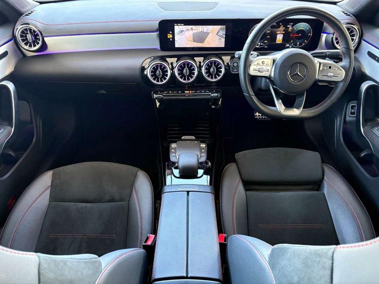 10.25 inch Instrument display with digital cockpit, 10.25 inch touchscreen central media display, Active lane keeping assist, Attention assist - Monitors steering behaviour and long journey fatigue, Bluetooth connection, Car wash mode, Cruise control with limiter, Direct steer system with speed sensitive power steering, DYNAMIC SELECT with a choice of driving modes (ECO, Comfort, Sport and Individual), ECO start/stop function, Fluid level warning indicator for fuel, oil, coolant and washer fluid, Hard-disk navigation, Hey Mercedes Voice activation, Lamp failure indicator, Mercedes me connect including emergency call system, accident recovery, breakdown management and maintenance, Mercedes me remote services, Outside temperature gauge, Owners manual and service booklet in English, Pre-installation of private car share, Preinstallation for Mercedes Benz link, Radio aerial integrated into front and rear windshields, Service indicator (ASSYST), Smartphone integration with Apple CarPlay and Android auto, Speed limit assist, Trip computer in multifunction display with current consumption indicator, Lowered comfort suspension, Rear axle multi-link, DAB digital radio tuner, MBUX multimedia system, Mercedes Benz sound system (100 W) with 6 speakers, USB (type C) ports (2) in stowage compartment and 1 in front of centre console, Adaptive brake lights, AMG body styling with AMG front apron and rear apron and visible exhaust tailpipe in chrome trim elements, AMG bodystyling side skirts, Body colour bumpers, Body colour door handles, Chrome beltline strips, Diamond radiator grille pins in chrome, Electric windows, Electrically adjustable and heated door mirrors with integrated LED indicators, Exhaust system with 2 Visible tailpipe trim elements and rear apron with trim in chrome, Headlamp assist automatic headlamp activation, Heated glass rear windscreen + timer control, High level LED third brake light, Interior mirror with black reading lamps and frameless, LED high performance headlamps with integrated LED daytime running lights, LED tail lamp, Privacy glass with dark tinting on rear side windows and rear window, Rain sensing windscreen wipers with two sensitivity settings, Rear boot, Rear fog lamp, Rear side wing doors, Variable front intermittent wipers, Window line trim strip in chrome, 3 seat bench in 2nd row, 3 spoke flattened bottom nappa leather multifunction steering wheel with perforated leather in grip area, 40:20:40 split folding rear seats with backrest, Air conditioning - Two zone thermotronic luxury automatic climate control with display, Air vents with surround in silver chrome, Artico man-made leather upholstery, Automatic child seat recognition sensor, Black roof lining, Brushed stainless steel sports pedals with rubber studs, Floor mats with stitched AMG lettering, Front centre armrest with stowage, Front door sills with Mercedes Benz lettering, Galvanished gear shift paddles on steering wheel, Heated front seats, Illuminated glove compartment stowage, Interior lighting - 64 colour Ambient lighting, Luggage net on driver/front passenger seat backrest, Manually adjustable front seats, Manually height and reach adjustable steering column, Rear head restraints, Single front passenger seat, Sport seats with fixed head restraints, Stowage compartment in centre console with retractable cover, Sunvisors with illuminated vanity mirrors, Touchpad on center console, Twin front cupholders, Two outer rear seat isofix and top tether child seat fixing points, Light and sight pack - CLA, Mirror pack - CLA, Night package - CLA, Parking package - CLA, Seat comfort pack - CLA, Active bonnet pedestrain safety measure which detects an impact and raises bonnet by 65mm, Active brake assist includes forward collision warning system with autonomous braking, Adaptive brake assist with hold function and hill start assist, Anti lock braking system (ABS) with brake assist, Black seat belts, Bonnet with power domes, Brake pad wear warning indicator, Childproof locks manually operated for rear doors and electrically operated for rear power windows, Crash responsive emergency lighting, Driver and front passenger head and sidebags, Driver and front passenger windowbags, Drivers knee airbag, Dual stage driver and front passenger airbags, Electric parking brake, Electronic stability programme with acceleration skid control, ESP curve dynamic assist, Front and rear seatbelt reminder, Front passenger seat occupancy sensor, Three point rear seat belts, Tyre pressure monitoring system, Warning triangle and first aid kit, Guard 360 degree guard vehicle protection system with immobiliser and interior protection, Keyless Go starting function, Remote central locking and crash sensor with emergency opening function, Light aluminium with longitudinal grain interior trim, 18" AMG 5 twin spoke light alloy wheels painted in black with high sheen finish, Summer tyres, Tirefit tyre sealant kit,