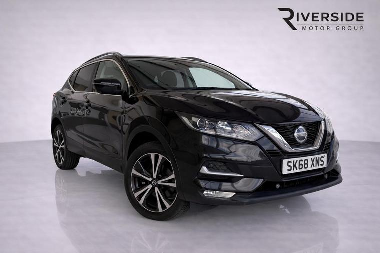 5" TFT driver information centre, Around View Monitor, Bluetooth phone integration system, Cruise control, Electric speed sensitive power steering, Front and rear parking sensors, Lane departure warning system, Nissan connect sat nav system, Outside temperature display, Push button starter, Rear view camera, Service interval indicator, Speed limiter, Traffic sign recognition, Trip computer, 'Shark fin' mobile antenna, 6 speakers, DAB Digital radio, Radio/CD, Smartphone apps, Steering wheel mounted audio controls, USB/aux input socket, Automatic headlamp activation, Body colour bumpers, Body colour door handles, Body colour door mirrors, Chrome window surround, Electric folding and heated door mirrors, Front fog lights, High beam assist, Interior mirror with auto anti dazzle, LED indicators in door mirrors, Matt silver roof rails, One touch electric front/rear windows, Privacy glass, Rain sensor windscreen wipers, Rear roof spoiler, Rear wiper, 2 X front 12v power sockets, 60/40 split folding rear seat, Ambient interior lighting, Centre console with armrest, Chrome interior door handles, Cloth upholstery, Configurable luggage board system, Driver + front passenger lumbar support, Dual zone climate control, Front and rear door pockets with bottle holders, Front headrests, Front seat belt pre-tensioners with load limiters, Height adjustable driver's seat, Height adjustable passenger seat, Illuminated electric window switch, Isofix child seat preparation, Leather gearknob, Leather interior door handles, Leather knee rest, Leather steering wheel, Luggage compartment lighting, Parcel shelf, Pollen filter, Rake/reach adjustable steering wheel, Rear armrest with 2 cupholders, Rear headrests, ABS, brake assist and EBD, Child locks on rear doors, Curtain airbags, Driver/front passenger airbag, Electronic parking brake, ESP + traction control, Forward emergency braking, Front passenger airbag deactivation, Height adjustable front seatbelts, Hill start assist, Seatbelt warning, Side airbags, Three 3 point rear seatbelts, Tyre pressure monitoring system, Alarm, Immobiliser, Intelligent Key, Remote central locking, Piano black interior trim, 18" Bi-colour alloy wheels, Tyre puncture repair kit,