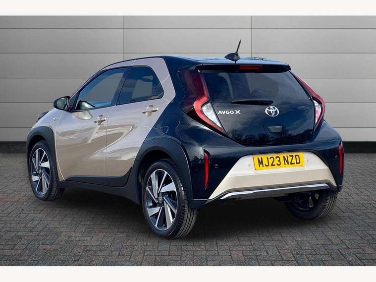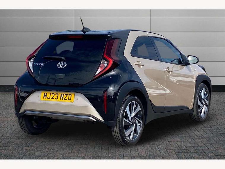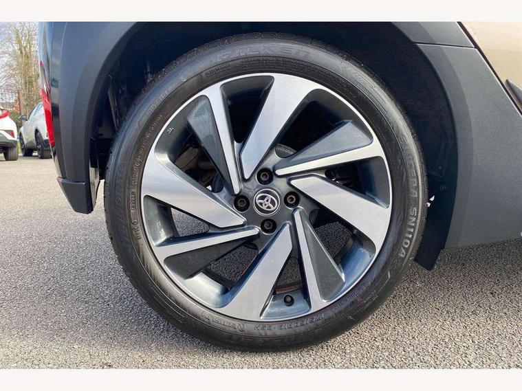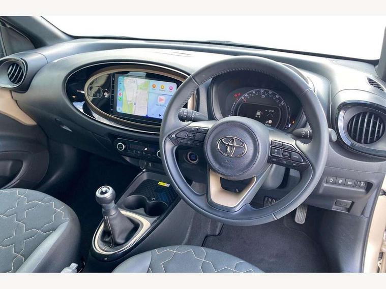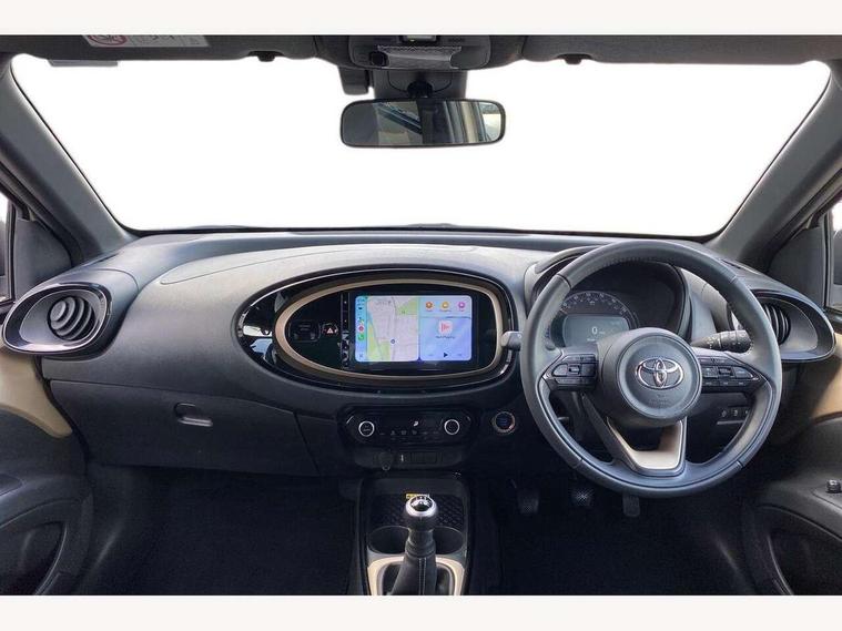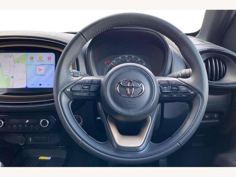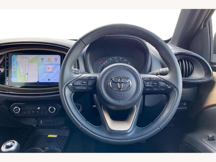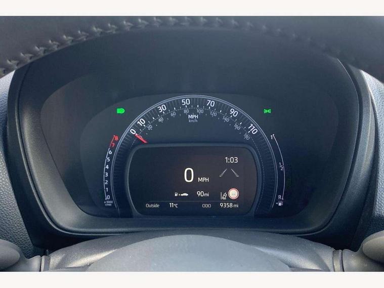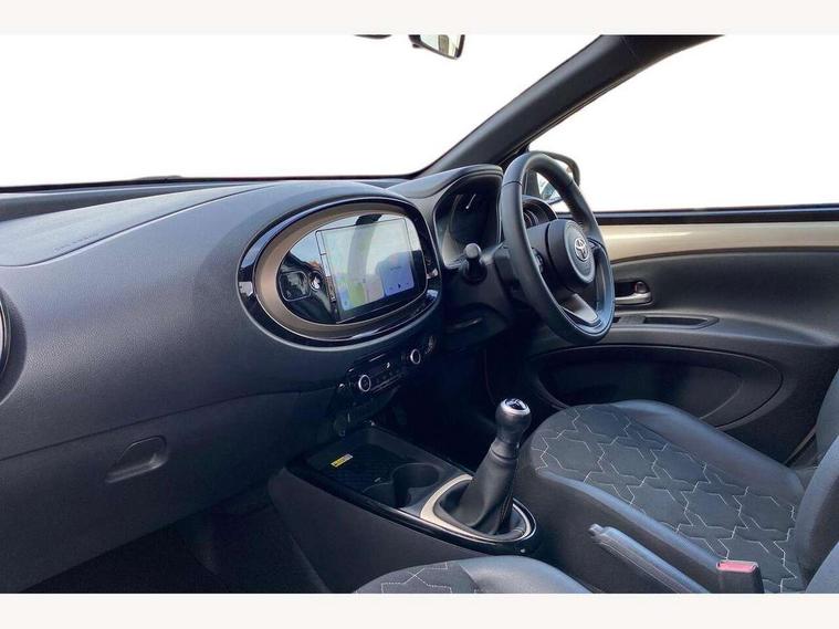 4.2" TFT colour screen, Adjustable speed limiter, Analogue speedometer, Bluetooth connectivity, Digital tachograph, Driver attention alert system, eCall emergency call system, Electric power steering, Front and rear parking sensors with auto brake, Intersection turn assist, Key reminder warning, Noise reduction kit, Pre collision system with emergency steering assist, Remote boot door release on key, Reversing camera with static guide lines, Smart entry and push button start, Speed limit display, Start and stop, Wireless charger, Wireless Smartphone Integration includes Apple CarPlay and Android auto, Vehicle Stability Control (VSC), 4 speakers, 9" HD multimedia display touch screen with Toyota smart connect, DAB digital audio broadcast, USB connector, Auto headlights, Auto wipers, Automatic headlights cut-off, Automatic high beam On/Off switch, Bicycle towing hook, Black fog light surrounds, Black side protection mouldings, Black wheel arch mouldings, Body colour door handles, Body coloured front bumper, Boot door scuff plate, Eclipse black rear bumper, Electric heated door mirrors, Follow me home headlights, Front and rear underruns in silver, Front fog lights, Front power windows, Gloss black door mirrors, Gloss black upper front grille, Headlight cut-off reminder, LED daytime running lights guide, LED front light guide, LED High mounted stop lamp, LED projector headlights, Manual day/night rear view mirror, Manual headlight levelling, Pagoda roof, Power adjustable door mirrors, Power back door, Privacy glass, Rain sensor, Rear combination lights LED bulb type, Rear side wing doors, Rear windscreen defogger, Rear windscreen wiper, Remote hazard lights system, Short antenna, Variable intermittent windscreen wipers, 12v power outlet - front, 2 seat bench in 2nd row, 3 spoke leather steering wheel, 50/50 split folding rear seat, Adhesive roof headlining, Adjustable speed limiter switch on steering wheel, Audio and telephone switches on steering wheel, Auto air conditioning, Black roof lining, Body colour satin anodised insert on steering wheel, Boot light, Centre room light, Chrome interior door handles, Chrome surround on air conditioning buttons, Clean air filter, Console box storage, Floor mats, Front and rear cup holders, Front head rest deco art, Front head restraints, Height adjustable driver seat, Intelligent adaptive cruise control switch on steering wheel, ISOFIX child restraint system on rear seats, Lane departure alert switch on steering wheel, Leather gearshift knob, Light blue ambient lighting in centre console, Manual tilt steering wheel, Manually reclining and sliding driver seat, Manually reclining and sliding front passenger seat, Multimedia switches on steering wheel, Partial synthetic leather upholstery, Pollen filter, Rear door pockets, Rear head restraints, Satin silver insert on gear shift knob, Single compartment glovebox with lights, Single front passenger seat, Soft tonneau cover, Sun visors with mirror on driver and passenger side, Voice recognition switch on steering wheel, Toyota safety sense pack - Aygo X, Anti lock braking system + Electronic brake force distribution, Child safety door lock, Emergency brake light signal (EBS), Hill start assist control (HAC), Passenger airbag on/off switch, Seat belt reminder for front and rear seats, Supplement restraints system (SRS) - 6 airbags, Traction control, Tyre pressure warning system, Immobiliser, Remote power door locks, Black wheel centre caps, Tyre repair kit,
