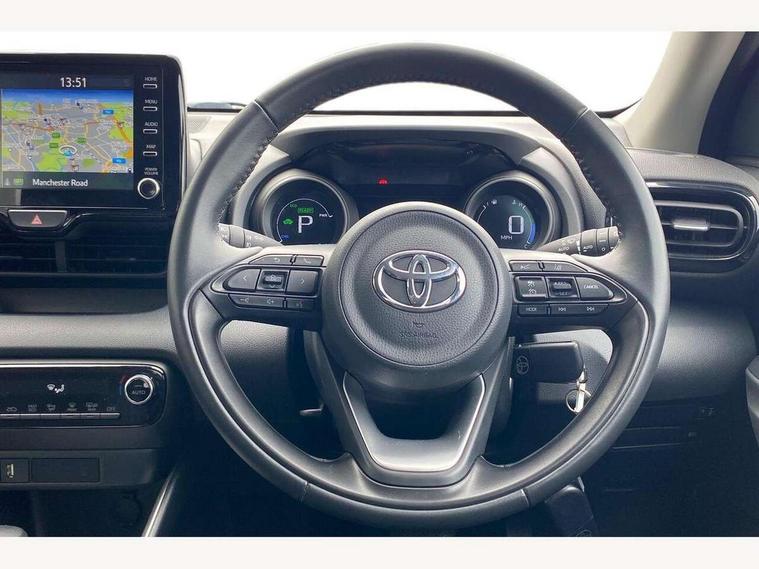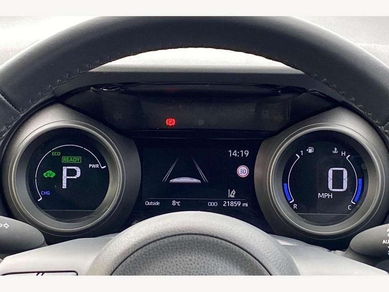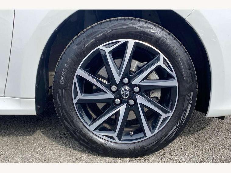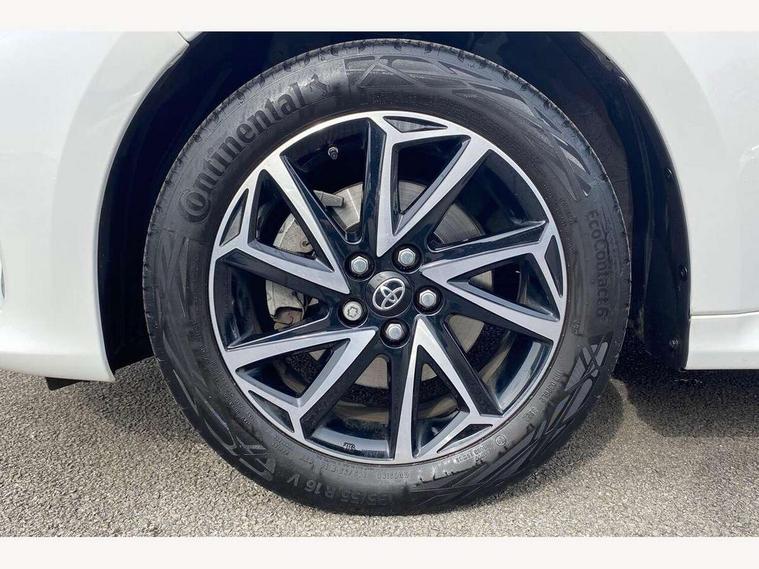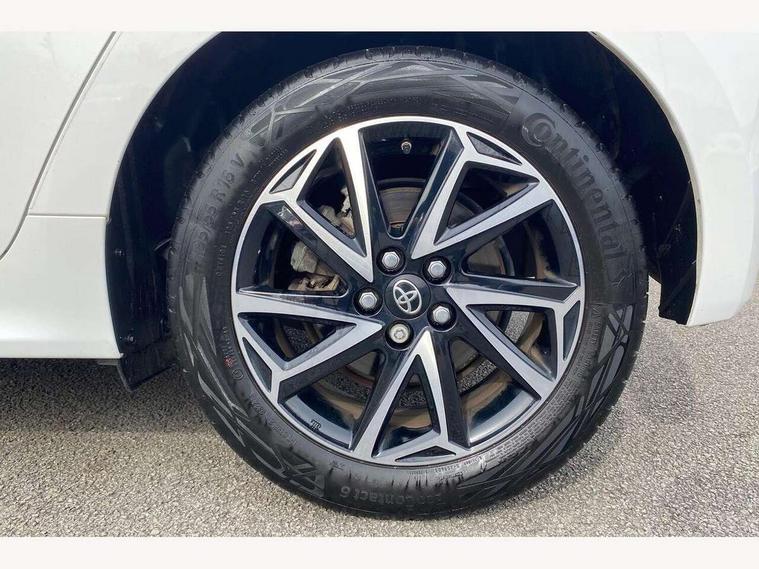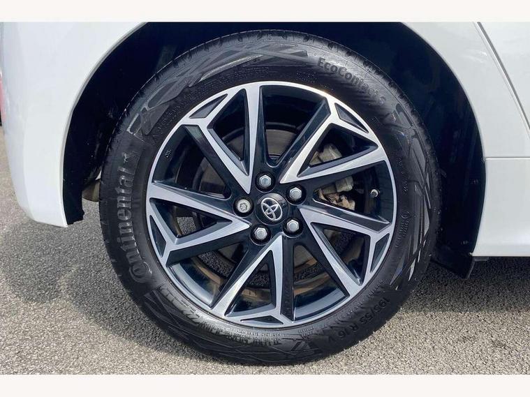 Adaptive cruise control, Adjustable speed limit with speed warning, Bluetooth connectivity, Colour binocular inspired displays with digital speedometer, E-call, Electric power steering, Hybrid energy display, Multi information display switches on steering wheel, Reversing camera, Smartphone integration with Apple CarPlay and Android auto, Tailgate, Voice recognition, Vehicle Stability Control (VSC), 4 speakers, 8" Multimedia display touch screen, USB connection, Acoustic windscreen glass, Auto windscreen wipers, Automatic headlights, Body coloured door mirrors, Electric adjustable heated door mirrors, Follow me home headlights, Front auto power windows with anti jam protection, Full LED rear lights, LED daytime running lights, LED front fog lights, LED front light guide, LED Headlights, LED High mounted stop lamp, LED Indicators, LED rear light guide, Manual headlight levelling, Painted chequered front grille, Rain sensor, Rear auto power windows with anti jam protection, Rear privacy glass, Rear side wing doors, Rear spoiler, Rear wiper, Shark fin antenna, Turning signal integrated indicators in door mirrors, Variable front intermittent wipers, 3 adjustable rear headrests, 3 spoke leather steering wheel, 60/40 split folding rear seat, Active headrests, Adjustable boot height, Auto air conditioning, Coat hooks in rear grab handles, Cup holders (2 front & door), Data Communication Module (DCM) connected services, Fabric upholstery, Front armrest, Glovebox, Grey roof lining, Height adjustable driver's seat, Isofix seat fixing, Leather gearshift, Pollen filter, Shopping bag hooks, Single front passenger seat, Tilt/telescopic steering column, 3 point seatbelts on all rear seats, ABS+EBD+Brake assist, Electronic parking brake, Emergency brake light system (EBS), Front passenger airbag on/off switch, Front seatbelt reminder, Hill start assist control (HAC), Rear child proof door locks, Rear seat belt reminder, Supplemental Restraint System (SRS) 8 airbags: Driver & passenger's airbags, dual side curtain airbags, side impact airbags, front centre airbag, Toyota Safety Sense 2, Precollison + Night time Pedestrian & Cyclist Detection, Lane Trace Assist, Auto High Beam, Intelligent ACC & Road Sign Assist, Tyre pressure warning system, 2x Master key, Alarm/immobiliser, Remote powered central double locking doors, Soft touch instrument panel, Space saver spare wheel,