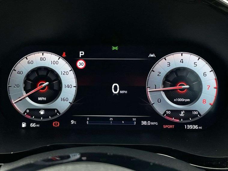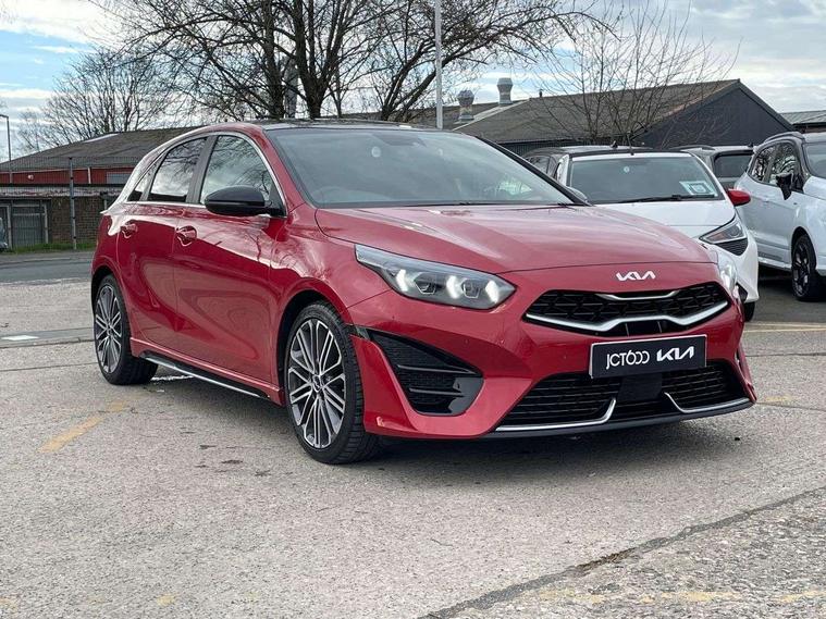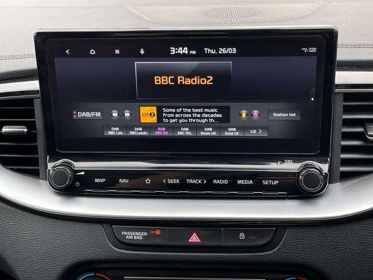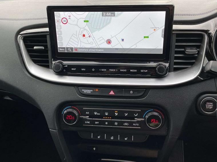 10.25" touchscreen satellite navigation, 12.3" TFT supervision cluster display, Apple car play/Android Auto with voice control, Blind spot Collision Warning (BCW), Bluetooth with Voice Recognition & Music Streaming, Drive mode select (Normal and Sport), Driver Attention Warning (DAW), Driver memory function, Emergency call service, Emergency stop signalling system, Forward Collision-Avoidance Assist (FCA) - City/Pedestrian/Cyclist, Intelligent speed limit warning, Kia connect UVO, Lane Following Assist (LFA), Lane keep assist, Manual speed limit assist, Motor driven power steering, Rear cross-collision assist, Reversing camera system with dynamic guidelines (Integrated into centre fascia screen), Smart cruise control, Smart park assist system (SPAS) with parallel/perpendicular with front/rear parking sensor, Trip computer, Wireless Mobile Phone Charger, Intelligent Stop and Go, DAB Radio with MP3, Illuminated USB ports, JBL Premium sound system with 8 speakers, Steering wheel mounted controls, USB Fast Charger in Front Centre Console, USB port for connection of a media device, All-round Electric Windows with Front Auto Up & Down Function, Auto dimming rear view mirror, Automatic defog system, Automatic headlights control, Body colour bumpers, Body colour exterior door handles, Body coloured and dark chrome rear skid plate, Body coloured side sill mouldings, Dark chrome window surround, Electric adjustable/heated/folding door mirrors with LED Indicators, Heated rear window with timer, High beam assist, High gloss black and dark chrome radiator grille, High gloss black door mirrors, High Gloss Black rear spoiler, LED daytime running lights, LED front fog lights, LED Headlights, LED High-mounted Brake Light, LED honeycomb rear light, LED rear combination lights, Panoramic sunroof with tilt/slide function and automatic electric roll blinds, Privacy glass (rear side windows and tailgate), Rain sensing front wipers, Rear side wing doors, Rear wash/wipe, Satin chrome dual exhaust trim, Tinted glass, Wide view drivers door mirror, Windscreen Washer Level Warning, 1 x Front 12V socket, 12V power socket in luggage compartment, 3 seat bench in 2nd row, 3 x passenger assist grips, 60/40 split folding rear seat, All-round height adjustable headrests, Aluminium pedals, Centre console storage box/armrest, Cupholders in centre console, Cupholders in rear armrest, Dash illumination dimmer switch, Door courtesy lamps, Driver & Front Passenger Sunvisors with Vanity Mirror Illumination & Ticket Holder, Driver + front passenger electric lumbar support, Driver's power seat height adjuster, Dual Height Luggage Area Floor, Dual zone automatic air conditioning, Faux leather door centre trim, Front and rear door storage, Front cabin map light with sunglasses case, Front Passenger Seat Height Adjuster, Front seat back pockets, Heated front seats, Heated rear seats, Heated steering wheel, Interior door lock/unlock function, ISOFIX Child seat top tethers and anchor fixings, Leather D-Cut steering wheel, Leather handbrake, Leather/suede upholstery, Luggage area light, Luggage area parcel shelf, Luggage hooks, Rear centre armrest, Rear coat hooks, Satin chrome interior door handles, Single front passenger seat, Tilt/telescopic adjustable steering wheel, All round 3-point seatbelts, Anti-lock braking system (ABS), Brake assist system, Dual front side airbags, Dual horn, EBD - Electronic brakeforce distribution, Electronic parking brake, Electronic stability control (ESC) and vehicle stability management (VSM), Front passenger airbag cut-off switch, Height adjustable front seatbelts, Hill start assist control (HAC), Impact sensing auto door unlocking, Rear door child safety locks, Seatbelt reminder warning, Twin curtain airbags, Twin front airbags, Tyre pressure monitoring system, Alarm system, Engine Immobiliser & Deadlocks, Engine Start/Stop Button with Smart Entry System, Locking wheel nuts, Speed sensitive auto door locking, Black high gloss front console garnish & door trim, Satin Chrome Fascia Trim, 18" GT-Line S alloy wheels, Tyre mobility kit,