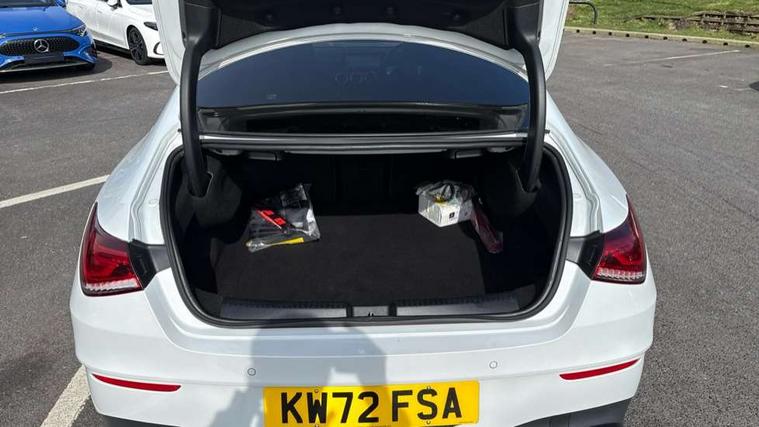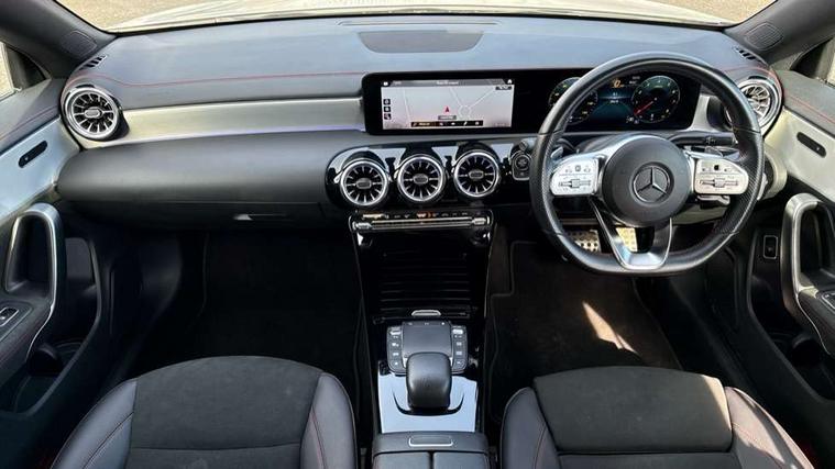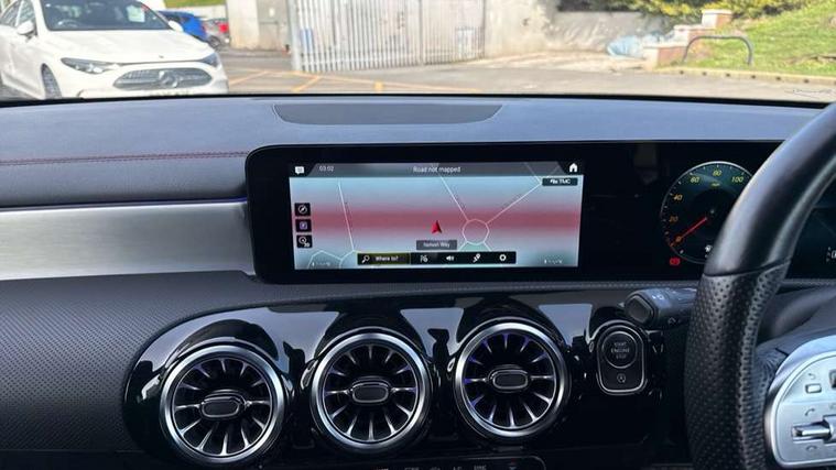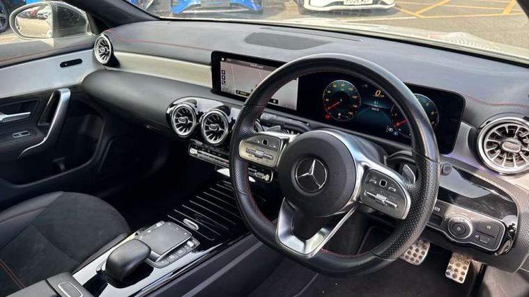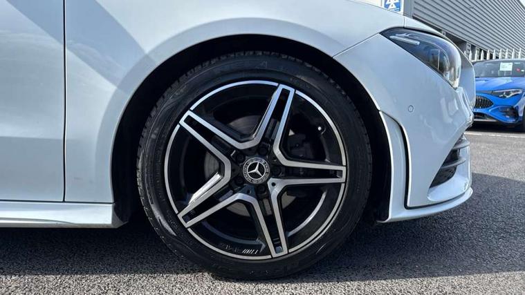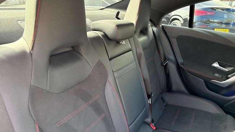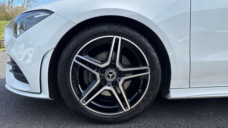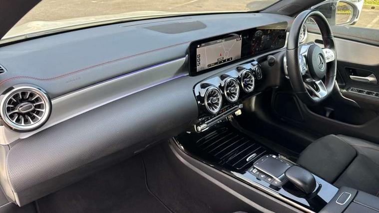 10.25 inch Instrument display with digital cockpit, 10.25 inch touchscreen central media display, Active lane keeping assist, Attention assist - Monitors steering behaviour and long journey fatigue, Bluetooth connection, Car wash mode, Cruise control with limiter, Direct steer system with speed sensitive power steering, DYNAMIC SELECT with a choice of driving modes (ECO, Comfort, Sport and Individual), ECO start/stop function, Fluid level warning indicator for fuel, oil, coolant and washer fluid, Hard-disk navigation, Hey Mercedes Voice activation, Lamp failure indicator, Mercedes me connect including emergency call system, accident recovery, breakdown and maintenance management, Mercedes me remote services, Outside temperature gauge, Owners manual and service booklet in English, Pre-installation of private car share, Preinstallation for Mercedes Benz link, Radio aerial integrated into front and rear windshields, Service indicator (ASSYST), Smartphone integration with Apple CarPlay and Android auto, Speed limit assist, Trip computer in multifunction display with current consumption indicator, Lowered comfort suspension, Rear axle multi-link, DAB digital radio tuner, MBUX multimedia system, Mid-range sound system, USB (type C) ports (2) in stowage compartment and 1 in front of centre console, Adaptive brake lights, AMG body styling with AMG front apron and rear apron and visible exhaust tailpipe in chrome trim elements, AMG bodystyling side skirts, Body colour bumpers, Body colour door handles, Chrome beltline strips, Diamond radiator grille pins in chrome, Electric windows, Electrically adjustable and heated door mirrors with integrated LED indicators, Exhaust system with 2 Visible tailpipe trim elements and rear apron with trim in chrome, Headlamp assist automatic headlamp activation, Heated glass rear windscreen + timer control, High level LED third brake light, Interior mirror with black reading lamps and frameless, LED high performance headlamps with integrated LED daytime running lights, LED tail lamp, Privacy glass with dark tinting on rear side windows and rear window, Rain sensing windscreen wipers with two sensitivity settings, Rear boot, Rear fog lamp, Rear side wing doors, Variable front intermittent wipers, Window line trim strip in chrome, 3 seat bench in 2nd row, 3 spoke flattened bottom nappa leather multifunction steering wheel with perforated leather in grip area, 40:20:40 split folding rear seat backrests, Air conditioning - Two zone thermotronic luxury automatic climate control with display, Air vents with surround in silver chrome, Artico man-made leather upholstery, Automatic child seat recognition sensor, Black roof lining, Brushed stainless steel sports pedals with rubber studs, Floor mats with stitched AMG lettering, Front centre armrest with stowage, Galvanished gear shift paddles on steering wheel, Heated front seats, Illuminated front door sills with changeable cover, Illuminated glove compartment stowage, Interior lighting - 64 colour Ambient lighting, Luggage net on driver/front passenger seat backrest, Manually adjustable front seats, Manually height and reach adjustable steering column, Rear armrest with two integral cup holders for drinks, Rear head restraints, Single front passenger seat, Sport seats with fixed head restraints, Stowage compartment in centre console with retractable cover, Sunvisors with illuminated vanity mirrors, Touchpad on center console, Twin front cupholders, Two outer rear seat isofix and top tether child seat fixing points, Keyless go comfort pack - CLA, Light and sight pack - CLA, Mirror pack - CLA, Night package - CLA, Parking package - CLA, Seat comfort pack - CLA, Active bonnet pedestrain safety measure which detects an impact and raises bonnet by 65mm, Active brake assist includes forward collision warning system with autonomous braking, Adaptive brake assist with hold function and hill start assist, Anti lock braking system (ABS) with brake assist, Black seat belts, Bonnet with power domes, Brake pad wear warning indicator, Childproof locks manually operated for rear doors and electrically operated for rear power windows, Crash responsive emergency lighting, Driver and front passenger head and sidebags, Driver and front passenger windowbags, Drivers knee airbag, Dual stage driver and front passenger airbags, Electric parking brake, Electronic stability programme with acceleration skid control, ESP curve dynamic assist, Front and rear seatbelt reminder, Front passenger seat occupancy sensor, Three point rear seat belts, Tyre pressure monitoring system, Warning triangle and first aid kit, Guard 360 degree guard vehicle protection system with immobiliser and interior protection, Remote central locking and crash sensor with emergency opening function, Light aluminium with longitudinal grain interior trim, 18" AMG 5 twin spoke light alloy wheels painted in black with high sheen finish, Summer tyres, Tirefit tyre sealant kit,