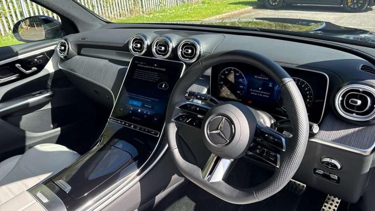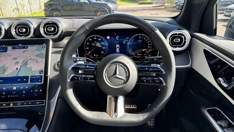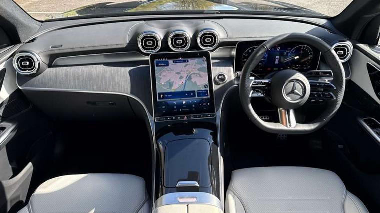 11.9" high resolution multimedia colour display, 12.3" Digital individually configurable instrument display, Acoustic presence indicator, Active lane keeping assist, Attention assist, Blind spot assist, Bluetooth interface for hands free telephone, Collision prevention assist plus, Cruise control with speedtronic variable speed limiter, Dashcam - front camera for video recording, Direct steer speed sensitive steering, DYNAMIC SELECT with a choice of driving modes (ECO, Comfort, Sport, Sport+ and Individual), eCall emergency call system, ECO start/stop function, Fingerprint scanner, Fluorescent jacket for driver, Hard disc navigation, Instrument display in miles with English lettering, MBUX augmented reality for navigation, MBUX navigation premium, MBUX voice control activated by keywords "Hey Mercedes", Mercedes me connect, Outside temperature display, Remote and charging services plus, Remote boot release, Road sign recognition system, Service indicator (ASSYST), Smartphone integration, Status display for rear seat belts in instrument cluster, Traffic sign assist, Trip computer, Wireless charging, 1 x type 2 and 3 phase 4m straight wallbox cable, 49 litre fuel tank, 4MATIC permanent four wheel drive, 7.4 kW monophase on board charger, 9G TRONIC plus automatic transmission, Alternating current charging system (AC charging), Comfort suspension, Petrol Particulate Filter (PPF), Self levelling suspension, DAB digital radio tuner, MBUX extended functions, Mercedes benz sound system, Pre installation for Mercedes Benz Link, Adaptive brake lights, Adaptive high beam assist plus, Aluminium look running boards with rubber studs, Aluminium roof rails, AMG bodystyling front apron, rear apron and side skirts, AMG Line exterior, Auto headlights, Body colour bumpers, Body colour door mirrors, Digital light LED headlights, Electrically adjustable door mirrors, Front and rear electric windows, Headlight washers, Heat insulating dark tinted glass, Heated rear window, High level LED brake light, Integrated LED daytime running lights, LED indicator lights, LED rear fog lights, LED tail lamp, Motor way mode function and locator lighting, Noise acoustic glass, Radiator grille with Mercedes Benz pattern and integreated Mercedes star and louvre in dark grey matt with chrome inlay and black frame, Rain sensor windscreen wipers, Range adjustable headlights, Rear side wing doors, Rear wiper, Transparent Bonnet, Two chrome plated tailpipe trim elements, Variable front intermittent wipers, Welcome and follow-me home light functionality, Wider wheel arch for AMG wheels, 3 seat bench in 2nd row, 40:20:40 split folding rear seats, Ambient lighting premium, AMG line interior, Artico man-made leather upholstery, Audio and onboard settings control on multifunction steering wheel, Automatic child seat recognition sensor, Black fabric roof lining, Black floor mats with AMG lettering, Double cup holder in centre console, Easy-pack removable load compartment cover, Electrically height/reach adjustable steering column, Front centre armrest with stowage compartment, Front head restraints, Galvanised steering wheel gearshift paddles, Heated front seats, Illuminated door sill panels with Mercedes Benz lettering, Illuminated glove compartment, Instrument panel and beltlines in ARTICO manmade leather in nappa look, Multifunction sports steering wheel in nappa leather, Rear centre headrest, Rear head restraints, Rear top tether child seat ISOFIX attachment, Single front passenger seat, Sports pedals with stainless steel surfaces and rubber studs, Sports seats, Sun visors, THERMATIC 2 zone automatic climate control, Anti theft protection package - GLC, Boot comfort package - GLC, Exterior chrome package - GLC, Interior chrome package - GLC, Interior lighting pack - GLC, Keyless-Go comfort package - GLC, Memory pack - GLC, Mirror pack - GLC, Parking package with 360 degree camera - GLC, Seat comfort package - GLC, Stowage space package - GLC 300e/300de, USB Plus Pack - GLC, 3 rear 3 point seatbelts, Active braking assist, Anti-lock braking system (ABS), ASR traction control, Automatic front passenger airbag deactivation, Black seat belts, Brake calipers with Mercedes-Benz lettering + perforated brake discs, Child proof door locks, Dual-stage airbags - driver and front passenger, driver knee bag and window bags for driver, front passenger and rear passengers, Electronic parking brake, Electronic stability programme (ESP) with curve dynamic assist and cross wind assist, Front and rear seatbelt reminder, Front passenger seat occupancy sensor, Front seatbelt pretensioners, Hill start assist, Tyre pressure monitoring system, Warning triangle and first aid kit, Automatic door locking, Guard 360 degree vehicle protection plus, Interior protection/immobiliser, Remote central locking, Centre console in metal structure finish, Metal structure trim, 20" AMG 5 spoke aerodynamically optimised light alloy wheels in painted black with high sheen finish, Summer tyres, TIREFIT with tyre inflation compressor,