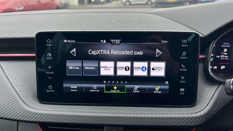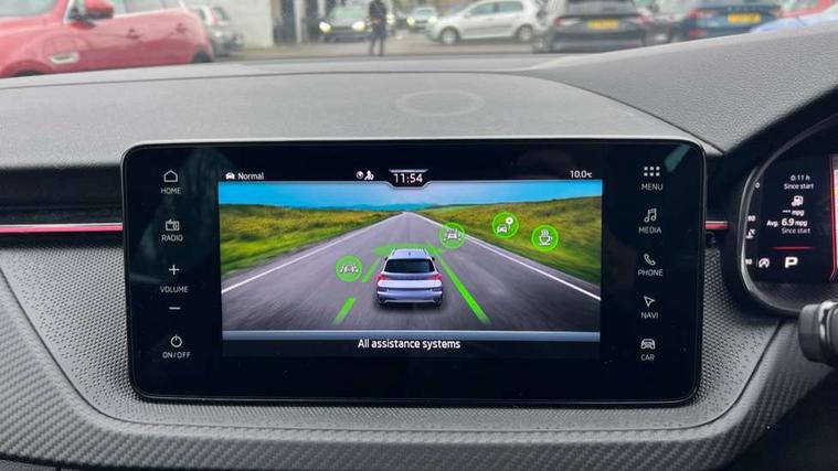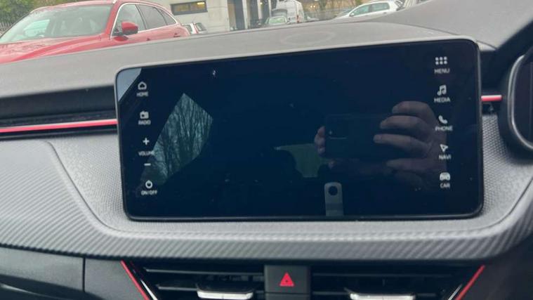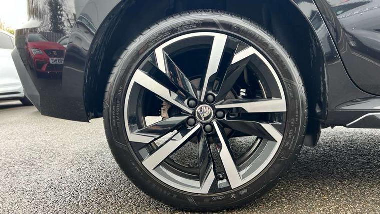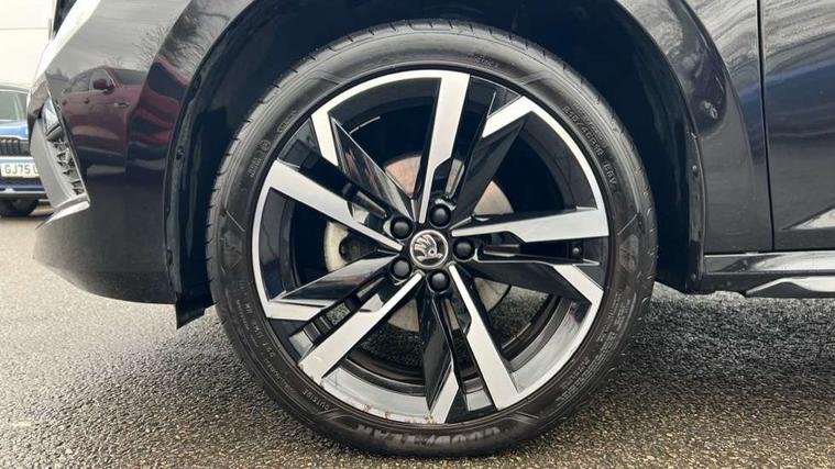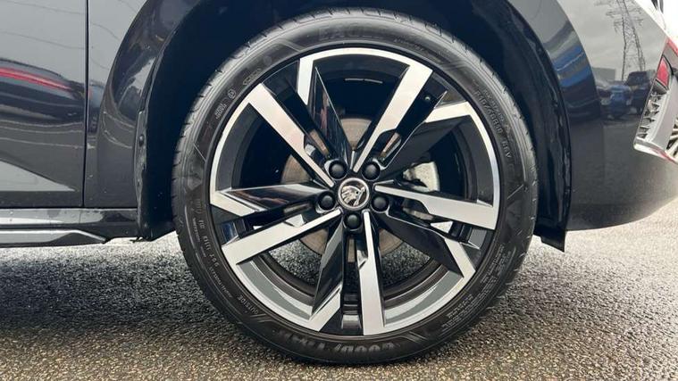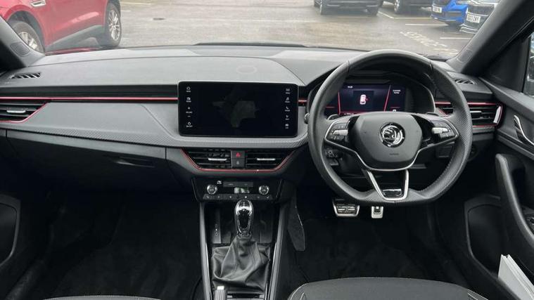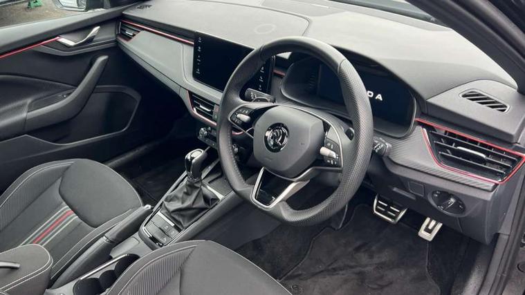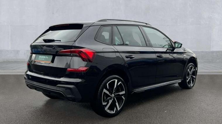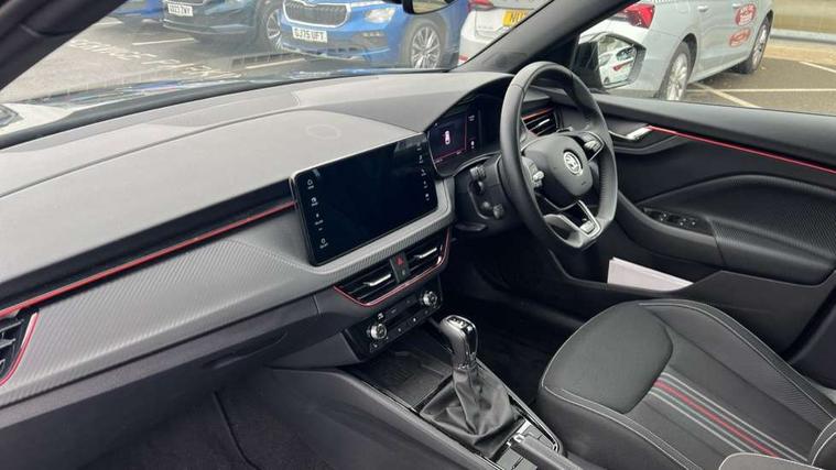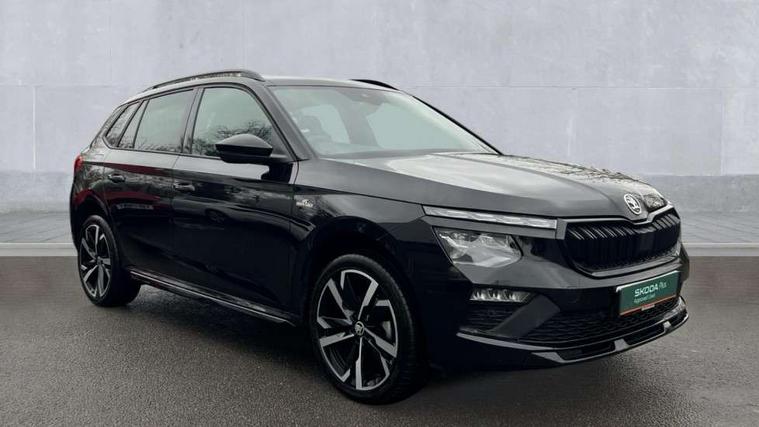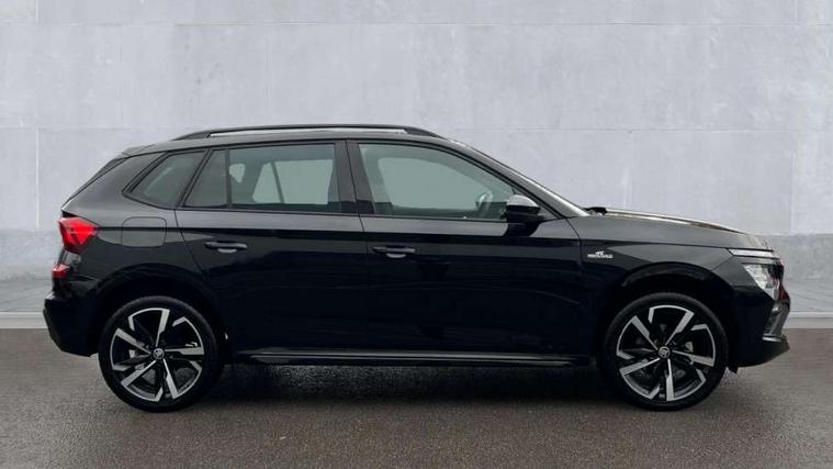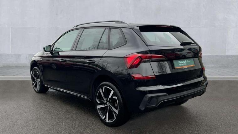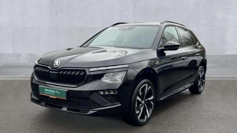 Advanced driver attention and drowsiness monitor, Bluetooth system, E-call, Front assist system, PAS, Rear parking sensors, Rear view camera, Service indicator, Speed limiter, Traffic sign recognition, Virtual cockpit with 10.25" display, Voice control system, Wireless smartlink, 4 USB C ports, 8 Speakers, 9.2" Skoda navigation display, DAB Digital radio, Auto dimming rear view mirror, Automatic headlight control with coming home and leaving home feature, Black door mirrors, Black radiator grille, Black rear diffuser, Black roof spoiler, Body colour bumpers, Body colour door handles, Boot lettering in black, Extended tailgate glass, Fixed panoramic sunroof with black roof rails, Front and rear electric windows, Heated rear window, LED daytime running lights, LED high beam, LED low beam, LED third brake light, Light sensors, Monte carlo plaque, Privacy glass, Rear side wing doors, Rear wiper, Ticket holder inside windscreen, 12V socket in luggage compartment, 3 seat bench in 2nd row, Aluminium pedals, Ambient lighting in white/red, Art leather carbon decor inserts, Art leather carbon door inserts, Black roof lining, Cargo elements, Chrome inner door handles, Driver and passenger sun visors with vanity mirror, Dual zone climate control, Front and rear roof lights, Front centre armrest, Front head restraints, Glove compartment with illumination, Height adjustable driver seat, Height adjustable front passenger seat, Ice scraper, Inner circulation control with pollen filter, ISOFIX on front passenger seat, Isofix preparation for back seats, Leather gearknob and handbrake lever, Manual lumbar support for front seats, Monte Carlo cloth upholstery, Net package and top tether hooks in boot space, Net under rear shelf, Pocket on the back of both front seats include mobile phone pockets, Rake/reach adjustable steering wheel, Reading lights, Rear centre armrests, Red hotstamping, Single front passenger seat, Sports seats, Textile floor mats, Third rear headrest, Top tether for front passenger seat, Umbrella in driver's door, Light and view plus package - Kamiq, 3x3 point rear seatbelts, Airbags - driver and front passenger, Disc brakes, ESP, Extended and predictive pedestrian/cyclist protection, Front passenger airbag deactivation switch, Front side airbags with curtain airbags, Hill hold control, Manual leather parking brake, Manual rear child locks, One tone horn, Seatbelt reminder for driver an co-driver, Traction control, Tyre pressure monitor, Anti-theft alarm system with interior monitoring, backup horn, towing protection and remote central locking with SAFE system, Anti-theft wheel bolts, Electronic engine immobilizer, 18" Ursa black diamond cut alloy wheels,