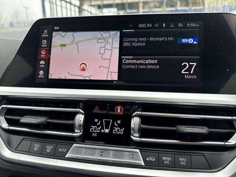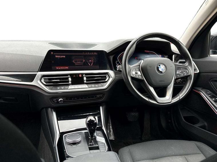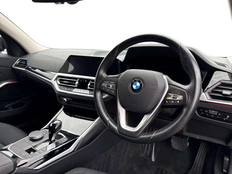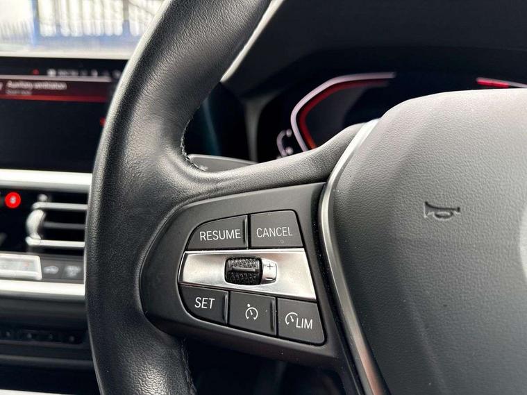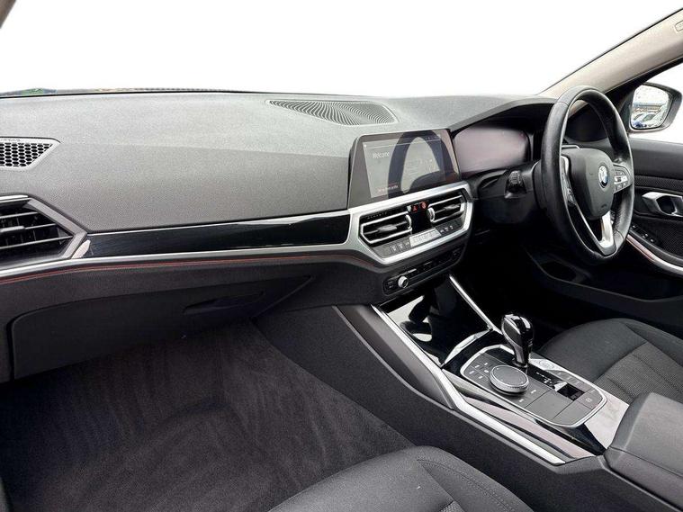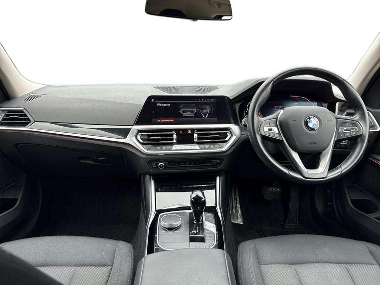 Active guard plus, Attentiveness assist, BMW iDrive controller on centre console, BMW Live Cockpit Professional Nav with 12.3" instrument display + 10.25" display, Intelligent Voice Assist, BMW OS 7, HDD, 2USB, 4G LTE connect, BMW service history, BMW Teleservices, Brake pad wear indicator in front and rear, Check Control warning system for monitoring of lights and door/luggage compartment open warning, Condition based service, Cruise control with brake function + speed limiter, Electric power steering with Servotronic steering optimised at all speed ranges, Instrument cluster with speedometer with mph readout, tachometer, fuel gauge and oil temperature gauge, Integrated owners handbook, Oil sensor for level and grade, warning by check control system, On board computer - average speed+fuel consumption, service interval, clock/date, odometer/trip meter, outside temperature display and ice warning, Optimum shift indicator, Personal Profile - automatic lock when driving away selectable, 48V Mild hybrid technology, Balanced 50/50 weight distribution, Battery cut-out switch, Diesel particulate filter, Drive performance control - ECO PRO, comfort and sport modes, Electronic differential lock control (EDLC), Incorrect fuelling protection, Stroke dependent dampers, DAB tuner, Electronic service booklet, Acoustic glazing, Active airstream chrome frame kidney grille with 8 high gloss black vertical slats, Automatic headlight beam throw control with load dependent regulating reaction, dynamic compensation of braking dive and acceleration squat, Black roof mouldings, Body colour door handles, Body colour front and rear bumpers, Body colour fuel filler flap, Body colour mirror caps with bottom segment in matt black, Dynamic brake lights, Electric windows - front and rear, with open/close fingertip control, anti-trap facility and comfort closing, Exhaust tailpipe - split left and right, Exterior mirrors - electrically folding with anti-dazzle, Fading support, Front and rear bumper system with replaceable deformation elements, Front black door sill finishers with BMW designation, Green tinted heat protection glazing, Interior rear view electrochromatic mirror with automatic anti dazzle function, LED daytime running lights, LED front fog lights, LED third brake light, Lightweight engineering, Matt black exterior B pillar, Model designation on right side of tailgate, Rain sensor with automatic headlight activation, Rear boot, Rear side wing doors, Shark fin antenna, Two part LED tailights in L-shape with components in smoked glass, brake light, LED turn indicator and rear fog light, Visible VIN plate, Welcome lights in interior and door handle area, Windscreen wipers with integrated washing jets, 12V power socket in front storage compartment, 2 front cupholder in centre console with clamping elements and matt black inlay, 3 rear seats with non folding headrests with 3 point seat belts, 3 seat bench in 2nd row, 3 zone automatic air conditioning, 4 pieces lashing eyelets in luggage compartment, 40:20:40 split folding rear seat with loading system, Ambient lighting with welcome carpet light, Armrest integrated in front and rear door trim + front centre console armrest, Centred top Luggage compartment lights, Four grab handles integrated in roof lining, Front and rear door exit lighting (left / right), Front and rear door pockets, Front and rear reading lights, Front and rear velour floor mats, Front head restraints, Height adjustable mechanically and infinitely variable steering column, Illuminated armrest storage compartment, Illuminated glove compartment with separate small compartment, Interior lighting - front centre over interior mirror with soft light, rear centre and front and rear footwell lighting, Make-up mirror lights, Rear centre armrest with 2 cupholders, Rear centre console with storage compartment and ventilation grille, Single front passenger seat, Standard seat for driver and passenger with manual adjustment, Sunvisors with vanity mirrors and ticket pocket, Three spoke multifunction sport leather steering wheel, Toolkit located in luggage compartment, Connected pack professional - 3 Series Saloon/Touring, Parking assistant pack - 3 Series, 2 tone horn, BMW emergency call, Brake energy regeneration, Braking pre-tensioning, Child proof locking system in rear door, Child seat ISOFIX attachment rear outer seats, Coasting in idle in ECO PRO mode, Crash sensor activating of airbags, Unlocking doors, hazard warning lights, interior light, safety battery terminal, Driver and front passenger side airbags, integrated in the door side seat backrest bolsters for all seat variants, Driver/Front Passenger airbags, Dry braking, Dynamic brake control, Dynamic stability control + (DSC+) - Anti-lock Braking System (ABS) with brake assist and cornering brake control + Automatic Stability Control (ASC), Dynamic Traction Control - DTC, Electric parking brake including automatic hold function and automatic release of the parking brake when driving off, Front passenger manual airbag deactivation, Head airbags for all 4 outer seats, Hill start assist, Seat belt security check for driver and front passenger, Side impact protection, Three 3 point seat belts on all seats including front belt stopper, pyrotechnic belt tensioners and belt force limiters, Tyre pressure monitoring with three level warning strategy, Ventilated front and rear disc brakes, Warning triangle and first aid kit, Alarm system (Thatcham 1) with remote control and electronic engine immobiliser, Central locking switch for all doors, fuel filler cap and luggage compartment, Remote control with integrated key one button open/close vehicle and windows, sole opening of the luggage compartment lid and panic mode, Start/stop button with Comfort Go keyless engine start and auto Start/stop deactivation button, Reduced rolling resistance tyres,