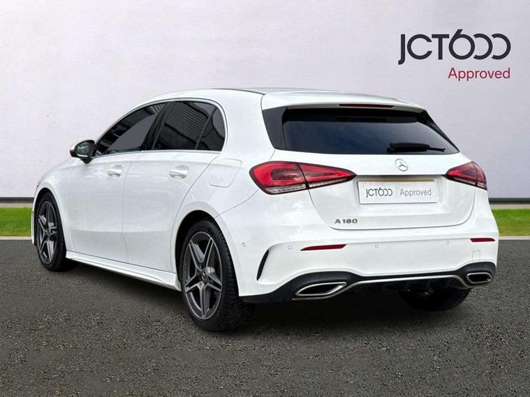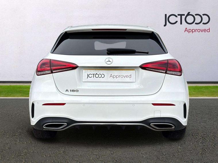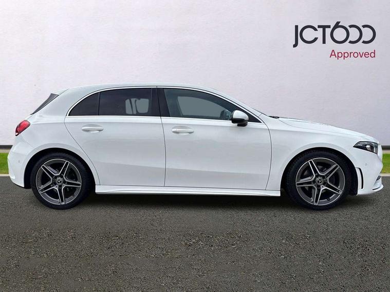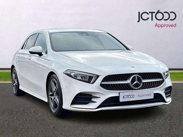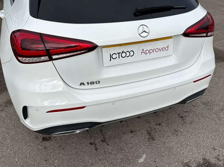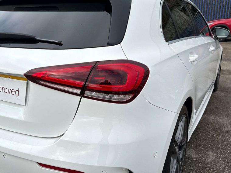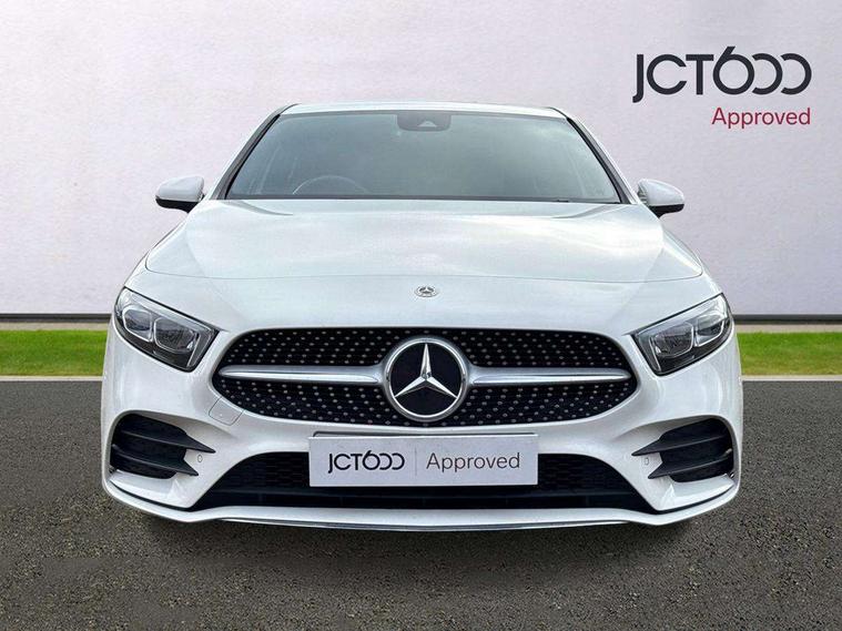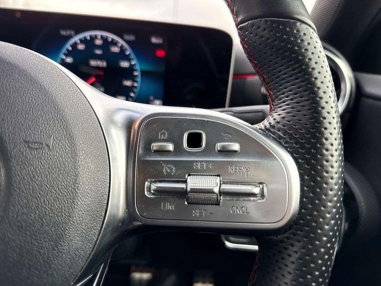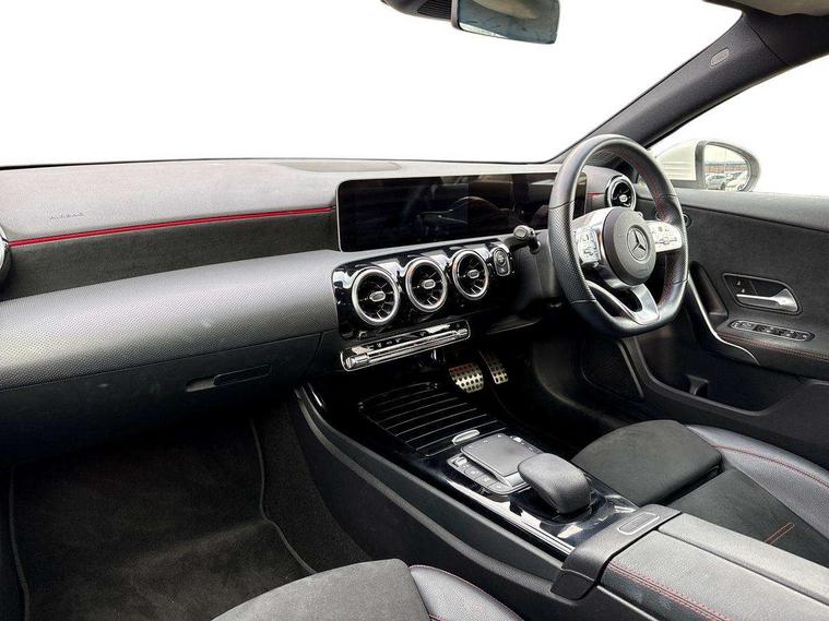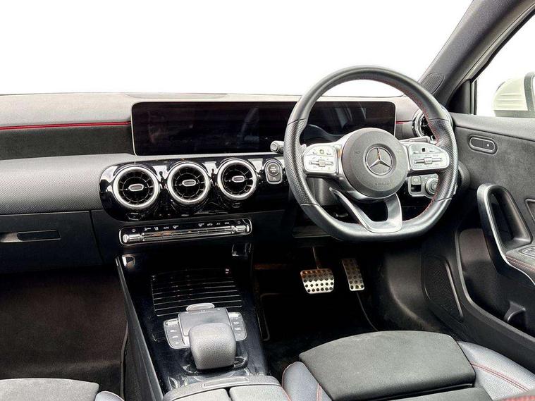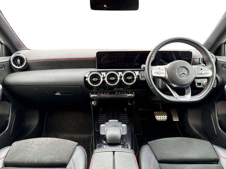 10.25" media display, 180 degree rear view camera with parking guidelines, 7" colour screen in instrument panel, Active lane keep assist, Active park assist with parktronic system including front and rear parking sensors, Attention assist, Brake pad wear indicator warning light, Car wash mode, Cruise control + speed limiter, Direct steering, Dual bluetooth interfaces, DYNAMIC SELECT with a choice of driving modes (ECO, Comfort, Sport and Individual), ECO start/stop function, Fluid level warning indicator for fuel, oil, coolant and washer fluid, Hard-disk navigation, Hey Mercedes Voice activation, Lamp failure indicator, Mercedes me connect including emergency call system, accident recovery, breakdown and maintenance management, Outside temperature gauge, Owners manual in English, Pre-installation for private car sharing, Pre-installation for Vehicle Monitoring, Pre-installation for Vehicle Setup, Preinstallation for Mercedes Benz link, Service indicator (ASSYST), Smartphone integration with Apple CarPlay and Android auto, Speed sensitive power steering, Trip computer, Wireless charging, Lowered comfort suspension, Rear axle torsion beam, 2 USB ports (type C) in rear stowage compartment and one in front of center console, 6 speakers, DAB Digital radio, MBUX multimedia system with DAB digital radio and touchpad including satellite navigation, Mercedes-Benz sound system - 100W, 4 Electric Front and Rear windows, Adaptive brake lights, AMG bodystyling - Front apron with splitter in chrome, rear apron with chrome trim and chrome visible trim elements in tailpipe, Black weather strip, Body colour bumpers, Body colour door handles, Body colour side skirt, Body coloured door mirrors, Chrome beltline trim, Diamond radiator grille with chrome pins and silver louvre + chrome insert, Electric adjustable and heated door mirrors with integrated LED side indicators, Exhaust system - Twin visible tailpipes in polished stainless steel, Headlamp assist automatic headlamp activation, Heated glass rear windscreen + timer control, LED high performance headlamps with integrated LED daytime running lights, LED tail lamp, LED third brake light, Privacy glass, Radio aerial, Rain sensing windscreen wipers with two sensitivity settings, Rear fog lights, Rear wiper, Window line trim strip in chrome, 3 Spoke flat bottom leather multi function steering wheel with perforated leather in grip area, 40:20:40 split folding rear seats, Artico man-made leather/Microfibre Dinamica upholstery with red contrast stitching, Auto Mercedes-Benz child seat recognition sensor, Black air vents with surround in silver chrome, Black roof lining, Brushed stainless steel sports pedals with rubber studs, Controller on centre console with chrome surround, Floor mats with stitched edging and AMG lettering, Front centre armrest with storage compartment, Front door sills with Mercedes Benz lettering, Front seat backs luggage nets, Front seat cushion length adjustment, Galvanished gear shift paddles on steering wheel, Heated front seats, Height/reach adjustable steering column, Interior mirror with reading lamps in black and frameless, Manual height adjustable front seats, Rear head restraints, Seat occupancy sensor for front passenger seat, Sports seats with integrated headrests, Stowage compartment in centre console with retractable cover, Sunvisors with illuminated vanity mirrors, Touchpad on center console, Twin front cupholders, Two zone thermotronic luxury automatic climate control, Light and sight pack - A Class, Mirror package - A Class, Seat comfort pack - A Class, 3 rear 3 point seatbelts, ABS with Brake Assist, Active bonnet, Active brake assist includes forward collision warning system with autonomous braking, Adaptive brake assist with hold function and hill start assist, Childproof locks manually operated for rear doors and electrically operated for rear power windows, Crash responsive emergency lighting, Driver and passenger head and side airbags, Drivers knee airbag, Dual stage driver/passenger airbags, Electronic parking brake, ESP curve dynamic assist, ESP with ASR, Front and rear seatbelt reminder, Front brake callipers with Mercedes Benz lettering, ISOFIX and top tether child seat fixing points in two outer rear seats, Tyre pressure monitoring system, Warning triangle and first aid kit, Window airbags, Alarm system/interior protection/immobiliser, Keyless Go, Remote central locking and crash sensor with emergency opening function, Urban guard vehicle protection system with immobiliser and interior protection, Black seatbelts, Dinamica microfibre trim in black, 18" AMG 5 twin spoke light alloy wheels in titanium grey with highsheen finish, Summer tyres, Tirefit sealant kit,