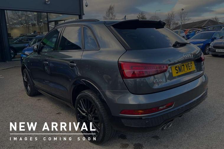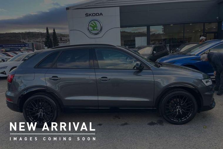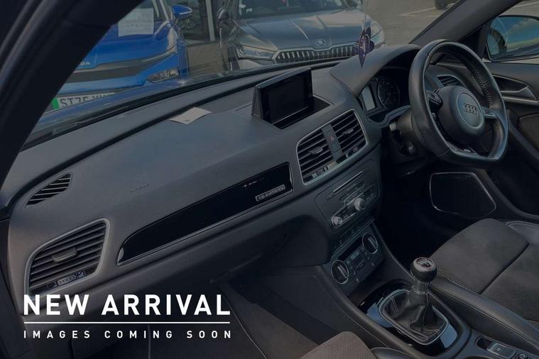 6.5" colour display screen, Audi drive select, Cruise control, Electro-mechanical PAS, Low washer fluid indicator, MMI - Multi Media Interface control system, On board computer, Remote electric boot opening/closing, Service interval indicator, Voice control system, Diesel particulate filter, Sports suspension, Audi music interface, BOSE sound system, DAB digital radio module, Acoustic windscreen, Aluminium window surround, Auto dimming rear view mirror, Black exhaust tailpipes, Black high gloss door mirrors, Black roof rails, Body coloured bumpers, Chrome fog light surround, Chrome grille, Coming home function, Door mirror integrated indicators, Front and rear electric windows, Front lip spoiler, Heated windscreen washer jets, High Gloss Black Contrast Bumpers, High Gloss Black rear spoiler, LED daytime running lights, LED headlights with headlight washers, LED rear lights, Light and rain sensor for auto activation of lights and windscreen wipers, Loading sill protector in stainless steel, Privacy glass, Rear diffuser with platinum insert, Rear wiper, S Line body styling, Sunband for windscreen, 12V socket in rear centre console, 3 spoke flat bottom multi-function perforated leather steering wheel with contrast stitching, Aluminium door sill trims, Aluminium gear knob, Aluminium pedals, Black cloth headlining, Dual zone climate control, Electric front lumbar adjustment, Front and rear headrests, Front and rear velour floor mats, Front centre armrest with storage compartment and angle adjustment, Front sports seats, Height/reach adjust steering wheel, ISOFIX on front passenger and rear outer seats, Jack and tool kit, Retractable luggage cover, Reversible boot floor, Split fold rear seat, Storage compartment and 12V socket, Under floor storage in luggage area, Audi Exclusive black styling pack - Q3, LED interior light pack - Q3, 3x3 point rear seatbelts, ABS+Electronic Brake force Distribution, Curtain airbags, Driver and passenger airbags, Driver and passenger side airbags, EDL + ASR, Electrically operated child locks on rear doors, Electromechanical parking brake, ESP, First aid kit, Front passenger airbag deactivation, Head airbags, Seatbelt warning light, Tyre pressure monitoring system, Warning triangle, Locking wheel bolts, Remote central locking, Thatcham category 1 alarm + immobiliser, Piano black finish inlay,