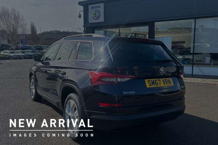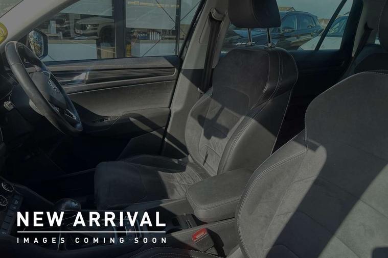 Bluetooth system, Columbus satellite navigation with 9.2" touch screen and integrated Wi-Fi, Drive mode selector, Exterior temperature gauge, Power tailgate, SmartLink, Speed limiter, Bolero Radio, DAB Digital radio, DVD System, SD card slot, USB connection, Adaptive front lighting system, Aero wiper + intermittent function, Auto dimming door mirrors, Auto dimming rear view mirror, Automatic activation of hazard warning lights, Body colour bumpers, Body colour door mirrors and handles, Electric adjustable/heated/folding door mirrors, Electric front windows, Electric rear windows, Front and Rear door steps, Headlight washers, Heated rear window, High gloss black grille with chrome inserts, LED daytime running lights, LED front fog lights with static cornering light function, LED Headlights, Light assistant (coming home/tunnel light), Rain and light sensors, Rear spoiler, Rear wiper, Sunset privacy glass, Tinted windows, 12V Accessory socket in centre console, 12V power point in luggage area, 3 rear height adjustable headrests, 4 lashing points on luggage floor, 60/40 split fold rear seat back, Boot storage compartments, Centre console with storage/cupholders, Chrome gear shift lever, Chrome inner door handles, Driver + front passenger lumbar support, Driver's glovebox with lid, Driver's storage box, Folding grab handles with rear coat hooks, Front and rear bottle holders, Front centre armrest with storage compartment, Front/rear courtesy lights, Height adjustable front seats, Height/tilt adjustable front headrests, Illuminated air conditioned glovebox, Illuminated luggage compartment, Isofix system on outer rear seats, Luggage compartment cover, Luggage nets in boot, Manually adjustable steering column, Passenger side net compartment on centre console, Pollen filter, Rear centre armrest with cupholders, Removable LED light in boot, Storage compartment under front seats, Sunglasses storage, Sunvisors with illuminated vanity mirrors, Ticket holder, Chrome pack - Kodiaq, 3 point front/outer rear seatbelts+pre-tensioners, ABS + EDL + ASR + MSR + ESC, Automatic unlocking of doors in case of impact, Driver and passenger airbags, Drivers knee airbag, Electromechanical parking brake, Front assist including city emergency braking, Front side airbags, Fuel cut off safety device, Head airbags, Hill hold control, Hydraulic Brake Assist (HBA), Passenger airbag deactivate switch, Seatbelt warning, Two tone horn, Tyre pressure monitor, Alarm with interior monitoring and tilt sensor, Anti-theft wheel bolts, Immobiliser, Keyless entry and keyless start, Remote central locking,