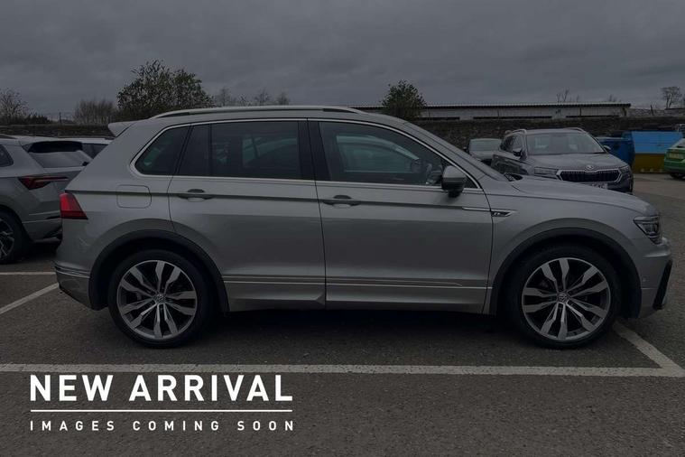 2D/3D map view, Active information display, Adaptive cruise control, App-Connect, Area view with park assist steering and front and rear parking sensors, Bluetooth phone integration system, Car information display, Distance control assist, Driver alert system with fatigue detection, Driver profile selection, Front assist, radar sensor controlled distance monitor, city emergency braking + predictive pedestrian protection, Fully electric tailgate + keyless entry and start, Instrument cluster, Lane assist, Lights on warning, Multifunction computer with visual gear change recommendation for fuel consumption, Outside temperature display, Progressive power assisted steering, Service interval indicator, Speed limiter, Start/Stop function, Warning sound and light for doors and tailgate open, Battery regeneration during braking, Diesel particulate filter, Misfuel prevention device for diesel engine, XDS electronic differential lock for improved traction and handling, 2 x USB connection + USB charging socket, 4 X 20 watt output, DAB Digital radio, SD card slot, Simultaneous pairing of 2 compatible mobile devices, SMS functionality - read, compose and send SMS messages using touch-screen display, Title and cover art display, 3D effect cherry red LED rear tail lights, Aluminium decorative inserts in dash and door panels, Auto dimming interior mirror, Automatic activation of hazard warning lights, Body colour door handles, Body colour door mirrors, Body colour rear spoiler, Body colour side skirt, Body coloured bumpers, Chrome side window surrounds, Chrome trimmed radiator grille, Coming/leaving home lighting function, Dusk sensor + auto driving lights, Electric panoramic sunroof with sunblind, Electrically heated and foldable door mirrors, door mirror puddle lights and reverse activated kerb view adjustment on passenger's door mirror, Front and rear electric windows, Heated rear window, High level 3rd brake light, LED headlights with dynamic light assist daytime running lights and cornering front fog lights, LED rear number plate lights, Piano black front air intake and rear diffuser, R Line body kit, R Line side sills, Rain sensor windscreen wipers, Rear tinted glass from B-pillar backwards approx 65% tinted, Rear windscreen washer and wiper with interval delay, Side skirts and rear bumper with chrome insert, Silver front underbody protection and rear diffuser, Silver roof rails, Trailer Stability Programme, Unique R Line badging, Windscreen wipers/ intermittent wipe + 4 position delay, 12V socket in centre console storage area, 2 cup holders in front, 3 rear headrests, 3 zone climate control, 4 load lashing points, 40:20:40 split folding rear seats, Bag hook in luggage compartment, Black headlining, Foldable front passenger seat backrest, Front + rear carpet mats, Front centre armrest with 12v socket, Front centre armrest with storage + rear 2 air vents, Front seat back storage pockets, Front seat R Line logo with rear seat backrest, Front seatback folding tables, Height/reach adjust steering wheel, Illuminated driver/passenger vanity mirrors, Illuminated scuff plates, Instrument lighting white adjustable panel illumination, Interior light with delay, Isofix Preparation 2 Rear child seats, Leather gear knob, Load through provision with 2 cupholders when folded, Lockable cooled glovebox, Luggage compartment lighting, Map pockets on front seats, Passenger seat height adjuster, Removable luggage cover, Sliding/reclining rear seats, Stainless steel pedals, Storage compartment in driver's door, Storage compartment in passenger's door, Storage compartment in rear doors, Storage compartments in luggage area left and right, Storage tray on dashboard, Sunglasses storage, Three spoke leather trimmed multifunction steering wheel with aluminium inserts and R Line Logo including paddle shift, Unique R Line door sill protectors, Variable boot floor, height adjustable and removable, Ambient lighting pack - Tiguan, R Line styling pack - Tiguan, 3 rear 3 point seatbelts, ABS+EBD+Brake assist, Active bonnet, Active pedestrian safety system, Curtain airbags, Driver/Front Passenger airbags, Driver/Passenger whiplash optimised head restraints, Drivers knee airbag, DTC - Drag torque control, Electronic parking brake with auto hold, ESC with EDL, ASR, EDTC and trailer stabilisation function, First aid kit, Front seat side impact airbags, Front side airbags, Front ventilated disc brakes and rear disc brakes, Head airbag system, Height adjustable front 3 point seatbelts + pretensioners, Hill hold control, Passenger airbag deactivate switch, Passenger knee airbag, Pre crash preventive occupant protection, Rear side airbags, Rigid safety cell with front and rear crumple zones, Two tone horn, Warning sound and light for front seat belts if unfastened, Warning triangle, Alarm with interior protection, Electronic engine immobiliser, Remote central locking with 2 remote folding keys, Chrome door trim inserts, Dark grey decorative inserts in dash and door panel, Piano black decorative inserts in centre console, 20" Suzuka alloy wheels with mobility self sealing tyres + anti theft wheel bolts, Steel space saver spare wheel,