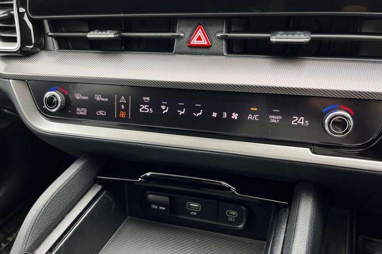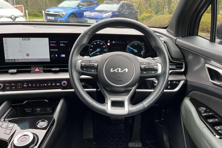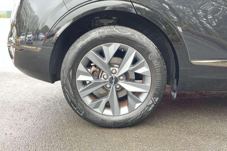 12.3" Display with navigation, 12.3" Driver display screen, Apple car play/Android Auto, Drive mode selector, Driver attention warning, E-call, Emergency stop signalling system, Forward collision avoidance assist (FCA) - city/pedestrian/cyclist/junction covering, Front and rear parking sensors, Highway Driving Assist (HDA), Intelligent speed limit assist, Kia Connect (UVO), Lane Following Assist (LFA), Lane keep assist, Low washer fluid warning, Motor driven power steering, Rear view monitor, Reversing camera system integrated into centre fascia screen, Smart cruise control with stop and go functionality, Smart power tailgate, Speed limiter, Trip computer, Windscreen washer level indicator, 1x USB-C port in front, 2 rear USB-C ports, 6 speaker audio system, Bluetooth audio streaming, DAB Radio with MP3, Steering wheel mounted audio controls, USB port for connection of a media device, All round electric windows with drivers and front passenger auto up/down function, Auto dimming rear view mirror, Automatic headlight control system, Automatic window defogger, Black bumpers with dark chrome accents, Black radiator grille with dark chrome surround, Electrically adjustable/heated/folding door mirrors with LED indicators, Gloss black door mirrors, Gloss black wheel arches, Gloss black window surround, Glossy black roof rack, Heated rear window, Interior electrochromic mirror, LED daytime running lights, LED front fog lamps, LED headlamps (low and high beam - MFR type), LED High mounted stop light, LED rear combination lamp, Premium paint, Rain sensing wipers with aero blades, Rear fog lamp, Rear privacy glass, Rear roof spoiler, Rear side wing doors, Rear skid plate - Dark chrome, Rear wiper, Trailer stability assist, 12V power socket in front centre fascia and luggage compartment, 3 seat bench in 2nd row, 3 x passenger assist grips, 40/20/40 split folding rear seat, All-round height adjustable headrests, Artificial leather/suede upholstery, Automatic air conditioning, Black headlining, Centre console storage box, Cupholders in rear armrest, Door courtesy lamps, Drink holder at centre armrest, Driver and front passenger side sunvisors with illuminated vanity mirrors, Drivers seat power lumbar support, Electric adjustable front seats, Front and rear door storage, Front cabin, rear & luggage compartment lights, Front seat and rear pockets, Gear shift indicator, Glovebox illumination, Heated front and outer rear seats, Heated steering wheel, Interior door lock/unlock function, ISOFIX Child seat top tethers and anchor fixings outer rear seats, Leather steering wheel, Luggage area load cover, Luggage area parcel shelf, Luggage board, Luggage compartment under floor storage, Luggage net with hooks, Manual adjust steering wheel, Overhead console lamp, Paddle shift controls, Rear air conditioning, Single front passenger seat, Ventilation ducts to rear compartment, All round 3-point seatbelts, Anti-lock braking system (ABS), Dual front side airbags, Dual horn, Dynamic brake control, Electronic parking brake with auto hold function, Electronic stability control with downhill brake control, Emergency brake light signal (EBS), Front passenger airbag cut-off switch, Front seatbelt pretensioners + load limiters, Height adjustable front seatbelts, Hill start assist control (HAC), Impact sensing auto door unlocking, Multi collision brake assist, Rear airbags, Rear door child safety locks, Rear seat alert system, Seatbelt reminder warning, Traction control, Twin curtain airbags, Twin front airbags, Tyre pressure monitoring system, Vehicle stability management, Door deadlocks, Engine Start/Stop Button with Smart Entry System, Locking wheel nuts, Smart key with motion sensor, Speed sensitive auto door locking, Thatcham category 2 security alarm and immobiliser, Visible vehicle identification number, 18" Alloy wheels, Tyre mobility kit,