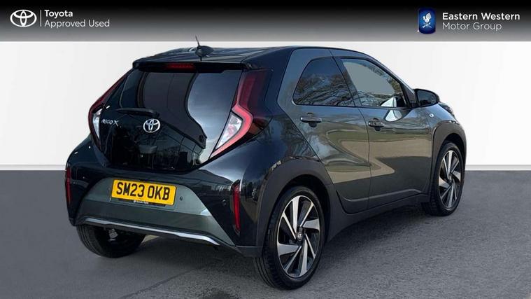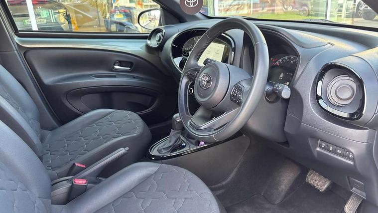 4.2" TFT colour screen, Adjustable speed limiter, Analogue speedometer, Bluetooth connectivity, Digital tachograph, Driver attention alert system, eCall emergency call system, ECO-driving indicator, Electric power steering, Front and rear parking sensors with auto brake, Intersection turn assist, Key reminder warning, Noise reduction kit, Pre collision system with emergency steering assist, Remote boot door release on key, Reversing camera with static guide lines, Smart entry and push button start, Speed limit display, Start and stop, Wireless charger, Wireless Smartphone Integration includes Apple CarPlay and Android auto, Vehicle Stability Control (VSC), 4 speakers, 9" HD multimedia display touch screen with Toyota smart connect, DAB digital audio broadcast, USB connector, Auto headlights, Auto wipers, Automatic headlights cut-off, Automatic high beam On/Off switch, Bicycle towing hook, Black fog light surrounds, Black side protection mouldings, Black wheel arch mouldings, Body colour door handles, Body coloured front bumper, Boot door scuff plate, Eclipse black rear bumper, Electric heated door mirrors, Follow me home headlights, Front and rear underruns in silver, Front fog lights, Front power windows, Gloss black door mirrors, Gloss black upper front grille, Headlight cut-off reminder, LED daytime running lights guide, LED front light guide, LED High mounted stop lamp, LED projector headlights, Manual day/night rear view mirror, Manual headlight levelling, Pagoda roof, Power adjustable door mirrors, Power back door, Privacy glass, Rain sensor, Rear combination lights LED bulb type, Rear side wing doors, Rear windscreen defogger, Rear windscreen wiper, Remote hazard lights system, Short antenna, Variable intermittent windscreen wipers, 12v power outlet - front, 2 seat bench in 2nd row, 3 spoke leather steering wheel, 50/50 split folding rear seat, Adhesive roof headlining, Adjustable speed limiter switch on steering wheel, Audio and telephone switches on steering wheel, Auto air conditioning, Black roof lining, Body colour satin anodised insert on steering wheel, Boot light, Centre room light, Chrome interior door handles, Chrome surround on air conditioning buttons, Clean air filter, Console box storage, Floor mats, Front and rear cup holders, Front head rest deco art, Front head restraints, Gear shift indicator, Height adjustable driver seat, Intelligent adaptive cruise control switch on steering wheel, ISOFIX child restraint system on rear seats, Lane departure alert switch on steering wheel, Leather gearshift knob, Light blue ambient lighting in centre console, Manual tilt steering wheel, Manually reclining and sliding driver seat, Manually reclining and sliding front passenger seat, Multimedia switches on steering wheel, Paddle shift levers on steering wheel, Partial synthetic leather upholstery, Pollen filter, Rear door pockets, Rear head restraints, Remote air-conditioning system, Satin silver insert on gear shift knob, Single compartment glovebox with lights, Single front passenger seat, Soft tonneau cover, Sun visors with mirror on driver and passenger side, Voice recognition switch on steering wheel, Toyota safety sense pack - Aygo X, Anti lock braking system + Electronic brake force distribution, Child safety door lock, Emergency brake light signal (EBS), Hill start assist control (HAC), Passenger airbag on/off switch, Seat belt reminder for front and rear seats, Supplement restraints system (SRS) - 6 airbags, Traction control, Tyre pressure warning system, Immobiliser, Remote power door locks, Black wheel centre caps, Tyre repair kit,