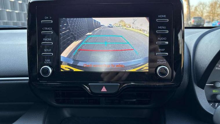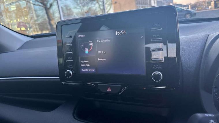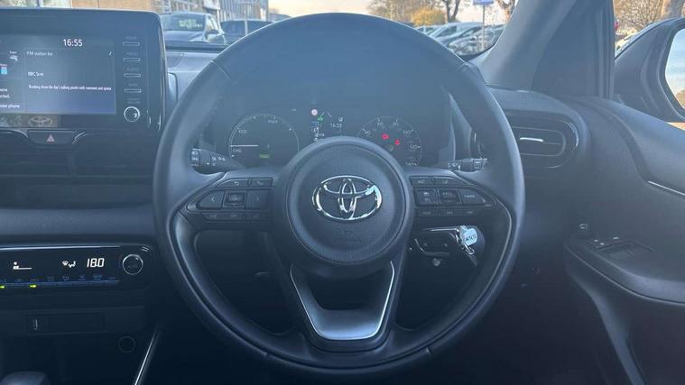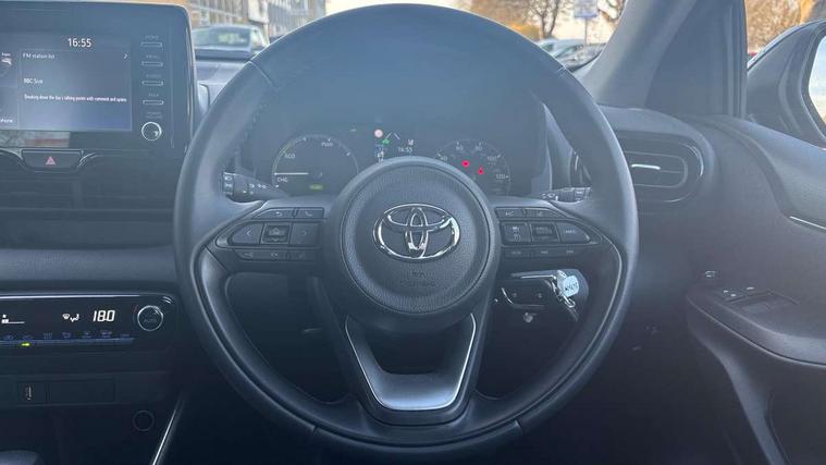 4.2" coloured TFT multi information display with analogue speedometer, Adaptive cruise control, Adjustable speed limit with speed warning, Bluetooth connectivity, E-call, Electric power steering, Hybrid energy display, Multi information display switches on steering wheel, Reversing camera, Smartphone integration with Apple CarPlay and Android auto, Tailgate, Voice recognition, Vehicle Stability Control (VSC), 4 speakers, 7" Multimedia display touch screen, Toyota Touch 2 with DAB, USB connection, Acoustic windscreen glass, Auto windscreen wipers, Automatic headlights, Body coloured door mirrors, Bulb indicators, Chequered front grille, Daytime running lights, Electric adjustable heated door mirrors, Follow me home headlights, Front auto power windows with anti jam protection, Halogen projector headlights, LED High mounted stop lamp, Manual headlight levelling, Rain sensor, Rear side wing doors, Rear spoiler, Rear wiper, Shark fin antenna, Turning signal integrated indicators in door mirrors, Variable front intermittent wipers, 3 adjustable rear headrests, 3 seat bench in 2nd row, 3 spoke leather steering wheel, 60/40 split folding rear seat, Active headrests, Adjustable boot height, Auto air conditioning, Coat hooks in rear grab handles, Cup holders (2 front & door), Data Communication Module (DCM) connected services, Fabric upholstery, Front armrest, Glovebox, Grey roof lining, Height adjustable driver's seat, Isofix seat fixing, Leather gearshift, Pollen filter, Shopping bag hooks, Single front passenger seat, Tilt/telescopic steering column, 3 point seatbelts on all rear seats, ABS+EBD+Brake assist, Electronic parking brake, Emergency brake light system (EBS), Front passenger airbag on/off switch, Front seatbelt reminder, Hill start assist control (HAC), Rear child proof door locks, Rear seat belt reminder, Supplemental Restraint System (SRS) 8 airbags: Driver & passenger's airbags, dual side curtain airbags, side impact airbags, front centre airbag, Toyota Safety Sense 2, Precollison + Night time Pedestrian & Cyclist Detection, Lane Trace Assist, Auto High Beam, Intelligent ACC & Road Sign Assist, Tyre pressure warning system, 2x Master key, Alarm/immobiliser, Remote powered central double locking doors, Soft touch instrument panel, Space saver spare wheel,