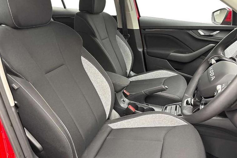 Advanced driver attention and drowsiness monitor, Bluetooth, e-Call (emergency call), Front assist system, PAS, Rear parking sensors, Rear view camera, Speed limiter, Tailgate, Traffic sign recognition, Virtual Cockpit - 10.25" digital display, Voice control system, Wireless smartlink, 4 USB C ports, 8 Speakers, 9.2" Skoda navigation display, DAB radio, Auto dimming rear view mirror, Automatic headlamp activation with Coming home and Leaving home feature, Automatic high/low beam, Body colour bumpers, Body colour door mirrors and handles, Chrome moulding around grille, Front and rear electric windows, Full LED headlights, Heated rear window, LED 3rd brake light, LED brake lights, LED daytime running lights, LED front turning lights, LED high beam, LED low beam, LED taillights, Rear LED fog light, Rear side wing doors, Rear wiper, Tinted windows, Unique dark chrome design logo on alloy wheels, 12V socket in luggage compartment, 3 seat bench in 2nd row, Black / Grey armrest stitching, Black hotstamping, Cargo elements, Chrome inner door handles, Door inserts in satin black, Driver and passenger sun visors with vanity mirror, Dual zone climate control, Front and rear roof lights, Front centre armrest, Front head restraints, Glasses storage in roof liner, Height adjustable driver seat, Height adjustable passenger seat, Ice scraper, Illuminated glove compartment, Inner circulation control with pollen filter, ISOFIX for front passenger seat, Isofix preparation for back seats, Leather gearknob and handbrake lever, Loft cloth upholstery, Luggage net under rear parcel shelf, Manual lumbar support for front seats, Net package and top tether hooks in boot space, Pearl grey ceiling, Pocket on the back of both front seats, incl. mobile phone pockets, Single front passenger seat, Skoda lettering on steering wheel, Textile floor mats, Third rear headrest, Ticket holder, Top tether for front passenger seat, Umbrella in driver's door, 3x3 point rear seatbelts, ABS, Child locks, Curtain airbags and front side airbags, Disc brakes, Driver and front passenger airbags, ESP, Hill hold control, Manual leather parking brake, One tone horn, Passenger airbag switch off function, Seatbelt reminder for driver and front passenger, Tyre pressure monitoring system, Anti theft alarm system with interior monitoring, backup horn and towing protection, Anti-theft wheel bolts, Remote central locking with 2 remote folding keys, SAFE function for remote central locking, Decord pad, door inserts Kota uni,