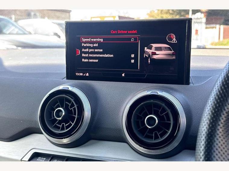 Audi connect navigation and infotainment includes innovative services, Audi connect remote and control connects your vehicle to your smartphone, Audi drive select - Power steering assistance + engine + gearshift, Audi drive select with efficiency, Audi smartphone interface, Audi virtual cockpit, Automatic start/stop system with recuperation, Bluetooth interface includes bluetooth audio streaming, Cruise control, E-call, MMI navigation plus with MMI touch, Power operated tailgate, Progressive steering, Rear parking sensors, 2 x SDXC card reader, 6 passive loudspeakers, DAB Digital radio, Auto dimming rear view mirror, Black window trims, Bumper in full body colour paint finish, Electrically adjustable, folding, auto dimming and heated door mirrors with integrated LED side indicators, Front windscreen with grey tinted sunband, LED daytime running lights, LED headlights with LED rear lights, LED third brake light, Privacy glass - dark tinted rear and rear side windows from B-pillar backwards, Rear side wing doors, Rear wiper, Variable front intermittent wipers, Wheel arch trims in manhattan grey, 12V socket in front, 3 seat bench in 2nd row, 3 spoke flat bottomed multi-function leather sport steering wheel with gear shift paddles, 4-way electric lumbar support for front seats including seat height adjustment for both front seat, 60/40 split folding rear seat bench, Black cloth headlining, Front and rear head restraints, Front centre armrest, Front/rear floor mats, Height/reach adjust steering wheel, Illuminated door sill trims with S logo, ISOFIX child seat mounting in front passenger and rear outer seats, Manual air conditioning, Single front passenger seat, Stainless steel pedals, Black styling pack - Q2, 3x3 point rear seatbelts, 6 airbags - Front, curtain and front side airbags, Electromechanical parking brake, Electronic stabilisation control including ABS, ASR and EDL, Front passenger airbag deactivation, Hill hold assist, Pre-sense front with pedestrian recognition, Seatbelt monitoring, Tyre pressure warning light, Warning triangle and first aid kit, Anti theft alarm, Anti theft wheel bolts, Electronically operated child locks, Remote central door locking, Aluminium interior element, Matt brushed aluminium trim inlays, Tool kit,