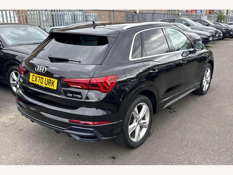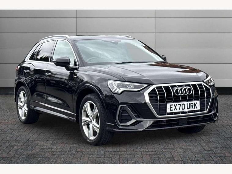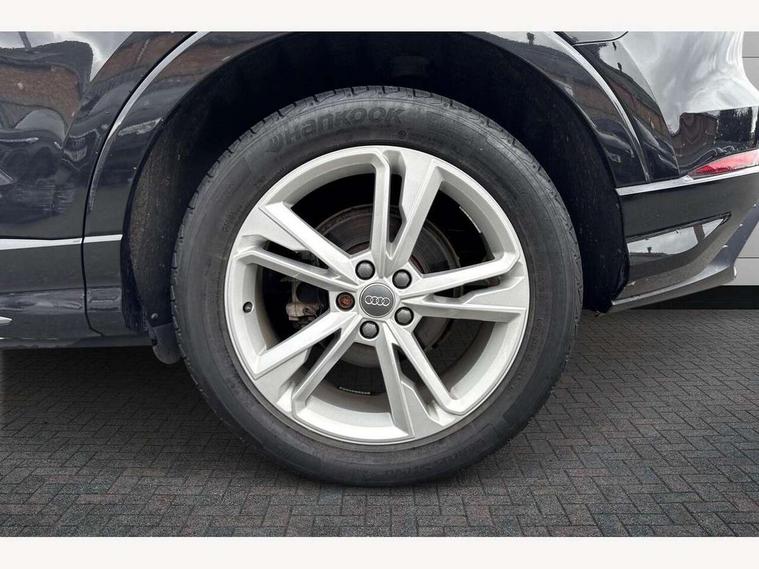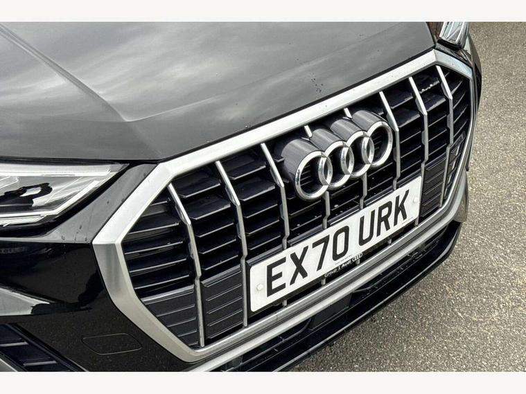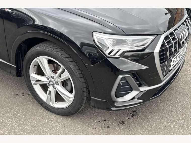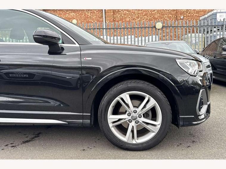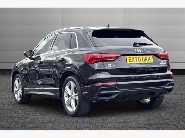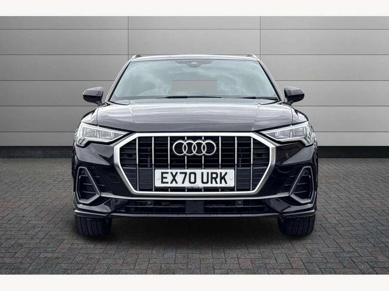 Audi connect safety and service (e-call), Audi drive select, Audi lane departure warning, Audi side assist, Audi smartphone interface includes wireless Apple carplay/Android Auto, Audi Virtual Cockpit - 10.25" display, Bluetooth interface, Camera based traffic sign recognition, MMI Navigation Plus with high resolution 10.1 inch touchscreen colour display, Power operated tailgate, Progressive steering, Service interval indicator, Start stop system with recuperation, Voice control system with natural language interaction, 48V Mild hybrid technology, Sports suspension, 1 x USB type C and 1 USB type A charging points, 6 passive loudspeakers, DAB digital radio module, Acoustic windscreen, Aluminium roof rails, Aluminium window trim, Auto dimming frameless rear view mirror, Body coloured bumpers, Electrically folding, adjustable and heated door mirrors with integrated LED side indicators and kerb view function for passenger side, Front and rear electric windows, Front fog lights, Front side air inlets in matt platinum grey, Front spoiler blade in matt platinum grey, Grille vertical bars in aluminium silver/Matt, High gloss black finish B and C pillars, LED headlights with LED daytime running lights and dynamic rear indicator, LED rear lights, Privacy glass dark tinted rear and rear-side windows (from B-pillar backwards), Rain and light sensors, Rear diffuser strip in matt titanium black, S line badges on front wings, S Line front and rear bumpers, Side skirt insert in matt Platinium grey, Silver chrome grille surround, Titanium black radiator grille, 12V socket in rear centre console, 40:20:40 folding with manual adjustment for 60:40 forwards/backwards position and backrest angle, Adjustable rear seat bench/backrest with centre armrest and cupholder, Black cloth headlining, Dual zone electronic climate control, Front and rear black floor mats with contrast stitching in rock grey, Front and rear headrests, Front and rear roof module including reading lights, Front centre armrest, Glove compartment lighting, Height and reach adjustable steering wheel, Illuminated door sill trims with S logo, ISOFIX child seat mounting for front passenger with airbag deactivation and outer rear seat including top tether attachment point for outer rear seats, Luggage compartment light, Manual front seats with height adjustment, Perforated leather gearknob, Stainless steel luggage compartment sill finisher, Stainless steel pedals, Tool kit, Non smoking pack - Q3, 3x3 point rear seatbelts, 6 airbags - Driver, front passenger, curtain and side windows, Electrically operated child locks on rear doors, Electromechanical parking brake, Electronic stabilisation control including ABS, ASR and EDL, Hill descent control, Hill hold assist, Pre sense basic, Seatbelt monitoring, Tyre pressure warning, Warning triangle and first aid kit, Anti theft alarm, Anti theft wheel bolts, Audi pre-sense front with pedestrain and cyclist recognition, Remote central locking, Dark matt brushed aluminium inlay, Leatherette door armrest, MMI touch colour display in glass look, black with surround in aluminium look, Tyre repair kit,