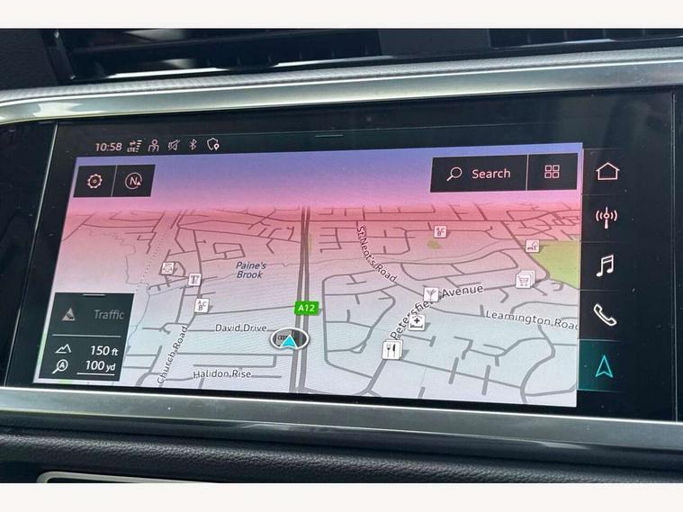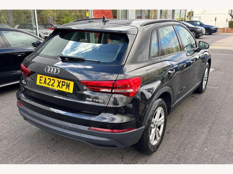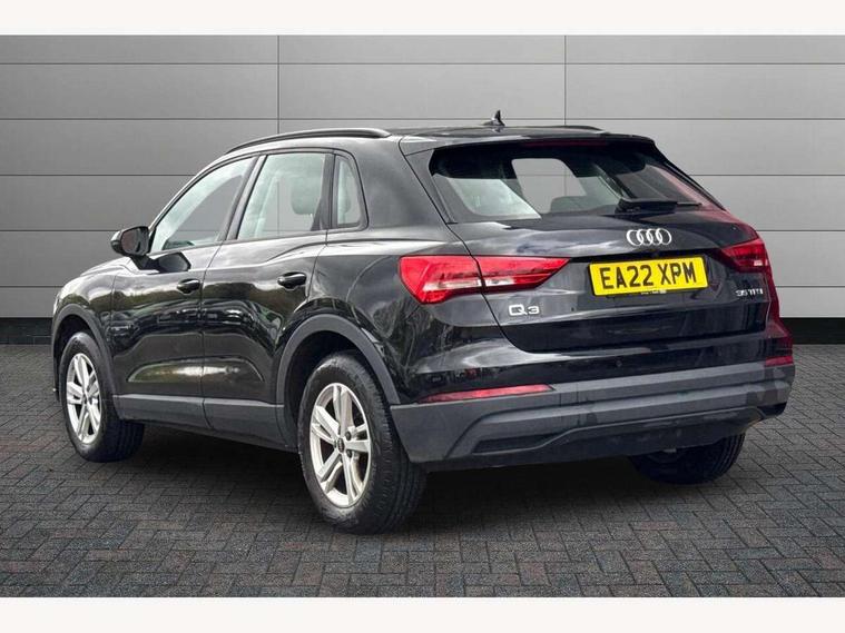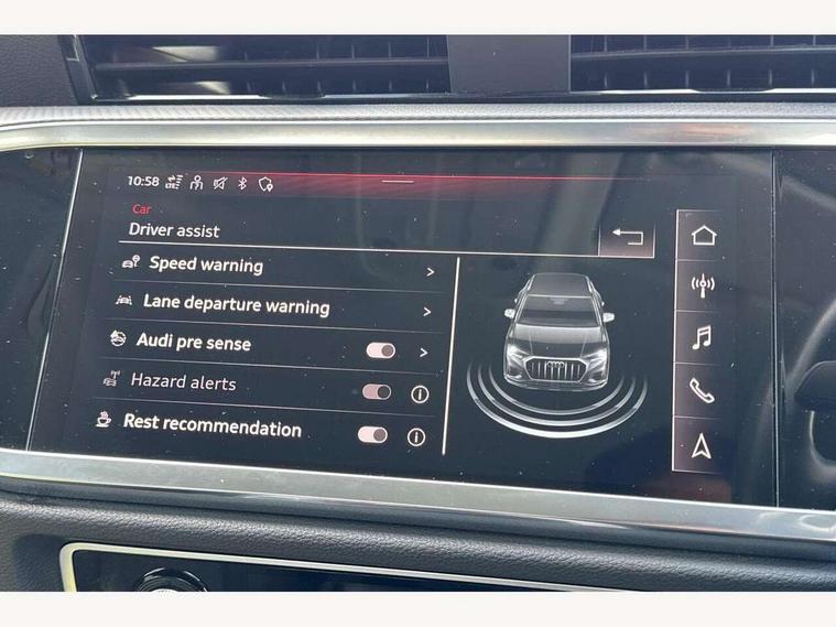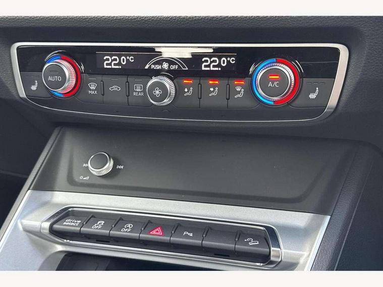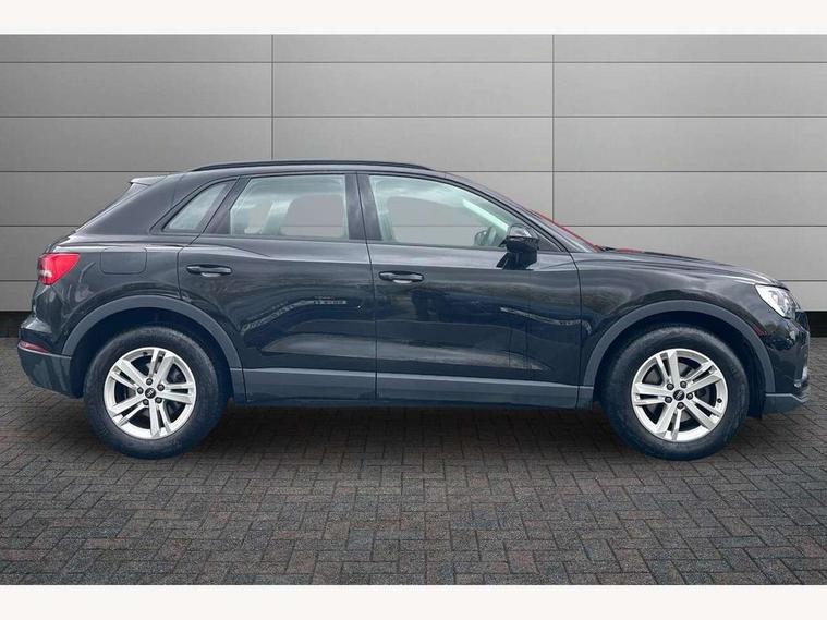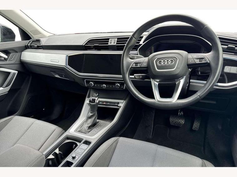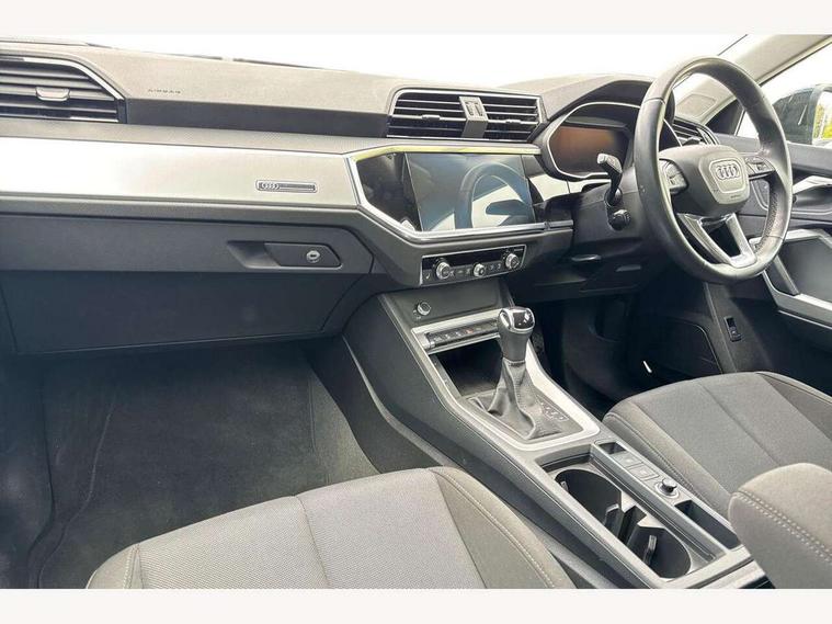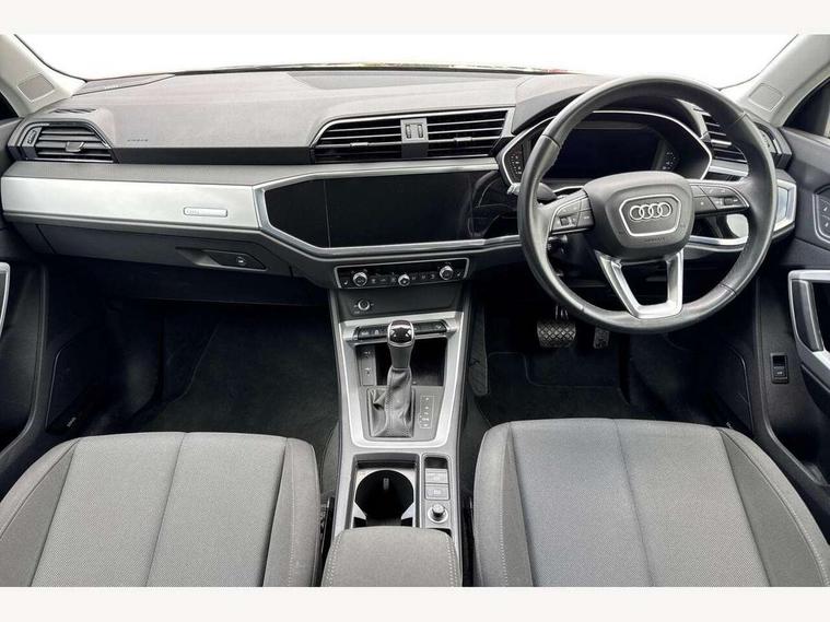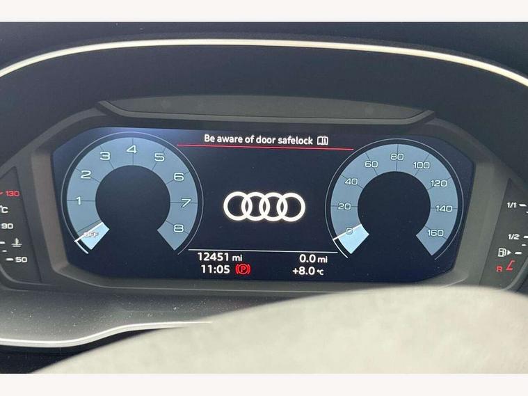 Amazon alexa Integration, Audi connect safety and service (e-call), Audi drive select, Audi lane departure warning, Audi Virtual Cockpit - 10.25" display, Bluetooth interface, Camera based traffic sign recognition, MMI Navigation Plus with high resolution 10.1 inch touchscreen colour display, Power operated tailgate, Progressive steering, Service interval indicator, Smartphone interface includes wireless Apple carplay/Android Auto, Start stop system with recuperation, Voice control system with natural language interaction, 48V Mild hybrid technology, Standard suspension, 2 USB-C ports with charge and data functions, 6 passive loudspeakers, DAB digital radio module, Acoustic windscreen, Auto dimming frameless rear view mirror, Black roof rails, Body colour door mirrors, Diffuser in grained anthracite, Electrically folding, adjustable and heated door mirrors with integrated LED side indicators and kerb view function for passenger side, Exterior bumper with wheel arch trims and side sill trims in grained black matt, Front and rear electric windows, Grained radiator protective grille, Halogen rear lights, LED headlights with LED daytime running lights, Rain and light sensors, Rear side wing doors, Rear wiper, Third brake light, Variable front intermittent wipers, 12V socket in rear centre console, 3 seat bench in 2nd row, 3 spoke multi-function leather steering wheel, 40:20:40 folding with manual adjustment for 60:40 forwards/backwards position and backrest angle, Dual zone electronic climate control, Front and rear floor mats, Front and rear headrests, Front and rear roof module including reading lights, Front centre armrest, Glove compartment lighting, Height and reach adjustable steering wheel, ISOFIX child seat mounting for front passenger with airbag deactivation and outer rear seat including top tether attachment point for outer rear seats, Luggage compartment light, Lunar silver cloth headlining, Manual front seats with height adjustment, Single front passenger seat, Stainless steel luggage compartment sill finisher, Non smoking pack - Q3, 3x3 point rear seatbelts, 6 airbags - Driver, front passenger, curtain and side windows, Audi pre-sense front with pedestrain and cyclist recognition, Electromechanical parking brake, Electronic stabilisation control including ABS, ASR and EDL, Front seatbelt reminder, Hill descent control, Hill hold assist, Manual child lock in rear doors, Pre sense basic, Seatbelt monitoring, Tyre pressure warning, Warning triangle and first aid kit, Anti theft alarm, Anti theft wheel bolts, Immobiliser, Remote central locking, Detail dashboard around MMI touch colour display in glass look, black with surround in aluminium look, Micrometallic silver inlay, 17" 5 twin spoke design alloy wheels, Tool kit, Tyre repair kit,