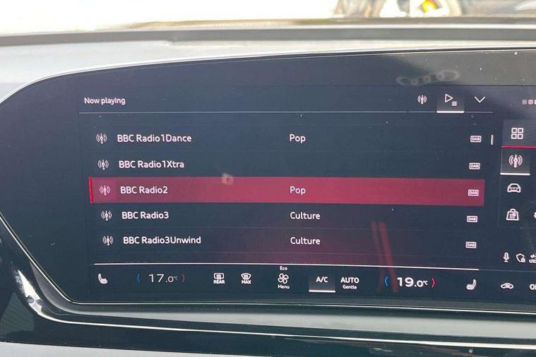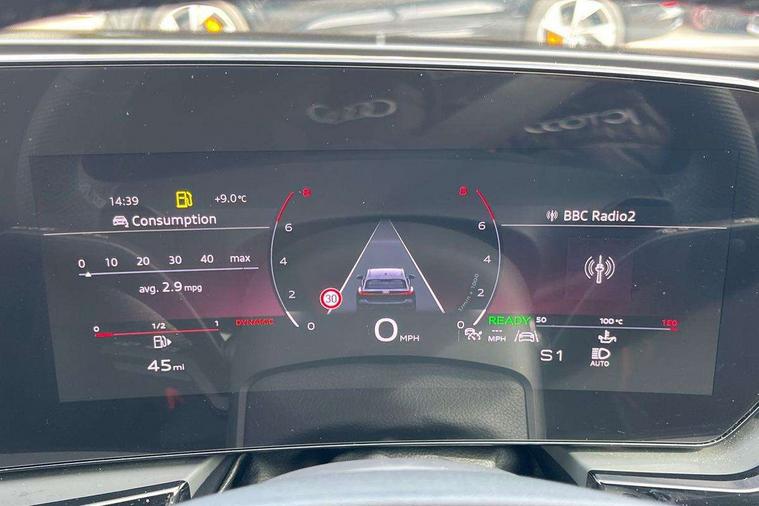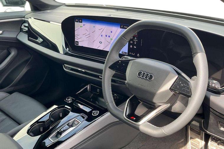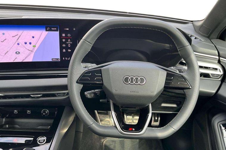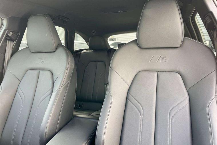 Adaptive cruise control, Advanced driver attention and fatigue montior, Audi application store, Audi assistant, Audi connect emergency call and service, Audi drive select, Audi virtual cockpit plus with 11.9" OLED colour display, Automatic start/stop system with coasting functionality, Camera based traffic sign recognition, Intersection assist, Lane departure warning, MMI navigation plus with high resolution 14.5" OLED touchscreen colour display, Park assist plus, Parking system plus with 360 display, Progressive steering with servotronic, Rear view camera, Smartphone interface, Swerve assist and turn assist, Traffic sign based speed limiter, Sports suspension lowered by 20mm, 2 USB-C ports in both the front and rear, Audi sound system impressive sound with 8 loudspeakers including centre speaker and subwoofer, 6-channel amplifier with a total output of 180 watts, DAB digital radio reception, Smartphone compartment with wireless charging, Aluminium roof rails, Aluminium window trims, Auto dimming rear view mirror, Body colour door mirrors, Door mirrors - electrically adjustable, heated, folding and auto dimming on both sides, Front and rear electric windows, Front door sill trims with aluminium inlays, illuminated with 'S' logo, High beam assist, LED headlights Plus incl. digital daytime running lights, turning light, all-weather light, motorway light, manouevring light and intersection light, LED rear lights pro incl. dynamic rear indicators and illuminated light strip with animated coming and leaving home function, LED third brake light, Privacy glass, Rear and side windows with heat insulating glass, Rear side wing doors, Rear wash/wipe, S Line badges on the front wings, S line bumpers, radiator grille and diffuser in phantom black and diffuser insert in matt anthracite, White rhombus logo projection light in exterior mirrors, Windscreen with acoustic glazing, 3 rear headrests, 3 seat rear bench, 3 spoke leather steering wheel with multi-function buttons with touch control, flattened on top and bottom, with S badging and contrast stitching, 3-zone automatic climate control, 40:20:40 split folding rear seat bench with centre armrest and cup holders, Comfort front centre armrest, Front and rear floor mats, Front seats with manual adjustment for position and 4-way electric lumbar support, Front sport seats with integrated headrest and S embossed logo, Headlining in black cloth, Heated front seats, i-Size child seat mounting on the front passenger side and outer rear seats, i-Size and top tether on the outer rear seats, Luggage compartment lid, electrically opening and closing, Manual steering column height and depth adjustment, Single front passenger seat, Stainless steel pedals and footrest, Steering wheel grips in perforated leather and shift paddles, Ambient lighting package plus - A5, 3x3 point rear seat belts, Driver airbag, Electric child safety locks, First aid kit with warning triangle and vests, Front emergency brake assist, Front passenger airbag, Front passenger airbag deactivation, Front side airbags with head airbag system and front interaction airbag, Hill hold assist, Seat belt monitoring with rear seat occupant reminder, Tyre pressure loss indicator, Anti theft alarm, Anti-theft wheel bolts, Keyless Go, Accent surfaces and control buttons in gloss black, Black dashboard with contrast stitching, Inlays in matt brushed aluminium with linear embossing, anthracite, Softwrap in leatherette with contrast stitching, Upper and lower interior elements in leatherette, Tyre repair kit,