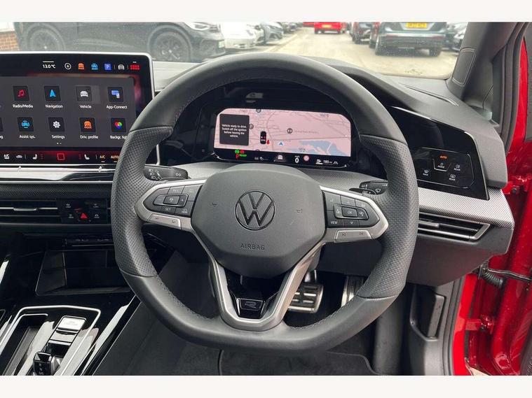 Activated carbon canister, Adaptive cruise control (ACC), Advanced driver attention and drowsiness monitor, Dynamic road sign display, Dynamic steering, E-Sim card for online connectivity, eCall emergency call system, Multi-color Digital cockpit pro, selection of different info profile possible, Multifunction front facing camera for distance control, Navigation system, Oncoming vehicle braking when turning including swerve support, Speed limiter, Speedo, rev counter, electronic odometer, trip, service interval display, exterior temperature and fuel gauge, Traffic jam assist, Voice enhancer and voice control, Warning signal and warning light for front and rear seatbelts not fastened, We connect plus preparation, We connect preparation, Wireless app connect, Hybrid propulsion system, Petrol Particulate Filter, Start-stop system with battery regeneration (recuperation - energy recovery during braking), XDS electronic differential lock for improved traction and handling, 2 USB C ports in front, 2 USB charging sockets on the centre console in the rear charging capacity upto 45W, Digital radio reception (DAB), Diversity antenna for FM reception, Gaming platform via car app, Infotainment system with 12.9" display, Mobile phone interface with inductive charging feature, 3rd brake light, Automatic headlamp activation with Coming home and Leaving home feature, Body colored bumpers in R-Line style, Body colour door handles, Exterior mirrors convex on the left and aspherical on the right, Front and rear electric windows, Heat insulating windshield made of laminated glass, LED separate daytime running light, Rear exhaust tailpipe, Rear fog light on one side and reversing lights on both sides, Rear side wing doors, Rear windscreen washer and wiper with interval delay, Remote electrically foldable door mirrors, puddle lights and reverse activated passenger's door mirror, Welcome light with surround lighting, 12V socket in front centre console, 12V socket in luggage compartment, 3 rear head restraints, 3 seat bench in 2nd row, Ambient lighting with 30 colour including LED light unit in front footwell with selectable light colour, Black roof lining, Brushed stainless steel pedals, Chrome plated radiator grille inserts, air vent surrounds and light switch surrounds, Door insert, side trim panel and arm support in leatherette, Front + rear black carpet mats, Front centre armrest, Front seat lumbar support adjuster, Integrated front head restraints, ISOFIX anchors for child seats on outer rear bench seats and on front passanger seat compatible for i-Size, Luggage compartment lighting, Manual height adjustable front passenger seat, Manually height adjustable driver seat, Plastic gear knob, Premium sports seats in front, Rear cupholder and loadthough, Sardegna cloth upholstery with front and outer rear seats Art Velour inner sides of bolsters, Single front passenger seat, Split folding backrest with centre armrest and unsplit rear seat bench, Sun visors with illuminated vanity mirrors, Titanium black instrument panel, 3 point height adj front seatbelts + pretensioners, 3 rear three point seatbelts, ABS, Autonomous emergency braking front assist with pedestrian and cyclist monitoring, Child locks on rear doors, Driver and front passenger airbag with front passenger airbag deactivation, Electronic parking brake with auto hold, ESC (Electronic Stability Control), Extended pedestrian protection measures, Hill start assist, Rear disc brakes, Two tone horn, Tyre pressure loss indicator, Volkswagen roadside assistance, Anti theft wheel bolts, Preparation for alcohol interlock, Decorative inserts carbon grey for dashboard and front door trim panels, Tool kit for tyre mobility set, Tyre mobility kit Includes 12V compressor and tyre sealant,