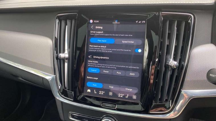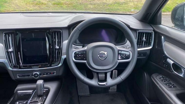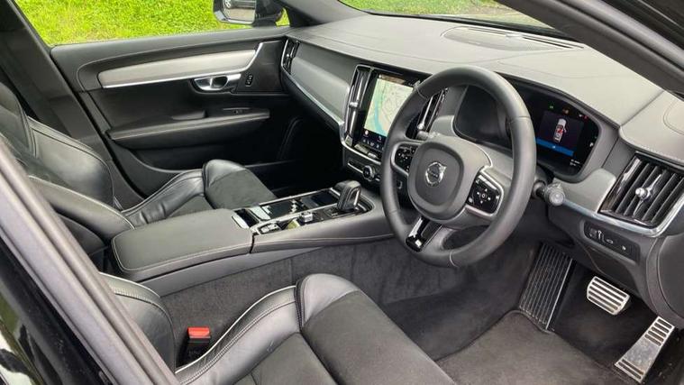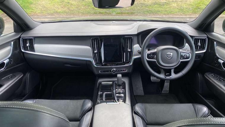 12.3" Progressive Driver Display, 9" centre console touch screen, Adjustable steering wheel force, Bluetooth Handsfree Phone Connection, Drive mode settings, E-call, Google automotive services - Enabled entertainment apps, navigation with google maps, voice recognition with google assistant, Handsfree bootlid opening/closing, Lane keep assist with driver alert control, Oncoming Lane Mitigation, Power operated tailgate, Speed limiter, Speed sensitive steering, Volvo on call, 7m 10amp charge cable with 3 pin plug and 7m 1 phase 16amp type 2/mode 3 charge cable, 8 speed automatic transmission with start/stop + manual change functions, Electric rear axle drive, Lithium-ion battery, Recharging port located in nearside front wing, DAB Radio (Digital Audio Broadcasting), Steering wheel remote infotainment controls, Adaptive brake lights with high level LED brake lights, Auto dimming interior + exterior mirrors, Automatic headlamp levelling, Automatic LED Headlights + Active high beam incorporating daytime running lights, Colour coordinated auto folding and heated power door mirrors, Dark tinted windows for rear side windows and cargo area, Front and rear power windows, High gloss black door mirrors and window surround, High gloss black lower front bumper, High gloss black mesh front grille with silk metal surround, High gloss black rear bumper deco, Home safe and approach lighting, Integrated roof rails in high gloss black, Laminated rear and side windows, Puddle lights in exterior door handles, Rain sensor with automatic windscreen wiper activation, Rear LED lights with sequential indicators, Rear side wing doors, Rear wiper, Roof antenna, Roof spoiler, Visible VIN plate, 2 zone electronic climate control with Clean zone air quality system + pollen filter, 3 seat bench in 2nd row, 3 spoke leather steering wheel with chrome trim, A-pillar parking ticket holder, Ambient door and instrument panel lighting, B Pillar ventilation, Bright metal luggage threshold, Cargo divider with grocery bag holder, Center Console Cupholders and Storage, Charcoal headlining, Driver's side lower dashboard storage compartment, Extended front seat cushions, Front 12V socket tunnel console and cargo area, Front centre armrest storage illumination, Front footwell and side step illumination, Front head restraints, Front/rear door pockets and front cupholder illumination, Front/rear reading lights, Heated front seats, Height/reach adjustable steering column, Illuminated glovebox, Illuminated luggage compartment, Illuminated tailgate, Illuminated vanity mirrors + ticket holder, Integrated sun curtains in rear doors, Isofix system on outer rear seats, Load cover, Load protection net, Off-black finish in steering wheel, Power driver seat with memory for seat and exterior mirrors, Power Folding Rear Seat Backrests and Headrests, Rear armrest with storage + cupholders, Rear footwell and side step illumination, Recharge aluminium tread plates, Single passenger seat, Ski hatch, Sport pedals, Sports floor mats, Sports leather gear knob, Sports tailored steering wheel, Underfloor cargo storage, Versatile split folding rear seat - 60/40, Driver assist pack - V90, 3x3 point rear seatbelts, Active bonnet, City safety with steering support with Pedestrian + cyclist + front collision warning with full auto brake and rear auto brake, Drivers knee airbag, Dual stage driver/passenger airbags, Front seats SIPS airbags, Hill start assist, IC (Inflatable Curtains) - Full Length, Passenger airbag cut-off device, Power parking brake with auto hold function, Road sign information display, Run off Road Mitigation, Run off Road Protection, Seatbelt reminder and pretensioners for all seats, SIPS (Side Impact Protection System), Slippery road and hazard light alert, Stability and Traction Control with Spin control, Engine Drag Control and Corner Traction Control, Tyre pressure monitoring system, Vehicle deceleration control with Anti-lock Brake System, Electronic Brake Distribution and Emergency Brake Assist, Warning triangle and first aid kit, WHIPS whiplash protection system - front, Anti-theft alarm including immobiliser/volume sensor + level sensor, Care key with user defined top speed, Key integrated remote control central locking + fuel flap with deadlocking system and auto open/close power windows, Keyless drive with Keyless entry and start, Locking wheel nuts, Private locking for tailgate, Metal mesh inlays, Tailored Instrument Panel and Door Tops with Contrast Stitching, Tyre sealant kit and compressor,