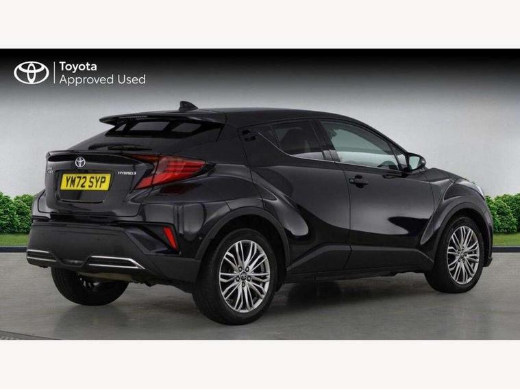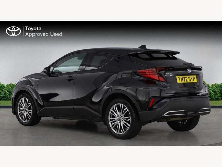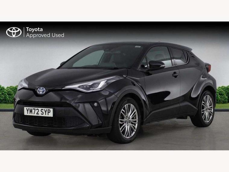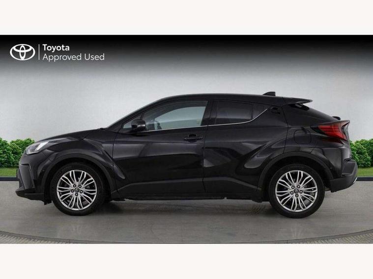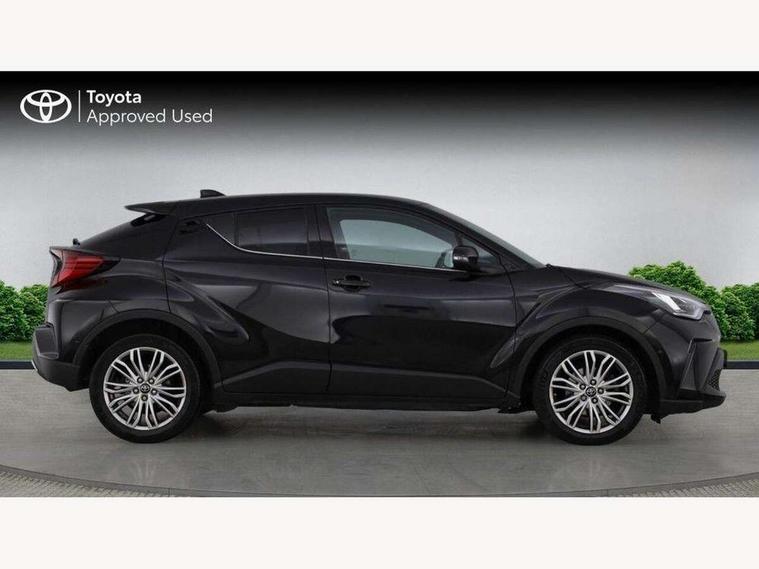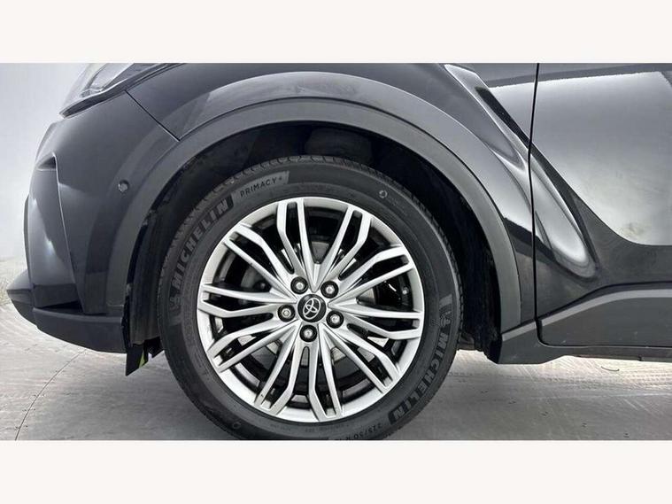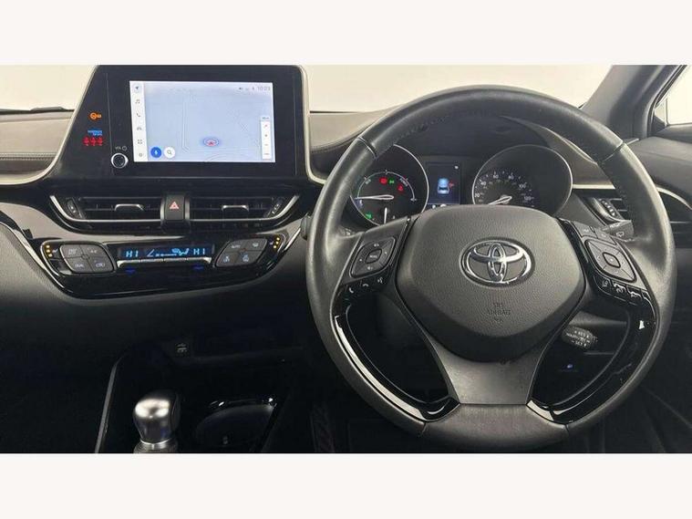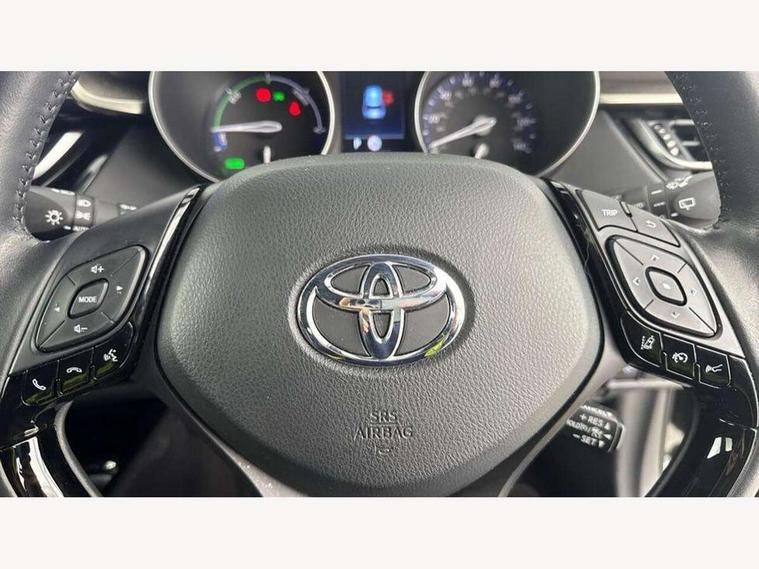 4.2" coloured TFT screen for multi-information display, Adaptive cruise control, Apple car play and Android auto, Bluetooth connectivity, E-call, Electric power steering, Hybrid system indicator, Lane departure alert with steering control, Lane trace assist, Push button tailgate release, Remote boot door release in cabin, Remote boot door release in key, Reversing camera, Road sign assist - RSA, Simple Intelligent parking assist, Smart voice assist, Touch 2 Go navigation system, Trip computer, Voice recognition, Wireless smartphone integration, Vehicle Stability Control (VSC), 6 speakers, AM/FM radio, DAB Radio (Digital Audio Broadcasting), Toyota touch 2 multimedia system with 8" display, USB connector, Wi-fi connectivity, Adaptive front light system, Adaptive LED Headlights, Anti-jam protection on power windows, Auto high beam, Auto up and down function on all power windows, Automatic headlight levelling, Automatic headlights, Automatic headlights cut-off, Black and body coloured rear bumper, Black lower front grille, Black upper front grille, Body colour door handles, Body colour door mirrors, Body colour front spoiler lip, Body coloured front bumper, Boot door release with push button, Electric heated door mirrors, Follow me home headlights, Front and rear power windows, Headlight cut off reminder, Honeycomb lower front grille, LED daytime running lights, LED fog lights, LED front light guide, LED High mounted stop light, LED rear brake lights, LED rear combination lights, Noise reduction layer on front windows and windscreen, Power adjustable door mirrors, Privacy glass, Rain sensor, Rear sequential indicators, Rear side wing doors, Rear spoiler, Rear tailgate, Rear window defogger, Rear window wiper, Shark fin antenna, UV-filter on driver and passenger windows, UV-filter on rear windows, Variable front intermittent wipers, 12v power outlet - front, 3 rear headrests, 3 seat bench in 2nd row, 3 spoke leather steering wheel, 60/40 split folding 2nd row rear seats, Adjustable rear headrests, Adjustable speed limiter switch on steering wheel, Assist grips front and centre pillar, Audio and telephone switches on steering wheel, Black front door assist grips, Blue ambient lighting on front cup holders, Blue ambient lighting on front doors, Boot light, Chrome interior door handles, Driver and front passenger personal light, Driver and front passenger Whiplash Injury Lessening seats, Driver and passenger seatback pockets, Dual zone automatic air conditioning, Floor mats, Front cupholders, Front head restraints, Front sports seats, Glovebox with internal light, Hard tonneau cover, Heated driver and front passenger seats, Heated steering wheel, Hooks for luggage holding net, Humidifying Nanoe air purifier, Illuminated entry system, Isofix attachments on outer rear seats, Leather gearshift, Leather wrapped steering wheel, Light on driver sun visor, Light on passenger sun visor, Manual telescopic steering wheel, Manual tilt steering wheel, Microphone on front personal light, Mirror on driver sun visor, Mirror on passenger sun visor, Multimedia switches on steering wheel, Pollen filter, Power adjustable lumbar support on driver seat, Power tilting cushion on driver seat, Shopping bag hooks, Single front passenger seat, Slow opening on lower glovebox, Voice recognition switch on steering wheel, Leather pack - C-HR, Tech with parking sensor pack - C-HR, 16 Disk front wheel brake, 3x3 point rear seatbelts, ABS+EBD+Brake assist, Electronic parking brake, Front and rear seatbelt reminder, Front passenger airbag on/off switch, Hill start assist control (HAC), Pre collision system with pedestrian detection, Pre-tensioners and force limiters, Rear door child safety locks, SRS Airbags - Driver + Front passenger, front side, front and rear curtain and driver's knee airbags, Toyota safety sense, Tyre pressure monitoring system, Tyre pressure warning system, Acoustic vehicle alert system (AVAS), Glass-breaking alarm sensors, Immobiliser, Intrusion alarm, Intrusion sensor, Motion sensor alarm, Power door locks, Power passenger window lock, Remote central locking, Black lower dashboard, Dark brown upper dashboard, Piano black console, Silver deco line on upper dashboard, Tyre repair kit,