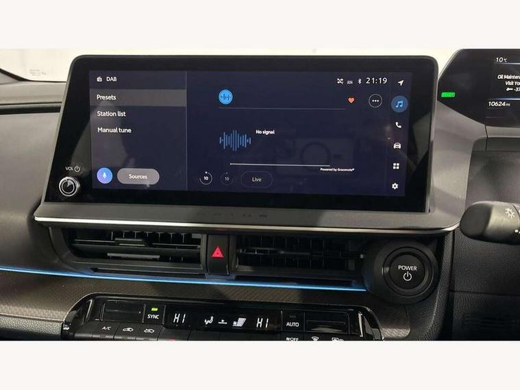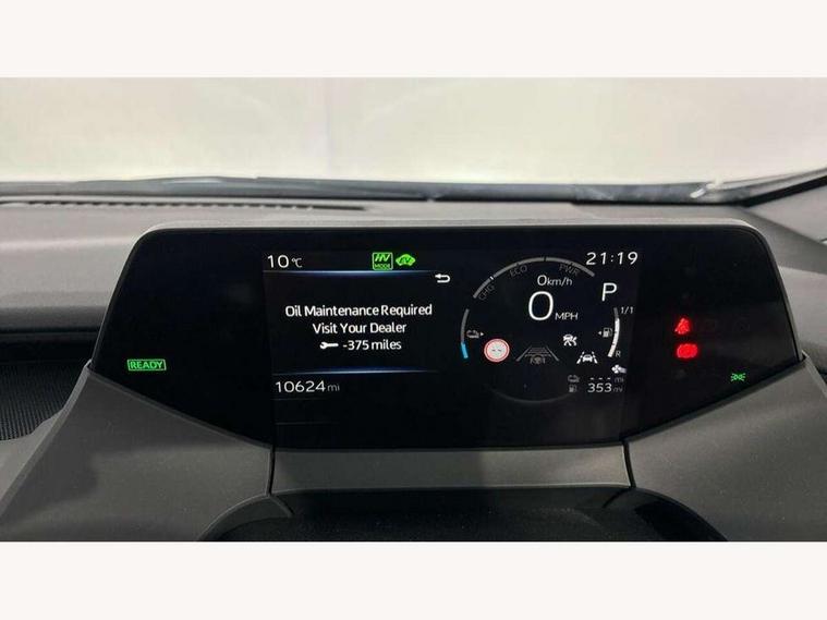 12.3" multimedia display screen, 7" Multi information screen, Acceleration suppression at low speed, Adaptive cruise control [ACC] switch on steering wheel, Blind spot monitor and safe exit assist, Bluetooth connectivity, Digital speedometer, Driver monitoring camera, Dynamic guide lines on reversing camera, eCall emergency call system, Emergency driving stop system, Emergency steering assist with active support and pre collision system, Front Cross Traffic Alert, Hybrid system indicator, Intelligent adaptive cruise control, Intelligent parking sensors front and rear with rear pedestrians, Lane change assist, Lane trace assist, Multi information display switches on steering wheel, MyT connected services, PAS, Pre collision system with intersection detection, Precaution Illumination on dashboard ambient light, Proactive driving assist (PDA), Push button start, Rear cross traffic alert with brake assist, Remote boot door release in cabin, Reversing camera, Road sign assist - RSA, Safe exit assist, Smart entry and push button start, Smart voice assist, Speed limiter switch on steering wheel, Speed limiter with road sign assist, Telephone switches on steering wheel, Touch 2 Go navigation system, Toyota smart connect multimedia system, Voice recognition, Wireless Smartphone integration incl Apple CarPlay, 3.3 kW Standard charger, Fast charger 32A Mennekes cable, Vehicle Stability Control (VSC), 2 USB-C connectors front, 2 USB-C connectors rear, 2x USB sockets in front armrest, 6 speakers, DAB Radio (Digital Audio Broadcasting), Road events, Anti-jam protection on power windows, Auto headlights, Auto up and down function on power windows, Auto wipers, Automatic high beam, Automatic rear flashing hazard lights, Black door moulding, Black rear bumper, Black surround on lower front grille, Black wheel arch mouldings, Boot door release with push button, E-switch operated rear door handles, Electric heated door mirrors, Follow me home headlights, Grille shutter, Indicators integrated on door mirrors, Infrared filter on windshield, LED daytime running lights, LED Headlights, LED High mounted stop lamp, LED Indicators, LED rear combination lights, Manual day/night rear view mirror, Manual front door handles, Manual headlight levelling, Noise reduction layer on windscreen, Power adjustable door mirrors, Power retractable door mirrors, Privacy glass for rear window, Rear fog lights, Rear side wing doors, Rear spoiler, Rear window wiper, Rear windscreen defogger, Shark fin antenna, Silver lower front grille, UV-filter on driver and front passenger windows, 12v power outlet - front, 2 cup holders in front, 2nd row rear passenger room LED light, 3 seat bench in 2nd row, 3 spoke premium animal friendly leather steering wheel, 60/40 split folding 2nd row rear seats, Adjustable rear headrests, Ambient lighting on dashboard, Assist grips front, Assist grips rear, Boot 230V power outlet, Boot light, Boot underfloor storage, Charge cable bag, Driver and front passenger personal LED lights, Driver and front passenger Whiplash Injury Lessening seats, Foldable tonneau cover, Front and rear door pockets, Front head restraints, Front passenger seatback pockets, Gloss black insert on centre pillar, Glovebox with light, Heat pump system with humidifier, ISOFIX child restraint system, LED front room light, Luggage floor board with protection mat, Manual telescopic steering wheel, Manual tilt steering wheel, Manually height adjustable driver seat, Manually reclining driver seat, Manually reclining front passenger seat, Manually sliding driver seat, Manually sliding front passenger seat, Microphone on front personal light, Mirror on driver sun visor, Mirror on passenger sun visor, Multimedia switches on steering wheel, Nanoe-X air purifier, Pollen air filter with deodorising odour eliminator, Power adjustable lumbar support on driver seat, Power window switches with satin chrome inserts, PVC gear shift knob, Rear cup holders, Rear headrests, Remote dual zone automatic air conditioning, Satin chrome interior door handles, Single front passenger seat, Soft-touch front door armrests, Soft-touch rear door armrests, Sports fabric upholstery, White ambient lighting in footwell, 3 point seatbelts on all seats, Acoustic vehicle alerting system, Anti lock braking system + Electronic brake force distribution, Child safety door lock, Driver and passenger central airbags, Driver and passenger front airbags, Driver and passenger side airbag, Driver knee airbag, Electronic parking brake, Front to front oncoming car and motorbike daytime detection, Passenger airbag on/off switch, Pre collision system with pedestrian, cyclist and motorbike detection, Pre-tensioners and force limiters, Rear seat reminder alert, Toyota safety sense with over the air updates, Tyre pressure warning system, Driver power door lock, Glass-breaking alarm sensors, Immobiliser, Intrusion alarm, Intrusion sensor, Motion sensor alarm, Remote door lock, Smartphone remote door lock, Smartphone remote hazard lights system, Wheel Nuts, Metallic effect insert on dashboard, Soft-touch front door trim, 17" 5 spoke dark grey aerodynamic alloy wheels with full wheel caps, Tyre repair kit,