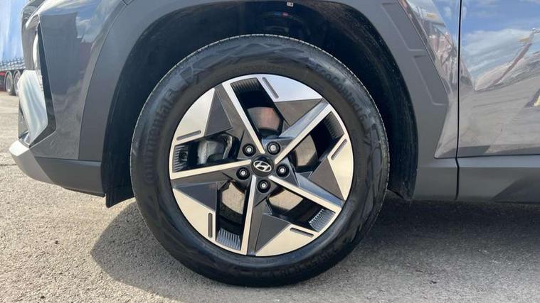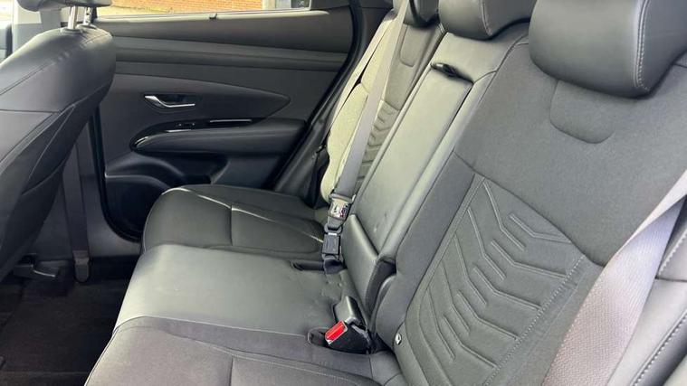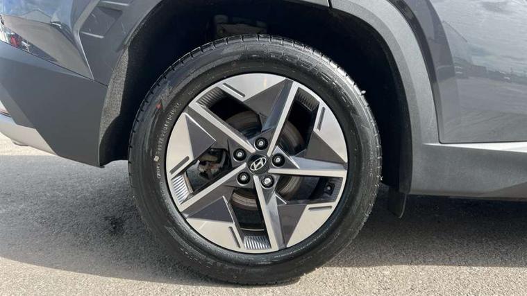 12.3" LCD display with driver's supervision instrument cluster, 12.3" widescreen navigation with bluelink and mapcare, Bluetooth system, Cruise control, Digital clock, Drive mode selector, Driver attention warning, E-call, Emergency stop signalling system, Forward Collision Avoidance Assist (FCA) - Car, Pedestrian and Cycle, Forward Collision Avoidance Assist Junction Turning (FCAJX), Front and rear parking sensors, Hyundai road side assistance, Intelligent speed limit assist, Lane follow assist, Lane keep assist, Over the air updates(OTA), PAS, Rear camera and guidance parking system, Rev counter, Smart power tailgate, Tailgate open warning light, Trip computer, Trip odometer, Voice recognition, Water temperature gauge, Windscreen washer fluid sensor and warning indicator, Wireless Apple CarPlay/Android Auto, Wireless phone charging pad, 2 front and 2 rear USB-C ports, DAB Digital radio, Krell premium audio system with 8 speakers and subwoofer, Steering wheel mounted audio/phone controls, Adjustable intermittent front windscreen wipers with aero wiper blade, Auto dimming rear view mirror, Automatic defog system, Automatic headlights with dusk sensor, Automatic windscreen wipers with rain sensor, Black wheel arches, Body colour bumpers, Body colour door mirrors with integrated indicators, Body colour exterior door handles, Electrically adjustable, heated and power folding door mirrors, Follow me home headlights, Front and rear electric windows with anti-trap mechanism and one touch control, Front fog lights, LED 3rd brake light, LED daytime running lights, LED Headlights, LED rear lights, Positioning Lights - LED, Privacy glass - Rear windows and tailgate, Rear side wing doors, Rear wash/wipe with intermittent wipe setting, Roof rails, Soft touch rear door paneling, Tinted glass with windscreen shade band, Trailer stability assist, 12V power outlets in front console and luggage compartment, 3 seat bench in 2nd row, 40/20/40 split folding rear seat, 64 colours interior ambient lighting, Adjustable head restraints (Up and down), Cupholders in rear armrest, Door courtesy lights, Driver and passenger sunvisors with illuminated LED vanity mirrors, Driver's seat electric adjustments, Dual zone climate control, Front and rear door pockets, Front armrest with storage box, Front centre console and door bottle holders, Front passenger's seat electric adjustments, Heated front seats, Heated rear seats, Heated steering wheel, Height/reach adjustable steering column, Illuminated/air conditioned glove compartment, ISOFIX child seat anchorage points attached on outer rear seats, Leather wrapped steering wheel and gear knob, LED interior lighting, Luggage compartment lighting, Luggage cover, Luggage hooks, Luggage net, Map and reading lights, Premium cloth/leather upholstery, Rear seat remote folding function, Rear side window sunblind, Reclining rear seats, Retractable load cover, Single front passenger seat, Sunglasses holder, Touch sensitive climate controls with temperature dials, TUCSON branded metal door scuff plate, Underfloor boot compartment, Trailer wiring package - Tucson, 3x3 point rear seatbelts, Active bonnet, Airbag - Front, front side, curtain and centre front airbags, Anti-lock brake system (ABS), Brake assist function, Childproof rear door locks, Curtain airbag roll over sensor, Downhill brake control, Electric parking brake, Electronic stability control, Front and rear seatbelt reminder, Front passenger airbag deactivation switch, Front seatbelt pretensioners, Hill start assist control (HAC), Multi-Collision braking, Outer rear seatbelt height adjustment, Seatbelt height adjustment for front seats, Traction control, Tyre pressure monitoring system with individual tyre pressure display - TPMS, Vehicle stability management, Deadlocks, Immobiliser, Locking wheel nuts, Remote control central locking, Smart key with keyless entry and engine start/stop button, Speed sensitive auto door locking, Thatcham category 1 alarm, 18" Alloy wheels, Tyre repair kit,