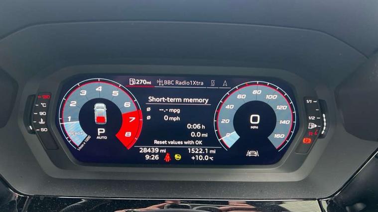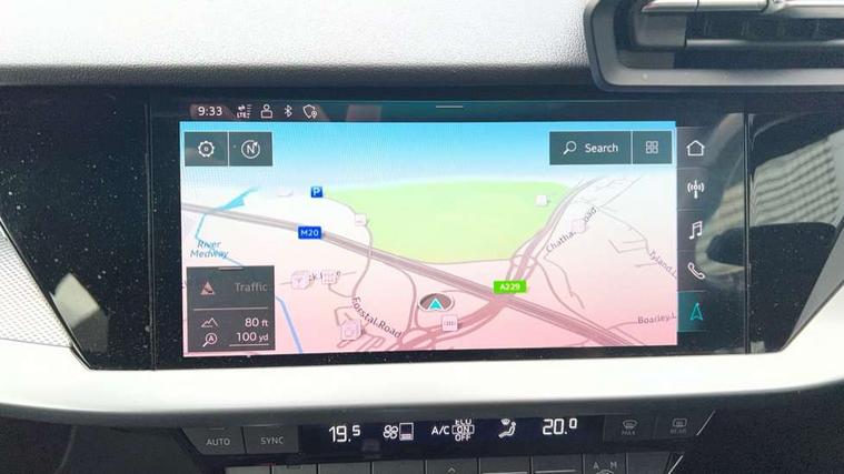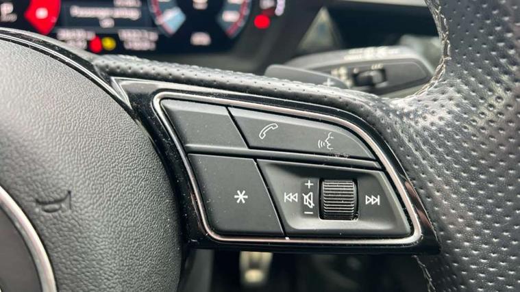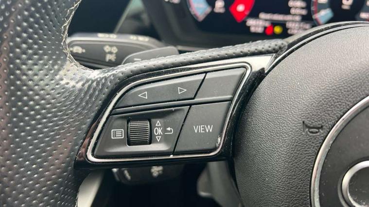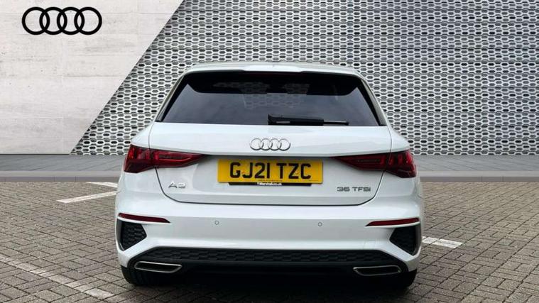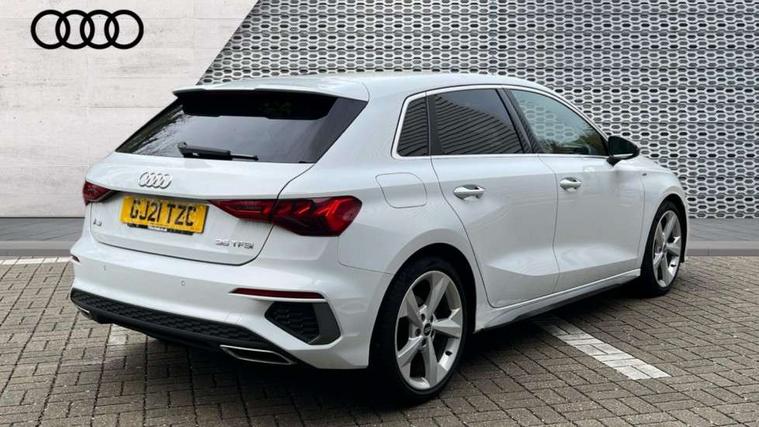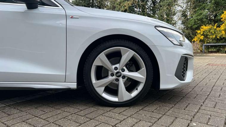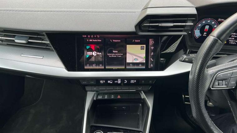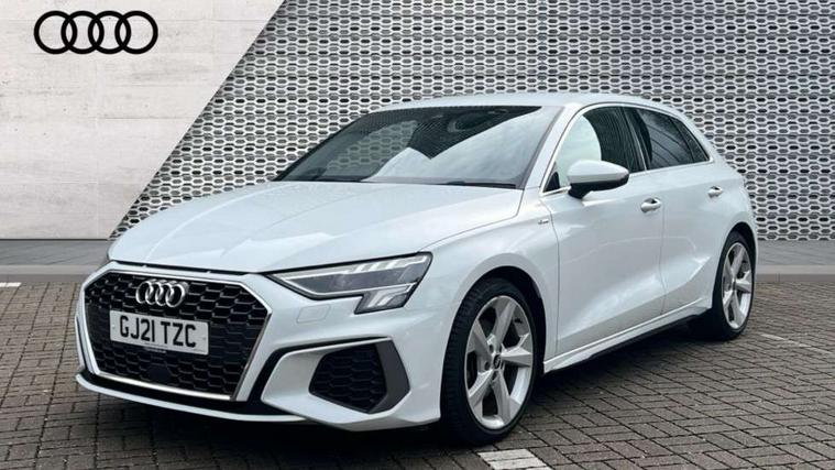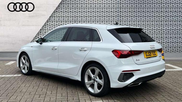 Accent surfaces in the dashboard and centre console in platinum grey silk effect paint finish, Dark spectrum aluminium inlays, Aluminium interior elements pack - A3 Sportback, S line styling pack - A3 Sportback, Anti theft alarm, Anti-theft wheel bolts, Electronically operated child lock, Immobiliser, Remote control central locking, 2xUSB-C connection with data and charging functions, 6 passive loudspeakers, DAB Digital radio, 3x3 point rear seat belts, Driver and front passenger airbag with passenger airbag deactivation, Electronic Stabilisation Control (ESC) including ABS, ASR and EDL, First aid kit with warning triangle and 2 safety vests, Front side airbags with head airbags and interaction airbag, Hill hold assist, Pre-sense front with pedestrian and cyclist detection, Seatbelt monitoring, Tyre pressure loss indicator, Acoustic glass windscreen, Aluminium window trim, Auto dimming frameless rear view mirror, Electrically adjustable/heated/folding/dimming door mirrors with kerb view includes integrated LED indications + kerb view function for passenger side, Front electric windows, Illuminated aluminium inserts front door sills with S logo, LED daytime running lights, Light and rain sensors, Privacy glass - dark tinted rear window, rear door and side windows, Rear electric windows, Rear side air outlets in grained matt black, Rear wiper, S line bumpers, S roof spoiler, 12V socket and storage compartment in front centre console, 40/20/40 split folding rear seat bench with cupholder, Black cloth headlining, Dual zone electronic climate control, Front and rear centre armrest in leather, Front and rear headrests, Front/rear floor mats, Height and reach adjustable steering wheel, Interior lighting - glove compartment light and right hand side, Luggage compartment floor covering, Manual boot compartment lid, Manually adjustable front seats, Seat side bolsters, Stainless steel pedals and front footrest, Twin leather upholstery with front sports seats S embossed logo, Audi connect emergency call and service, Audi drive select (Auto, Comfort, Dynamic, Efficiency and Individual), Audi smartphone interface, Audi Virtual Cockpit - 10.25" digital and colour instrument cluster, Automatic start/stop system with recuperation, Bluetooth interface, Collision avoidance assistant, Electromechanical power speed sensitive steering, Lane departure warning system, MMI Navigation Plus with high resolution 10.1" colour touch screen display, Service indicator, Trip computer, Voice control system with natural language interaction,
