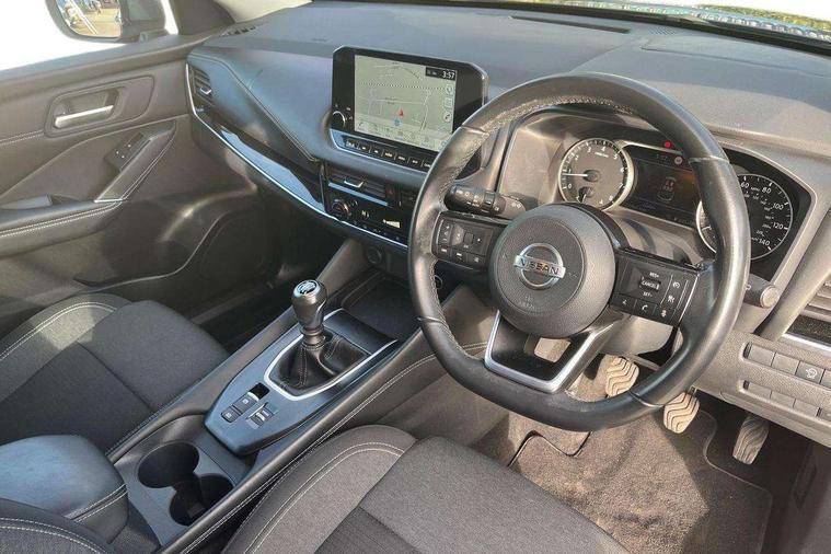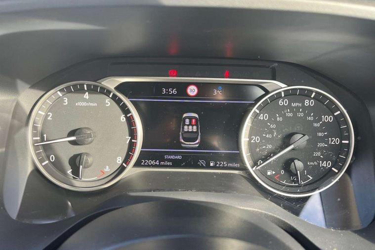 Android auto/Apple CarPlay (Wired), Blind spot warning, Drive modes (sport, normal, eco), Electric speed sensitive power steering, Emergency and breakdown call, Front and rear parking sensors, Full Digital 12.3" TFT Digital Combimeter, Google maps services - search, weather, 3D maps and Google street view, Idle stop/start system, Intelligent around view monitor, Intelligent Cruise control (ICC), Intelligent driver alert system, Intelligent forward collision warning, Intelligent lane intervention, Lane departure prevention, Lane departure warning system, Maximum speed limiter, Moving object detection, Nissan connect 12.3 inch touchscreen infotainment system, Nissan connect navigation, Push button starter, Rear cross traffic alert, Rear view camera, Remote control services - door locks, lights, horn and car locator, Telematics - notifications and connectivity services, TomTom live traffic services, Traffic sign recognition with legal speed adjustment, Trip computer, Virtual personal assistant and firmware over the air capability, Wireless apple carplay, 6 speakers, AM/FM audio system with DAB, Bluetooth audio streaming, Front USB connections (Type-A and Type-C), Rear USB charging only ports (Type-A and Type-C), Auto dimming rear view mirror, Auto rear wiper when reversing, Automatic hazard signal with emergency stop signal, Body colour mirror caps, Body coloured door handles, Bodyside mouldings, Chrome side window finisher, Door handle with button, Dusk sensor, Electric auto folding door mirrors, Electrically adjustable and heated door mirrors with LED turn indicator, Follow me home headlights, High beam assist, Intelligent auto headlights, LED daytime running lights, LED Headlights, LED rear lights, One touch front and rear electric windows with remote opening and closing, Partially body coloured bumpers, Privacy glass, Rear bumper with graphite insert, Rear reversing light (bulb lighting), Rear roof spoiler, Rear side wing doors, Rear styling plate, Shark fin antenna, Splash free rain sensing wipers, Super UV and infrared cut glass, Three blink turn signal, 12v power socket in dashboard and luggage, 2 way electrical driver lumbar adjustment, 2x Rear coat hooks, 3 bench rear seats in 2nd row, 3 rear headrests, 4 folding assist grip, 6 Luggage hooks - 4 on floor, 2 on side, 6-way manually adjustable driver's seat, 60/40 split folding rear seat bench, Ambient lighting around centre console, Centre console storage tray, Chrome interior door handles, Cloth monoform upholstery, Driver and front passenger sunvisors with illuminated vanity mirrors, Driver seat back pocket, Dual zone automatic climate control with pollen filter, Front and rear door storage, Front centre console and armrest, Front cupholders x 2, Front door with bottle holders, Glovebox with light, Hard trunk cover, Height adjustable front headrests, Height adjustable passenger seat, Leather shift knob, Leather steering wheel, Luggage board system, Luggage space lighting, Manually adjustable passenger (slide recline + lifter), Multifunction steering wheel, Passenger seat back pocket, Rear armrest with 2 cupholders, Rear door bottle holders, Single front passenger seat, Soft PVC kneepad, Steering wheel switches, Sunglasses holder, Tilt/telescopic adjustable steering wheel, Two rear isofix child seat anchorage points with top tether, Welcome light and console tray ambient lighting, 3x3 point rear seatbelt pretensioners + load limiters, ABS with EBD and brake assist, Active brake limited slip, Auto hold function, Child locks on rear doors, Curtain and front side, far side airbags, Driver and passenger airbags, Driver, passenger and 2nd row rear seat belt reminder, Electronic parking brake, Front seatbelt pretensioners + load limiters, Height adjustable front seatbelts, Hill start assist, Intelligent blind spot intervention, Intelligent front emergency braking with pedestrian, cyclist recognition and junction assist, Intelligent rear automatic braking, Tyre pressure monitoring system, Vehicle dynamic control, Capless fuel filler, Engine immobiliser, Nissan i-key, Remote central door locking with deadlocking, Thatcham Cat.1 alarm, Interior instrumental panel B finisher, 18" Diamond cut alloy wheels, Tyre puncture repair kit,