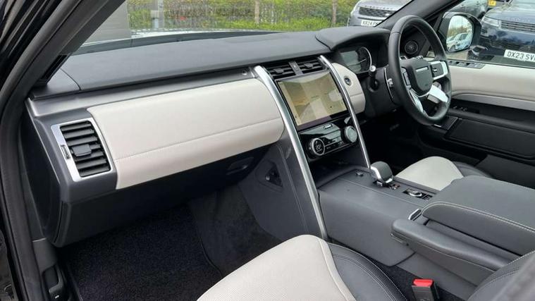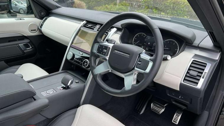 11.4" touchscreen, 3D surround camera, Adaptive cruise control, Android Auto, Apple car play, Blind spot assist, Driver condition monitor, Electric power assisted steering (EPAS), Emergency services call system, Front and rear parking aid, Lane keep assist, Power inner tailgate, Push button start, Rear collision monitor, Rear traffic monitor, Remote, Remote boot release, Service interval indicator, Speed proportional steering, Sportshift selector, Stop/start system, Traffic sign recognition with adaptive speed limiter, Trip computer, Wade Sensing, Adaptive dynamics, Dynamic stability control, Electronic air suspension, Front axle open differential, Digital Audio Broadcast radio-DAB, Dynamic volume control, Pivi pro connected, USB/aux input socket, Acoustic laminated windscreen, Animated directional indicators, Auto dimming interior rear view mirror, Automatic headlight levelling, Automatic headlights, Body colour bumpers, Body colour door handles, Centre high mounted stop light, Electric heated/power fold memory door mirrors with approach lights and auto dimming driver side, Electric windows with one touch open/close and anti-trap, Heated rear window, Heated windscreen, LED darkend tail lights, Metal treadplates with R-Dynamic branding, Narvik black Discovery script, Privacy glass, Puddle lights, Rain sensing windscreen wipers, Rear fog lights, Rear side wing doors, Rear wash/wipe, Trailer stability assist, Variable intermittent wiper, 12V power sockets, 12V USB charging socket in loadspace, 2 seat bench in 3rd row, 3 seat bench in 2nd row, Central hinged twin lidded storage, Ebony morzine headlining, First and second row door bins, Footwell lights, Front and rear 12V with front USB, Front passenger seat isofix location point, In-facia storage, Isofix child seat preparation for front passenger seat, Loadspace cover, Loadspace Hook, Loadspace light, Lockable glovebox, Lower centre console storage, Luggage tie downs in loadspace, Multi function steering wheel, Overhead lighting console, Premium carpet mats, Rear ISOFIX, Shopping bag hook, Single front passenger seat, Storage glovebox, Sunvisors with illuminated vanity mirrors, Third row storage, Twin front cupholders with cover, USB with 12V socket in centre console, Online pack with data plan - Discovery, R-Dynamic black exterior pack - Discovery, 3x3 point rear seatbelts, Anti-lock braking system (ABS), Brake pre-fill technology, Cornering brake control, Curtain airbags, Customer configurable autolock, Driver and passenger airbags, EBD - Electronic brakeforce distribution, Electronic traction control, Emergency brake assist, Emergency braking, ESP, Front side airbags, Gradient acceleration control, Hill descent control, Hill launch assist, Power operated child locks, Rear airbags, Roll stability control, Seat belt reminder, Torque vectoring brake, Tyre pressure monitoring system, Immobiliser, Intrusion sensor, Keyless entry, Locking wheel nuts, Remote central locking, All terrain tyres,