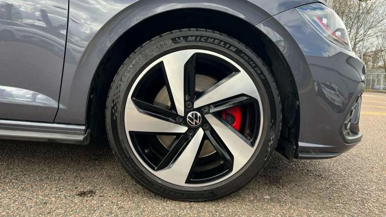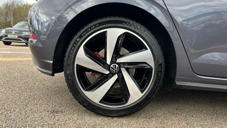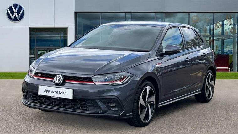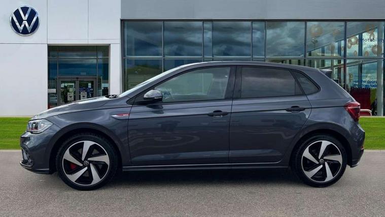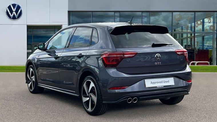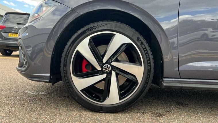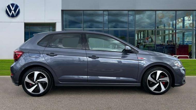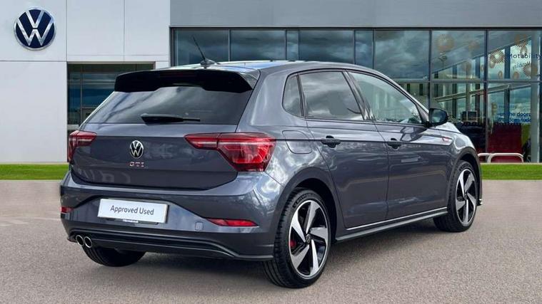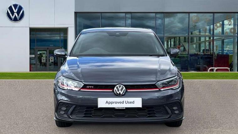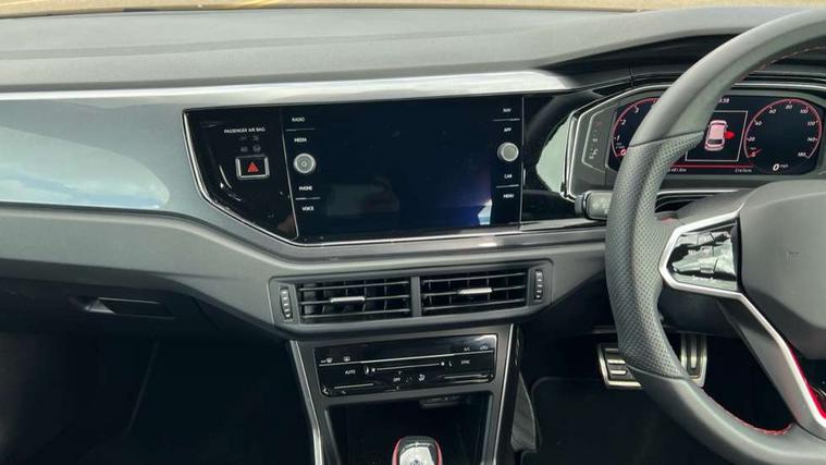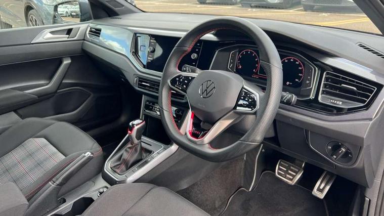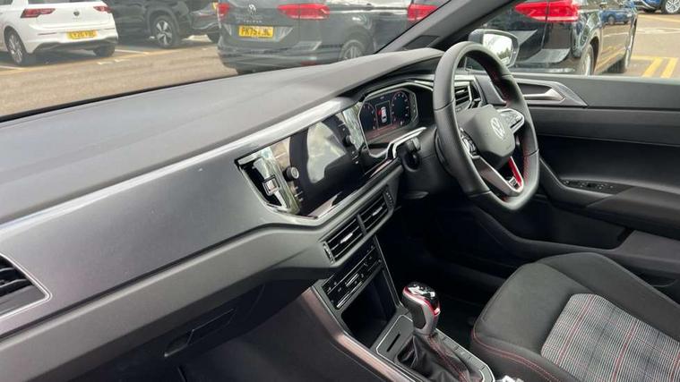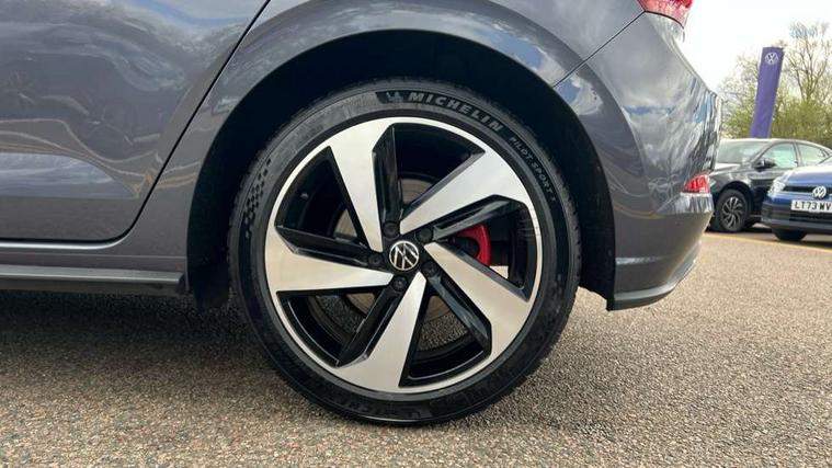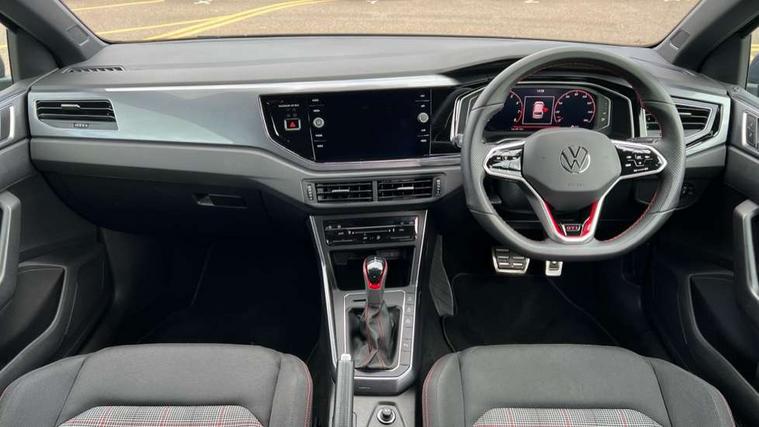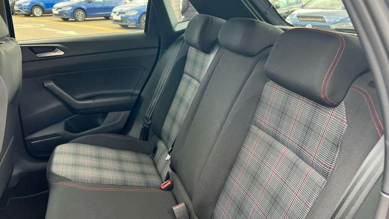 Adaptive cruise control with follow-to-stop and speed limiter, Bluetooth mobile phone interface, Digital Cockpit Pro with 10.25" Display, Driver alert system, Dynamic road sign display, Eco mode, Emergency call service, Power assisted speed sensitive steering, Preparation for We connect and We connect plus, Speedo and rev counter, electronic odometer, trip, service interval display and fuel gauge, Travel Assist - Lane keeping system and traffic jam assist, Travel assist including emergency assist, Trip computer, Warning signal and warning light for front and rear seatbelts not fastened, Washer fluid level indicator, Wireless app connect, Adaptive chassis control, Front wheel drive, Heavy duty rear axle, Rear shock absorpion sports version, Sports select suspension lowered by 15mm, Start-stop system with battery regeneration (recuperation - energy recovery during braking), DAB Digital radio, Diversity antenna for FM reception, Front and rear 6 speakers, Body colour bumpers, Body colour door handles, Electric front windows, Front scuff plates in aluminium with GTI logo, Heat insulating darkened glass in side and rear windows, Heat insulating glass windscreen, Power folding adjustable/heated exterior mirrors and front passenger exterior mirror lowering function, Rain sensor, Rear electric windows, Rear fog light, Rear side wing doors, Rear windscreen washer and wiper with interval delay, Sport bumpers with air intakes with honeycomb structure, Third brake light, Twin chrome exhaust tailpipes, 12V power socket in centre console, 2 USB-C ports in the front, 2 USB-C charging sockets on the center console in the rear, 3 rear head restraints, 60/40 split folding rear seat and rear seat bench not split, Air care climatronic air conditoning system with active combination filter and 2-zone temperature control, Black roof lining, Chrome plated radiator grille inserts, air vent surrounds and light switch surrounds, Door and side trim panel, Driver and front passenger seat height adjustment, Driver/passenger sunvisors with illuminated vanity mirrors, Front + rear carpet mats in recycled material, Front centre armrest, Front footwell illumination, Front seat backrest storage pockets, GTI sports gearshift knob in aluminium leather, Handbrake lever handle in leather, Headliner in recycled material, Isofix child seat preparation easy-fit (for two outer rear seats, and front passenger seat) compatible with I-size, LED interior light with switch off delay and dimmer, 2 reading lights front and rear, Luggage compartment cover, Luggage compartment floor, Luggage compartment lighting, Single front passenger seat, Stainless steel pedals, Standard pedal cluster, Three spoke leather wrapped multifunction sports steering wheel with shifting paddles, IQ LED matrix headlights pack - Polo, Light and sight pack - Polo GTI, 3 point height adj front seatbelts + pretensioners, 3x3 point rear seatbelts, ABS, Driver and front passenger airbag with front passenger airbag deactivation, Drivers and front passengers safety optimised head restraints, ESC (Electronic stability control) + EDL (Electronic Differntial lock) and ASR (Traction control), Extended and predictive pedestrian/ cyclist protection, Front and rear disc brakes with red brake calipers, Front curtain and side airbags with center airbag, Hill hold control, Manual child lock in rear doors, Two tone horn, Tyre pressure loss indicator, Alarm with interior protection, Anti-theft alarm system with interior monitoring, backup horn, and towing protection, Anti-theft wheel bolts, Electronic engine immobiliser, Chrome applications on rotary light, mirror adjustment, window regulator switches, outlet with frame in black, Low rolling resistance tyres,