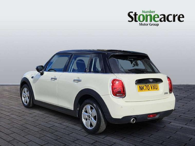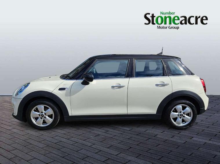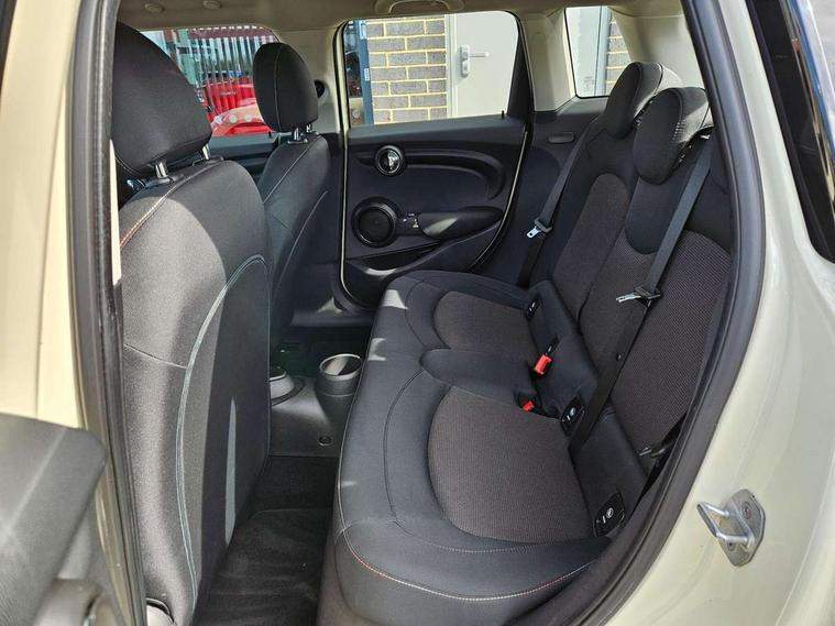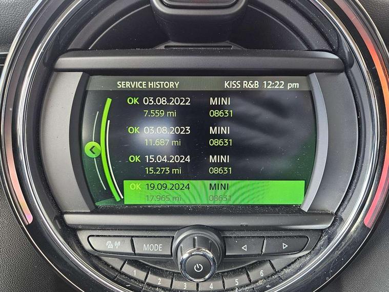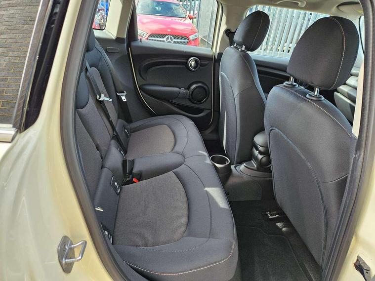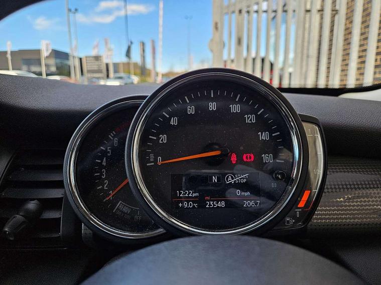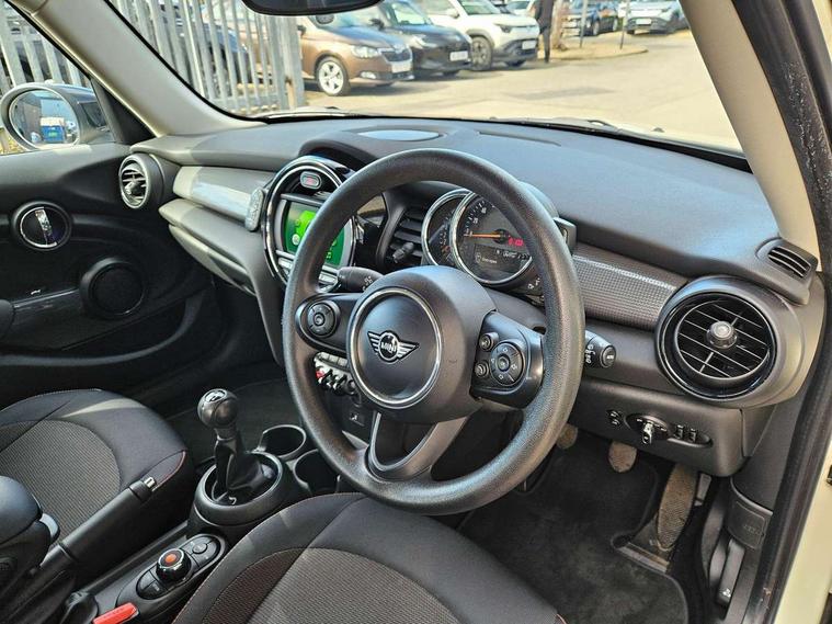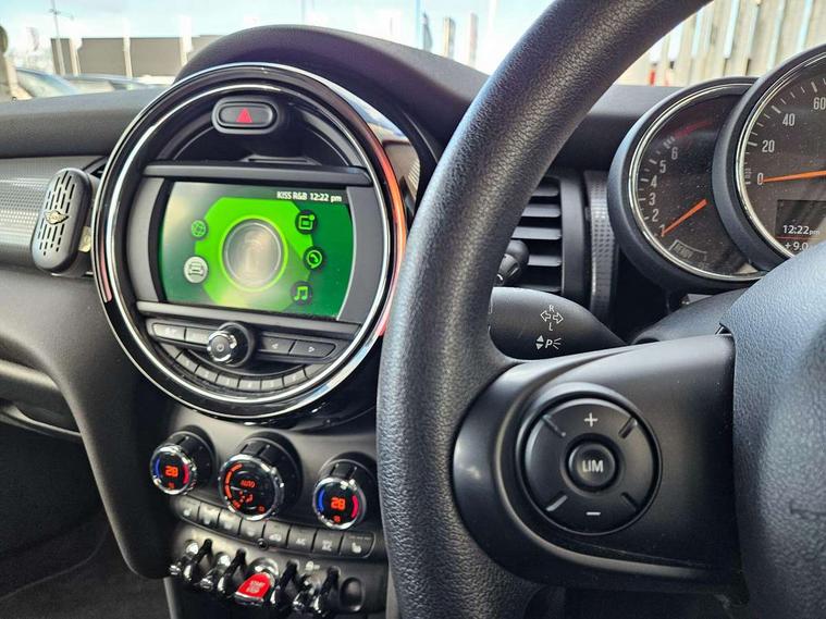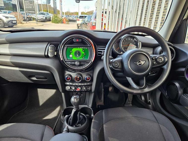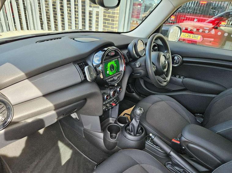 Automatic start/stop function with brake energy recuperation, Compatible mobile phone bluetooth with audio streaming, Electro-mechanical speed dependant steering assistance, Instrument cluster, Mini E-call, MINI TeleServices, On board computer, Service interval indicator, Double Vanos system, Fully variable valve control, Gear change indicator display, High precision injection, 6.5" touchscreen with LED ring, FM tuner and DAB digital radio, Automatic headlight activation switch, Body colour fuel filler cap, Chrome border high gloss black slats radiator grille, Dynamic brake lights, Electric front+rear windows, Heated rear window, Heated windscreen washer jets, LED headlight with closed ring and daytime driving lights, Left exhaust tailpipe with chrome finisher, Metal door sill strips with MINI imprint, Model logo Cooper on right of tailgate, Rain sensor window wipers, Rear fog lights, Rear LED lights with union jack design, Rear window wiper, Side scuttle panel with integrated indicator, Sun/heat protection glass, White indicator lenses, 12V Accessory socket in centre console, 4 lashing eyes in luggage compartment, 60/40 split folding rear seat, Carbon Black colour line, knee roll and door armrests, Chrome interior highlights, Colour line - Carbon black, Cupholders, Front and rear head restraints, Front and rear isofix with front passenger airbag deactivation, Glove compartment, Height and length steering column adjustment, Interior lighting with 12 basic colours selectable via toggle switch in roof, Leather gearshift lever and handbrake gaiters, LED reading lights, vanity mirror lights, front foot well light and spotlight on front seats, Manual air conditioning, Mechanical seat adjustment, driver seat height adjust, forward/back and front seats backrest, Mini logo projection on floor from drivers exterior mirror, Multifunction steering wheel, Satellite grey headlining, Storage compartments in doors, Sunvisors with vanity mirrors, Tool kit, 3 point seatbelts on all five seats, 6 Airbags - front, side, head and seat belt tensioners, Anti-lock braking system (ABS), DSC - Dynamic Stability Control, Front and rear disc brakes, Hill start assist, Single tone fanfare horn, Tyre pressure monitoring system, Alarm system with tilt sensor, monitoring doors, bonnet interior and tailgate, Electronic vehicle immobiliser, Start/stop toggle with keyless go, Tyre repair kit,