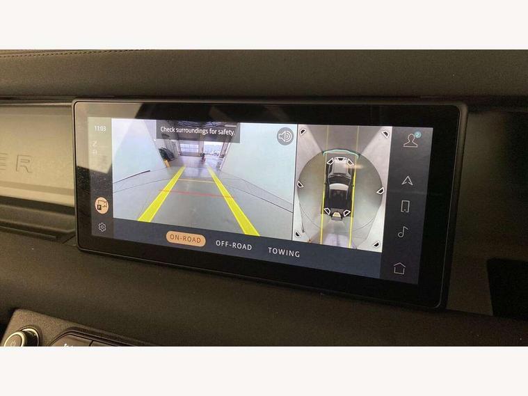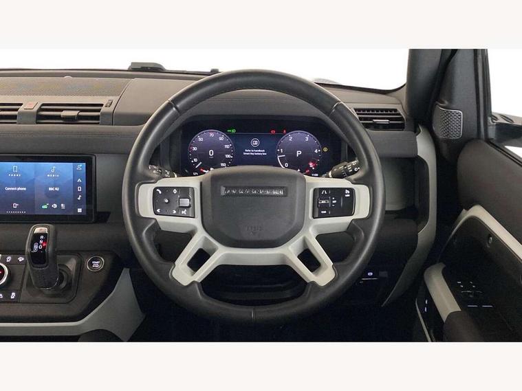 360 degree parking aid, 3D Surround Camera with 360 View, 180 Rear View, Front Traffic Detection, Forward Vehicle Guidance, Tow Hitch Assist and clear sight Ground View, Android Auto, Apple CarPlay, Assisted tailgate with soft close, Blind spot assist, Bluetooth system, Brake pad wear indicator, Clear exit monitor, Connected navigation pro, Driver condition monitor, Electric power assisted steering (EPAS), Lane keep assist, Push button start, Rear traffic monitor, Traffic sign recognition with adaptive speed limiter, Trip computer, Wade Sensing, 8 speed automatic transmission, All wheel drive system, Twin speed transfer box, DAB Radio (Digital Audio Broadcasting), Meridian 400w sound audio system with 11 speakers and subwoofer, Pivi pro connected, Automatic headlight levelling, Automatic headlights, Centre high mounted stop light, Electric heated/power fold door mirrors with approach lights and auto dimming driver side, Electric windows with one touch open/close and anti-trap, Follow me home lighting, Front fog lights, Heated rear window with timer, Heated windscreen, LED tail lights, Panoramic rear side glass, Privacy glass, Puddle lights, Rain sensing windscreen wipers, Rear fog lights, Rear wiper, Side hinged tailgate, Trailer stability assist, X-Dynamic badge, 12V power socket in loadspace, 3 seat bench in 2nd row, Alpine lights, Durable rubber cabin flooring, Durable rubber loadspace flooring, Footwell lights, Loadspace cover, Loadspace Hook, Multifunction steering wheel, Overhead stowage for sunglasses, Premium cabin lighting, Rear headrests, Rear ISOFIX, Rear reading lights, Single front passenger seat, Standard seat configuration, Storage glovebox, Sunvisors with illuminated vanity mirrors, Online pack with data plan - Defender, 5 x 3 point seatbelts, ABS, Brake hold function, Cornering brake control (CBC), Customer configurable autolock, DSC - Dynamic Stability Control, EBD - Electronic brakeforce distribution, Electric parking brake (EPB), Emergency brake assist, Emergency braking, ESP + traction control, Front airbags with passenger seat occupant detector, HDC - Hill descent control, Hill launch assist, Low traction launch, Remote for (e-Call, Optimised assistance call, InControl app, Climate, beep and flash and door), RSC - Roll stability control, Seat belt reminder, TPMS (Tyre pressure monitoring system), Alarm, Immobiliser, Intrusion sensor, Keyless entry, Locking wheel nuts,