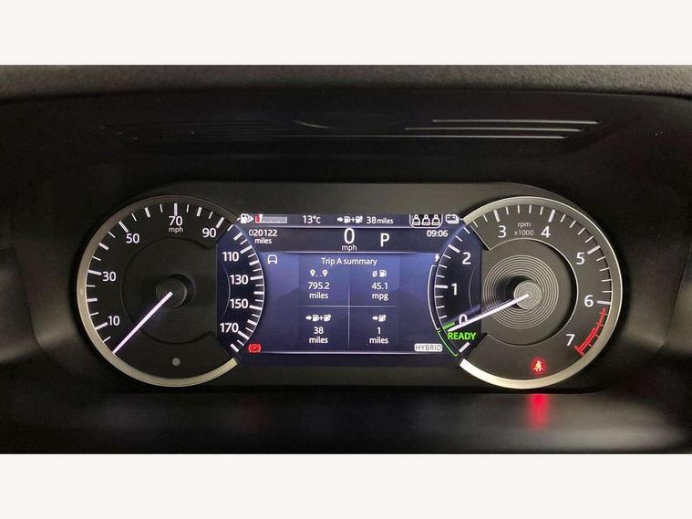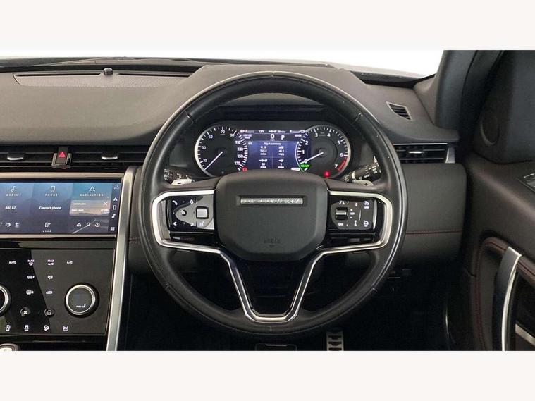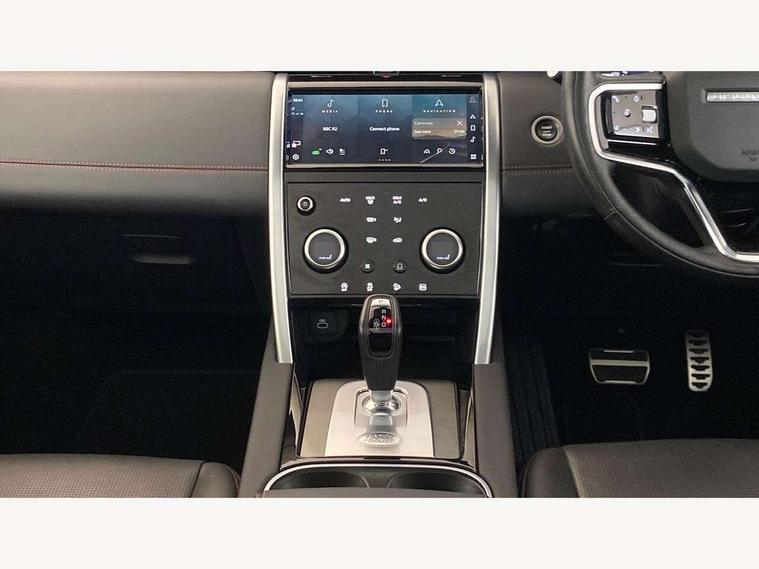 10" touch screen, Adaptive cruise control, Android Auto, Apple CarPlay, Blind spot assist, Clear exit monitor, Driver condition monitor, eCall emergency call system, Front and rear parking aid, InControl remote premium, Lane keep assist, Locking fuel flap, PAS, Pivi Pro connected navigation system with upgraded Infotainment, Powered tailgate/boot lid, Push button start, Rear collision monitor, Rear traffic monitor, Service interval indicator, Traffic sign recognition with adaptive speed limiter, Trip computer, Wade Sensing, 7 kW onboard charger, All terrain progress control, Coil suspension system, Configurable dynamics, Dynamic stability control, Home charging cable, Public charging cable, Terrain Response 2, Bluetooth connectivity including audio streaming, Digital Audio Broadcast radio-DAB, Steering wheel mounted audio controls, 3rd brake light, Automatic headlight levelling, Automatic headlights, Electric front/rear windows, Electric heated/power fold door mirrors with approach lights and auto dimming driver side, Front and rear recovery eyes, Front fog lights, Heated rear window, Heated windscreen including heated washer jets, Illuminated metal front treadplates with R dynamic branding, P300e badge, Privacy glass, R Dynamic badge, Rain sensing windscreen wipers, Rear fog lights, Rear side wing doors, Rear wing door, Rear wiper, 5 standard seating configuration, Bright metal pedals, Centre console with armrest, Configurable cabin lighting, Electrically adjustable steering column with memory, Footwell lights, Front and rear grab handles, Front passenger isofix child seat attachment, Heated steering wheel, Loadspace cover, Loadspace light, Overhead lighting console, Overhead stowage for sunglasses, Rear headrests, Satin chrome gearshift paddles, Sunvisors with illuminated vanity mirrors, Tilt/reach adjustable steering wheel, Black exterior pack - Discovery sport R-Dynamic SE/HSE, Online pack with data plan - Discovery, 3 point seatbelts on all seats, ABS, Brake hold function, Child locks on rear doors, Collision mitigation braking system, Cornering brake control (CBC), Driver/Front Passenger airbags, Drivers knee airbag, Electronic brake force distribution, Electronic parking brake, Emergency brake assist, ESP + traction control, Hill descent control, Hill launch assist, Pedestrian airbag system, Rear seat ISOFIX, Roll stability control, Side and curtain airbags for front and 2nd row seats, Trailer stability control, Tyre pressure monitoring system, Battery Back Up System (BBUS) with tilt sensor, Global lock and unlock switch on driver door, Intrusion sensor, Keyless entry, Locking wheel nuts, Centre stack rails in noble chrome,