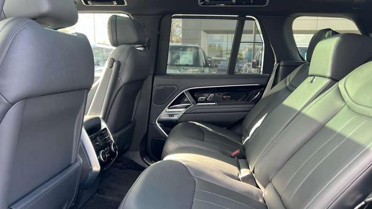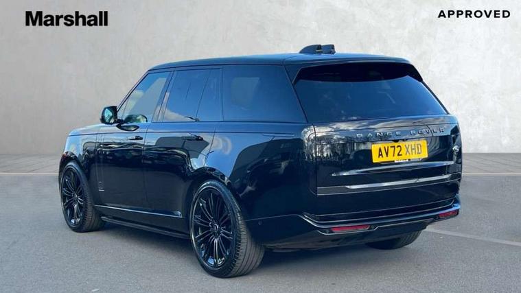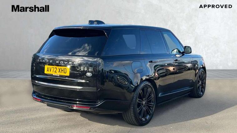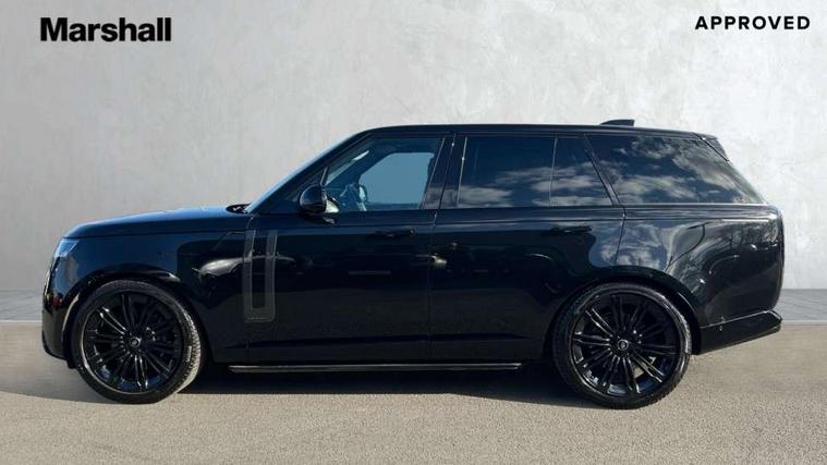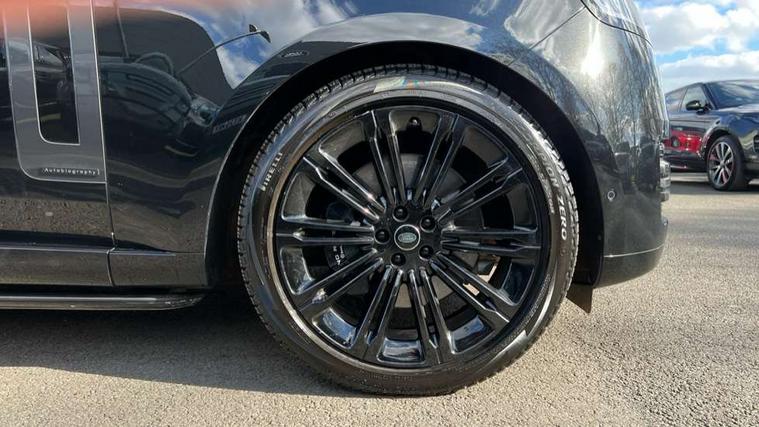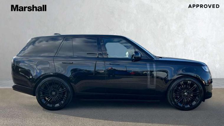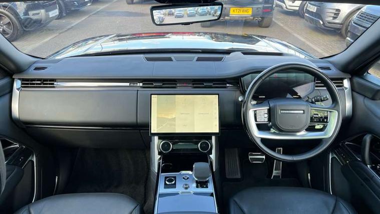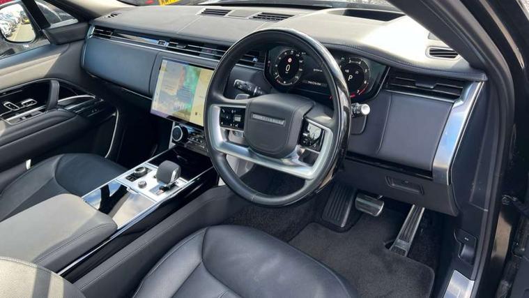 13.1" Touchscreen, 3D surround camera inc frwd traffic detection, vehicle clearance guidance, 3D view, clearsight ground view, manoevure light, 360 parking aid, wade sensing, Adaptive cruise control with steering assist, All Terrain Info Centre, All wheel steering, Android Auto, Apple car play, Blind spot assist, Bluetooth connectivity streaming, Configurable programs, Driver condition response, Eco mode, Electric power assisted steering (EPAS), Emergency call service, Front and rear parking aid, Head up Display, Interactive driver display, Lane keep assist, Powered gesture tailgate/boot lid, Rear collision monitor, Rear traffic monitor, Remote, Traffic sign recognition with adaptive speed limiter, Wi-Fi Enabled with data plan, Wireless device charging with phone signal booster, 8 speed automatic transmission, Active damper technology system, Adaptive dynamics, All terrain progress control, All Wheel Drive (AWD), Automatic access height, Electronic active differential with torque vectoring by braking, Electronic air suspension with dynamic response, Terrain Response 2 Auto, Twin speed transfer box, Digital Audio Broadcast radio-DAB, Meridian 1600W signature sound system, Pivi pro including smart settings, Connected navigation pro, nuance speech, USB socket, Acoustic laminated windscreen, Animated directional indicators, Automatic headlights, Automatic levelling headlights, Centre high mounted stop light, ClearSight interior rear view mirror, Electric windows with one touch open/close and anti trap, Flush deployable exterior door handles, Front and rear recovery eyes, Front fog lights, Headlamp power wash, Heated rear window, Heated washer jets, Illuminated metal treadplates with Autobiography script, Laminated front and rear side glass, LED tail lights, Power fold, auto-dimming, heated door mirrors with approach lights, Rain sensing windscreen wipers, Rear boot, Rear fog lights, Rear side wing doors, Rear wash/wipe, Side repeater indicators in mirror, Solar attenuating windscreen, Trailer stability assist, Winter wiper park position, 12V power sockets, 3 seat bench in 2nd row, Air quality sensor, Auto folding loadspace cover, Bright metal pedals, Cabin air purification pro, Cabin lighting, Customer configurable single point entry, Driver and passenger front seat armrests, Easy boot loading, Ebony Carpet, Electric rear side window sunblinds, Four zone climate control, Front and rear cupholders, Front and rear grab handles, Front head restraints, Gearshift paddles, Heated steering wheel, Hook in load space, Loadspace light, Luggage tie down in loadspace, Multifunction steering wheel, Rear centre armrest, Rear head restraints, Rear ISOFIX, Single front passenger seat, Soft close doors, SV bespoke carpet mats, Twin blade sunvisors with Illuminated vanity mirrors, Upper and lower glovebox, Versatile loadspace floor in tailgate, Online pack with data plan - Range Rover, 3x3 point rear seat belts, Anti-lock braking system (ABS), Black brake calipers, Brake hold function, Cornering brake control (CBC), Customer configurable autolock, DSC - Dynamic Stability Control, Electronic brake force distribution, Electronic parking brake, Electronic traction control, Emergency brake assist, Emergency braking, Front airbags with passenger seat occupant detector, Front side airbags, Hill descent control, Hill launch assist, Illuminated seat belt buckles, Low traction launch, Occupant protection assist, Power operated child locks, Roll stability control, Tyre pressure monitoring system (TPMS), Immobiliser, Intrusion sensor and alarm, Keyless entry, Locking wheel nuts, Remote central locking, Noble chrome controls,