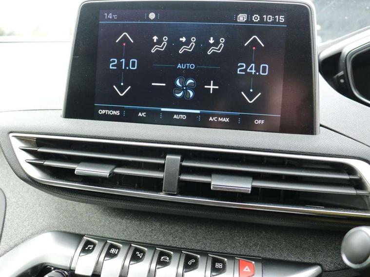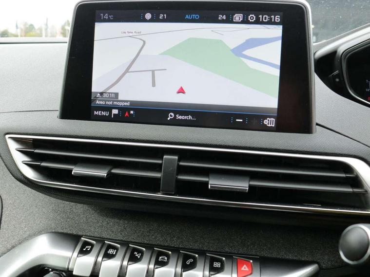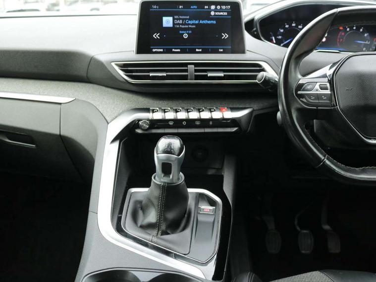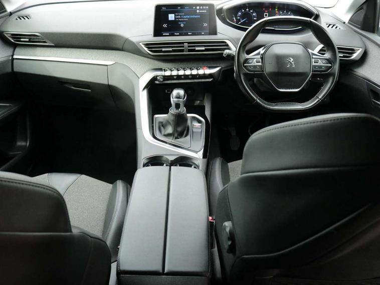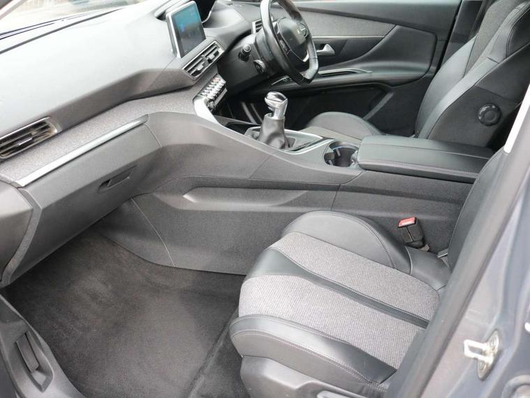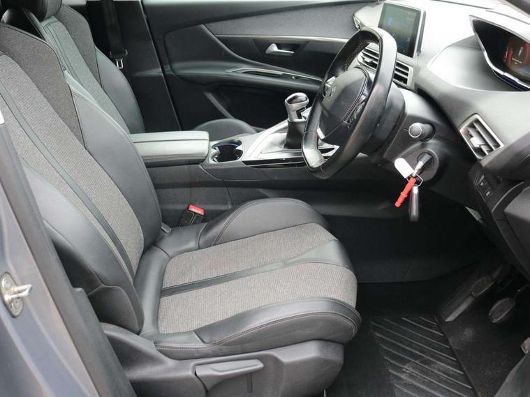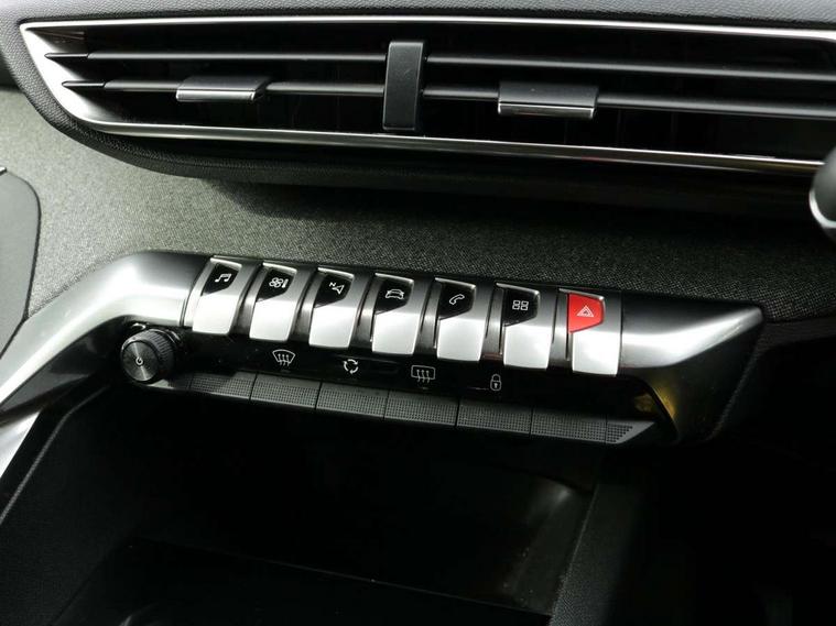 'Lights On' Reminder warning buzzer, 3D connected navigation + voice control + Peugeot connect SOS and assistance, Bluetooth telephone facility, Digital clock, Exterior temperature indicator with ice warning, Front and rear parking sensors, Lane departure warning system, Mirror screen with mirror link, apple carplay and android auto, Multi function trip computer, PEUGEOT i-Cockpit with 8.0" capacitive touchscreen in centre console, PEUGEOT i-Cockpit with compact sports steering wheel, PEUGEOT i-Cockpit with configurable 12.3" Head-up digital instrument panel, Speed limit recognition and recommendation, Dynamic stability control and electronic anti-skid system, DAB Digital radio, Steering wheel mounted controls, USB socket, 2 X Rear number plate lights, Aluminium longitudinal roof bars, Automatic hazard light activation upon heavy brake application, Automatic triggered rear windscreen wiper in reverse gear, Black and chrome front wing trim, Black rubber side window trim, Body colour door handles, Body colour door mirror shells, Body colour rear spoiler with stainless steel edging trim, Body coloured bumpers, Body protectors (bottom of front and rear bumpers + wheel arches + protection at bottom of doors) in black, Chrome front fog light trim, Chrome rear bumper facia, Dark tinted rear side windows + tailgate window, Door mirror mounted LED courtesy approach lights, Electric operated/heated door mirrors, Front windscreen wiper with magic wash cleaning system, Gloss black B and C pillar and aerodynamic deflector trim, Gloss black rear cluster connecting strip, Gloss black windscreen surround, Headlights left on audible warning, Heated rear windscreen with integrated antenna, LED daytime running lights, LED side indicator lights integrated into door mirrors, Lion grey front bumper scuff plate, One touch electric front/rear windows with pinch protection, Power folding door mirrors with blind spot detection indicator and auto dipping function in reverse gear, Radiator grille in chrome edge trim and facets, Rear LED Peugeot signature 'Claw Effect' lights, Stainless steel roof arches, 1/3 to 2/3 split folding rear seats, 12V Sockets in dashboard, rear cabin and load area, 2 cupholders in front centre console, 2 rear reading spotlights, 2x Rear coat hooks, 3x Isofix child seat fittings in the front passenger and outer rear seats, 4 Grab handles retractable and damped, Blue ambient lighting for connecting zone, Blue ambient lighting to front door panels, central storage and cupholders, Blue ambient lighting to head up instrument panel, Centre front armrest with butterfly wing opening and illuminated storage compartment, Driver and front passenger seat height adjustment, Driver seat manual adjustment, Dual zone automatic climate control, Electric power steering with reach and rake adjustable steering column, Fixing rings 4 in load compartment, Flocked glovebox interior, Fold flat front passenger seat with picnic table, Footwell illumination, Front interior light with 2 reading spotlights and rear interior light with timer, Front passenger seat manual adjustments, Front seat back map pockets, Gear shift indicator, Illuminated glovebox, Illuminated vanity mirrors, Leather steering wheel with detail stitch, Rear armrest with ski flap and two cup holders, Rear centre console ventilation system, Reclining front seats, Roof LED interior lighting, Roof lining - Salin light grey, Satin chrome dashboard trim, Satin chrome digital instrument panel and touchscreen trim, Satin chrome front door panel recess trim, Satin chrome gear lever, Satin chrome interior door handles, Satin chrome scorpion's tail and toggle switch trim, Seatbelt not fastened audible and visual alert for front seats, Seatbelt unfastened on the move audible and visual alert for front and rear seats, Two position boot floor, Safety pack - 3008, Safety Plus Pack - 3008, Visibility pack - 3008, 3x Rear three-point retractable seatbelts with force limiters in the outer rear seats, Adaptive driver and front passenger airbags with passenger airbag deactivation function, Anti lock braking system + Electronic brake force distribution, Driver and front passenger side airbags, Electric child locking functionality on rear windows and doors, Electric parking brake, Front and rear curtain airbags, Front optimised safety headrests and 3 x rear retractable headrests with height adjustable, Front three point retractable seatbelts with pre tensioners and force limiters, Front ventilated disc brakes and rear disc brakes, Height adjustable front seatbelts, Hill start assist, Tyre pressure sensor, Anti theft alarm, Automatic door locking when moving off, Central locking button on dash, Deadlocks, Electronic immobiliser, Locking wheel bolts, Remote control central locking with two plip keys, Brumeo fabric Dashboard, front and rear door panel finish,