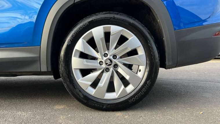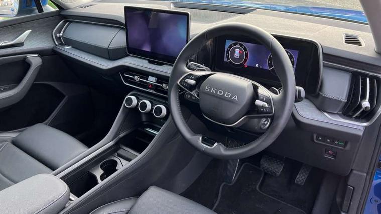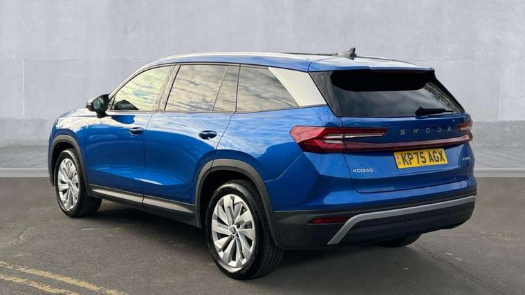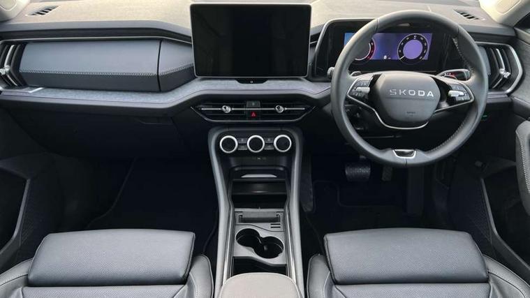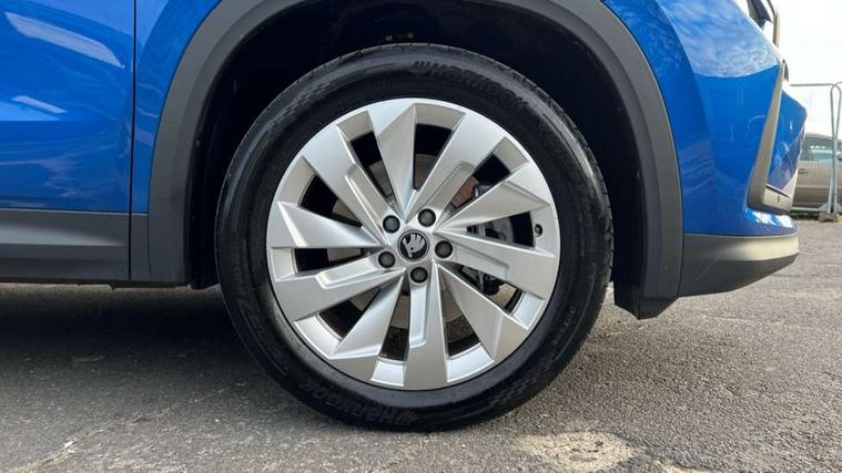 13" satellite navigation touchscreen display, Blind spot detection with door exit warning, Bluetooth system, ChatGPT functionality, Driver alert - Fatigue and drowsiness monitor, Dry display cleaner, Emergency call, Front and rear parking sensors, Front cross traffic assist, Lane assist, PAS, Rear traffic assist, Tailgate unlocking from outside, Traffic sign recognition, USB C Port x 2 in front centre console, Virtual Cockpit - 10.25" digital display, Voice control system, Wireless charging for two smartphones (15W) with cooling function, Wireless SmartLink for Apple CarPlay and Android Auto, Stop/start function, 2x USB-C in the rear, DAB Digital radio, Aero front windscreen wipers with intermittent function, Auto dimming rear view mirror, AWL (all weather lighting) and all weather light with cornering function, Black wheel arch surrounds, Body colour bumpers, Body colour door mirrors and handles, Cornering light and poor weather light, Electric folding /adjustable/separted heated/folding door mirrors, auto dimming with boarding sports and memory function, Electric front and rear windows, Exterior black decorative trims, Heat insulating glass in windshield, Heated rear window, Ice scraper in fuel tank cap, Invisible tailpipe, LED daytime running lights, LED third brake light in rear spoiler, Light assistant with automatic headlight control and coming home feature, Logo projection in door mirrors, Privacy glass, Rear roof spoiler, Rear side wing doors, Rear window wiper, Red decorative strip between rear LED lights, Safety reflectors on front and rear doors, Unique dark chrome design logo on alloy wheels, Window control switches with black trim, Windscreen wipers with rain sensor, Without engine designation, 1.5l bottle holder points in all door, 1x centre rear reading light, 2 seat bench in 3rd row, 3 configurable smart dials with 32mm coloured display, 3 seat bench in 2nd row, 4 foldable roof handles with rear coat hooks, Ambient interior lighting - Dashboard, front-door stowage compartments, front and rear door panels and footwell lighting, Automatic gear selector on steering column, Chrome interior door handles, Driver/front passenger reading lights, Fabric headlining, Fixed bench 40:60:40 split folding backrests, Front and rear floor mats, Front centre armrest with jumbo box storage compartment, cup holder and 12V socket, Height adjustable front headrests, Isofix child seat fittings in outer middle row rear seats and front passenger with top tether, Manually adjustable steering column, Pollen filter, Rear centre armrest with cupholders, Rear seat boot backrest release, Single front passenger seat, Skoda lettering on steering wheel, Storage pocket including mobile phone pockets on the backs of the front seats, Sunvisors with illuminated vanity mirrors, Three rear height adjustable headrests, Ticket holder on A Pillar, Tri zone climate control, Umbrella in door panel x1 made from sustainable materials, Upper and lower glovebox with card holder and coin compartment, USB C port by rear view mirror for charging only (15W), Exterior styling pack - Kodiaq, Auto door release and activation of warning lights in the event of an accident, Driver and front passenger airbag with knee airbag and front passenger airbag deactivation, Electric child locks, Electronic parking brake, ESC (incl. ABS+EMD+MSR+ASR+EDL+HBA+DSR+RBS+ESBS+MCB+TSA+XDS), Front assist with braking reaction to vehicles, pedestrians and cyclists, Front disc brakes, Fuel cut off safety device, Height adjustable front 3 point seatbelts + pretensioners, Hill hold assist, Junction assist with automatic emergency braking, Rear disc brakes, Safety vest holder in door, Seat belt reminder for all seats, Three point rear seat belts, Two tone horn, Tyre pressure monitor, Anti-theft wheel bolts, Immobiliser, Remote central locking with 2 keys,