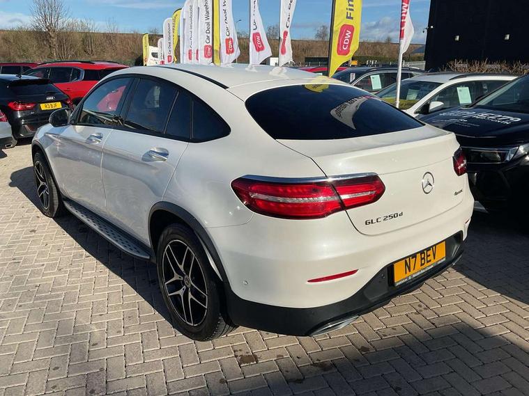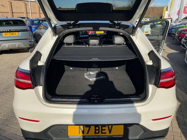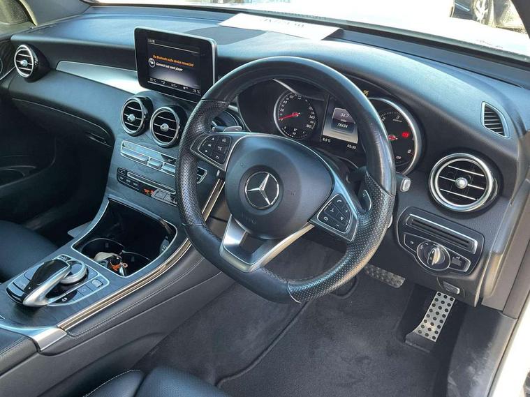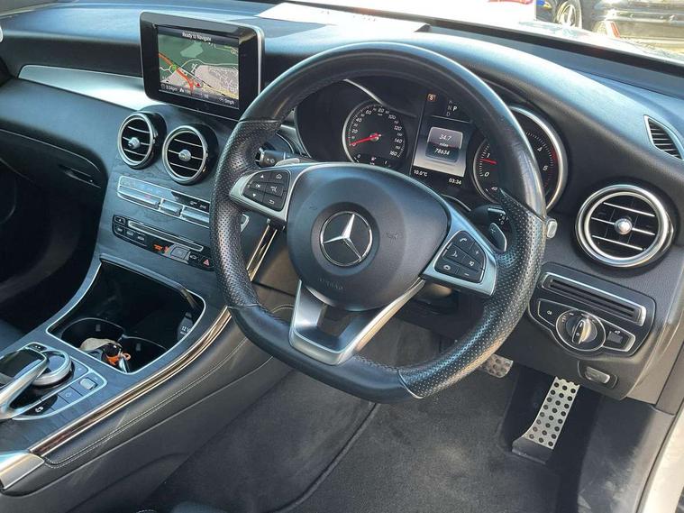 7" colour screen, Active park assist with parktronic system, Attention assist, Bluetooth interface for hands free telephone, Collision prevention assist plus, Crosswind Assist, Cruise control with speedtronic variable speed limiter, DYNAMIC SELECT with a choice of driving modes (ECO, Comfort, Sport, Sport+ and Individual), Garmin Map Pilot navigation system with SD card, touchpad and voice control, Instrument cluster with 5.5-inch TFT multi-function display, Multi function trip computer, Outside temperature gauge, Power opening/closing tailgate, Remote boot release, Service indicator (ASSYST), Speed sensitive steering, Diesel particulate filter, 5 speakers, DAB Digital radio, Frontbass loudspeakers, Mercedes Audio 20 radio/single CD + telephone keypad, USB connection, Adaptive brake lights, AMG bodystyling, Automatic headlights, Body coloured bumpers, Electric windows one touch open/close, Electrically adjustable and heated door mirrors, Exhaust tailpipe finisher, Headlamp assist, Heated windscreen washers, LED daytime running lights, LED rear lamps, Privacy glass (to rear of B post), Rain sensor windscreen wipers, Range adjustable headlights, Rear wiper, Tinted glass all round, 2 cupholders in front centre console, 2 way rear head restraints, 3 spoke flat bottom AMG steering wheel in nappa leather, 4 way adjustable front head restraints, 4 way electric lumbar support for driver and front passenger, 40:20:40 split folding rear seats, Ambient lighting, AMG floor mats, Auto Mercedes-Benz child seat recognition sensor, Automatic climate control, Black roof lining, Electric front seat height adjustment, Gearshift paddles, Heated front seats, Height/reach adjustable steering column, Illuminated glovebox, Multifunction steering wheel, Rear top tether child seat ISOFIX attachment, Sports pedals with stainless steel surfaces and rubber studs, Sunvisors with illuminated vanity mirrors, Easy-pack load compartment cover, Interior lighting pack - GLC, Memory pack - GLC, Mirror pack - GLC, Storage pack - GLC, 3 rear 3 point seatbelts, ABS with Brake Assist, Active bonnet, Adaptive brake system, Brake calipers with Mercedes-Benz lettering + perforated brake discs, Child proof door locks, Drivers knee airbag, Dual stage driver/passenger airbags, Electronic parking brake, ESP with ASR, Front and rear seatbelt reminder, Front passenger seat occupancy sensor, Front side airbags, Tyre pressure monitoring system, Warning triangle and first aid kit, Window airbags, Alarm system/interior protection/immobiliser, Automatic door locking, Keyless entry and keyless start, Tyre inflation kit,
