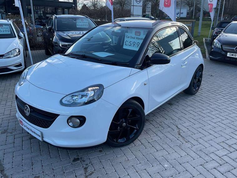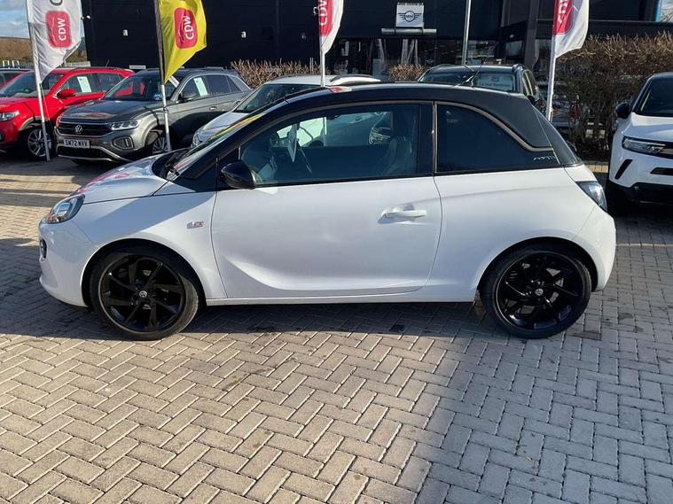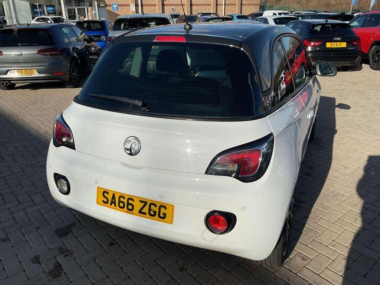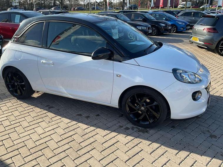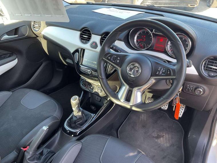 Bluetooth system, Cruise control + speed limiter, Digital clock, Electronic odometer and trip odometer, IntelliLink infotainment system, Low fuel level warning light, On board computer, Rev counter, Service interval indicator, Speed sensitive power steering, Auxiliary input socket, Bluetooth audio streaming, DMB digital radio, Steering wheel mounted audio controls, USB connection, Adaptive brake lights, Electrochromic automatic anti-dazzle rear view mirror, Front grille bar - Black jack, Laminated windscreen, LED daytime running lights, LED tail lights, 12V power socket in centre console, 2 rear cupholders in centre console, 50/50 split folding rear seat, Air conditioning, Air recirculation control/activation light, Colour-keyed fleece velour carpets, Driver/front passenger assist handle, Driver/front seatbelt pretensioners, Facia, door panel inserts in exterior colour, Front body-lock seatbelt pretensioners, Front door pockets, Front seats - 'Easy Entry', Height adjustable driver's seat, Height/reach adjust steering wheel, Illuminated load area, Interior courtesy light operated by all doors, Leather steering wheel, Luggage cover, Morrocana cloth upholstery, Sports pedals, Twin sunvisors with document holders and drivers covered mirror, Roof colour pack (Black Jack) - Adam, ABS, ESP plus, Hill start assist, Seatbelt warning, Side airbags, Side impact protection beams, Traction control, Tyre pressure monitoring system with individual tyre pressure display, Anti-drill door locks, Electric tailgate lock with touchpad, Folding key, Immobiliser, Locking wheel nuts, Remote central locking, 17" Hurricane alloy wheels in black gloss finish, Tyre inflation kit,